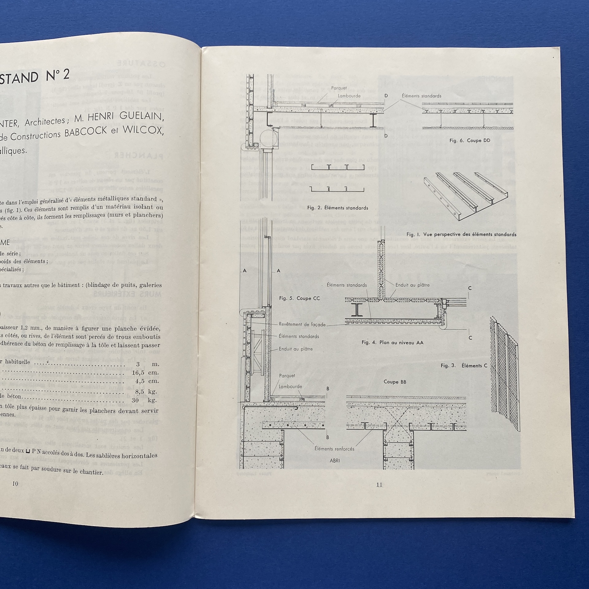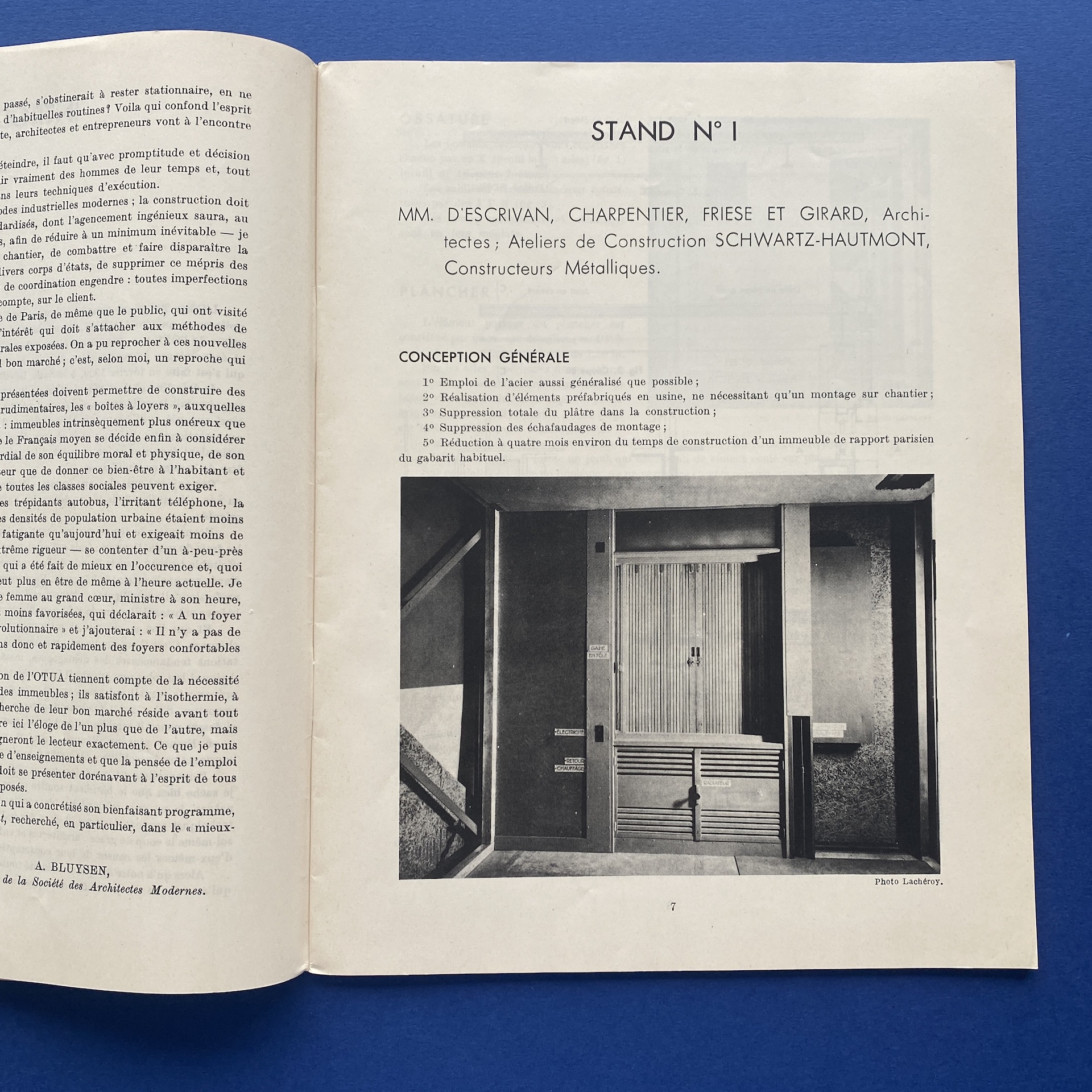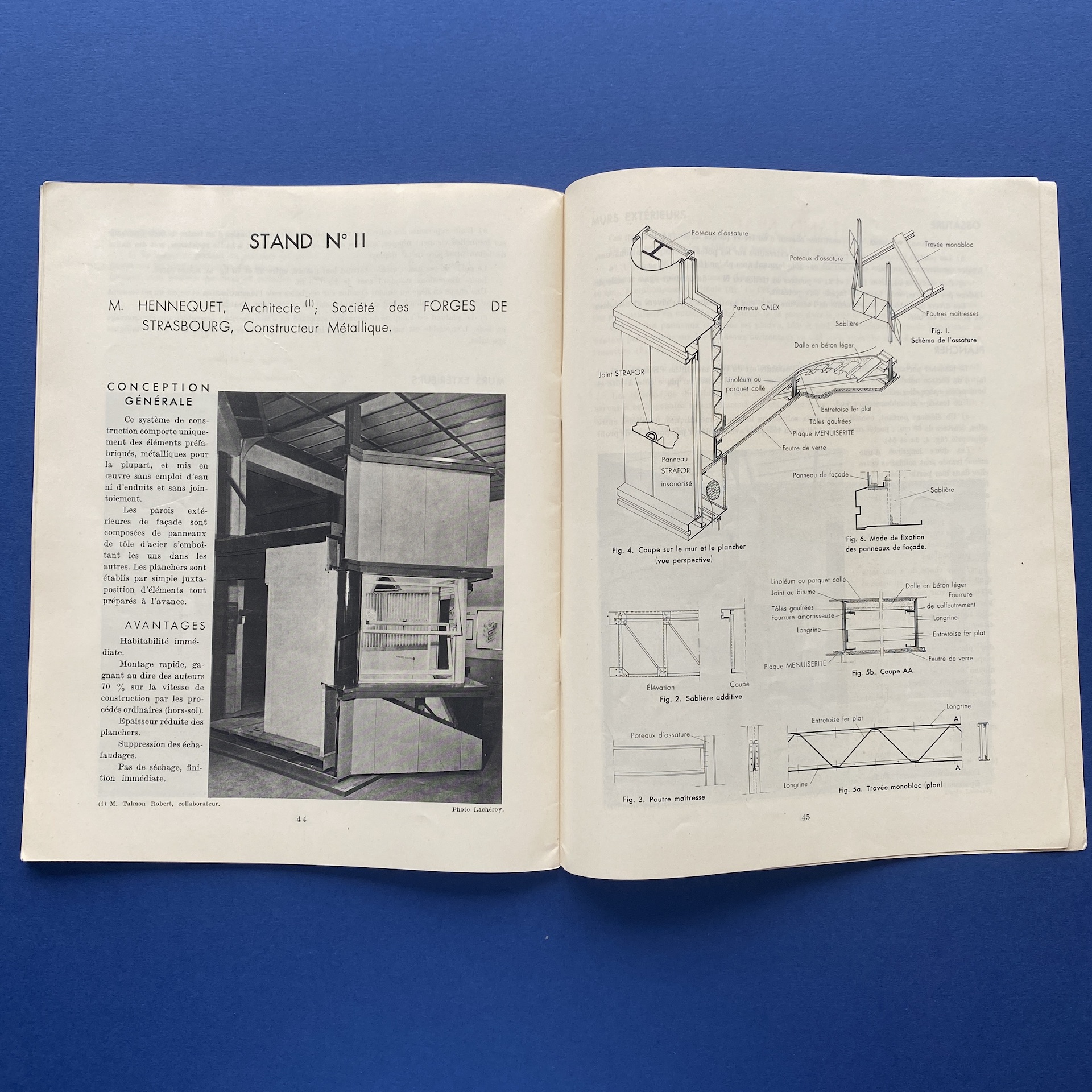 Acier n° 1, Procédés nouveaux de construction d’immeubles, Paris, OTUA, 1944, 21 x 27 cm, 48 pp. Logo by Francis Bernard, cover by Cassandre. Copy in good condition.