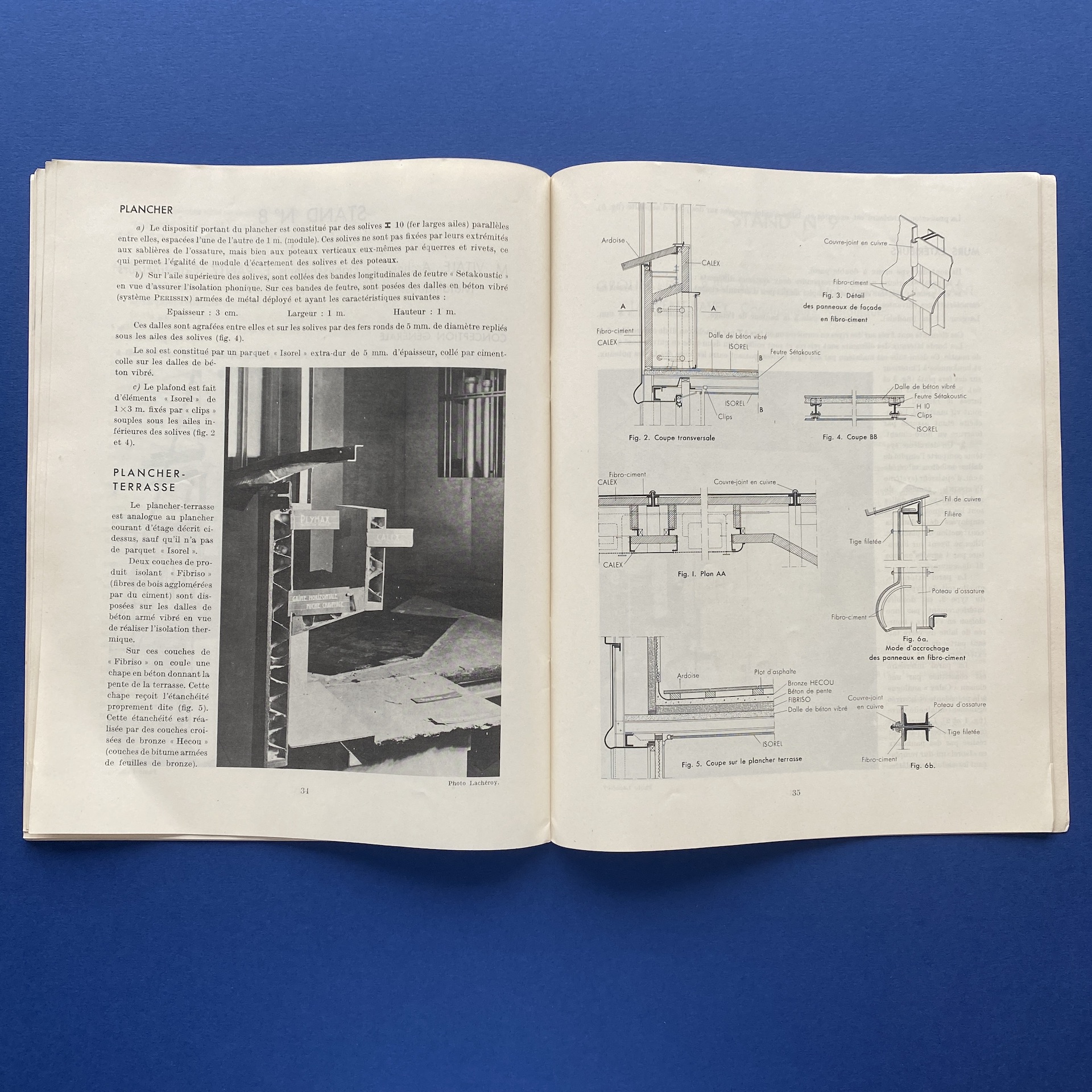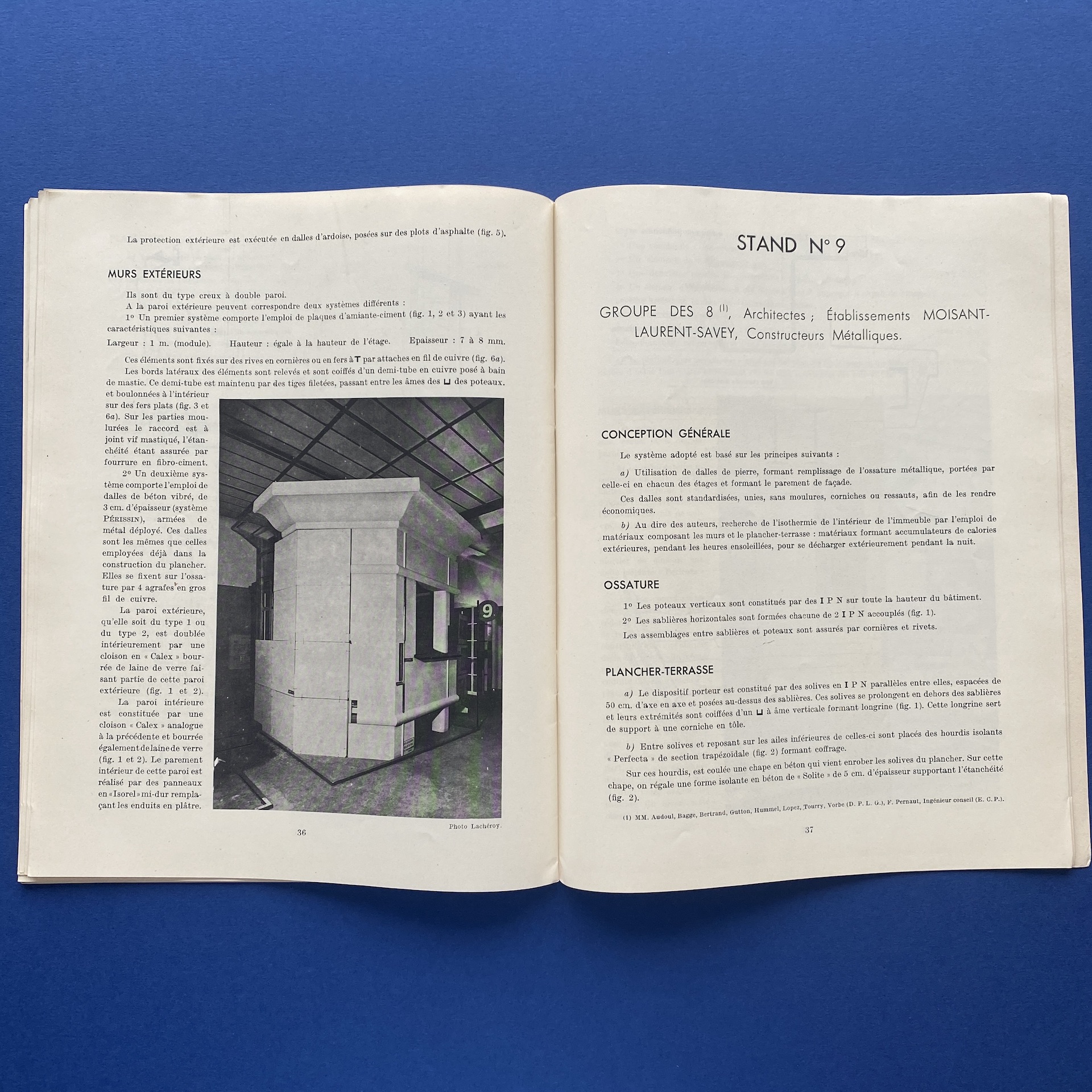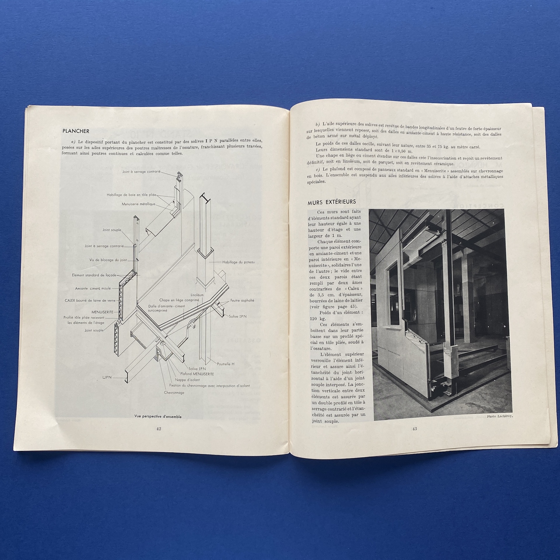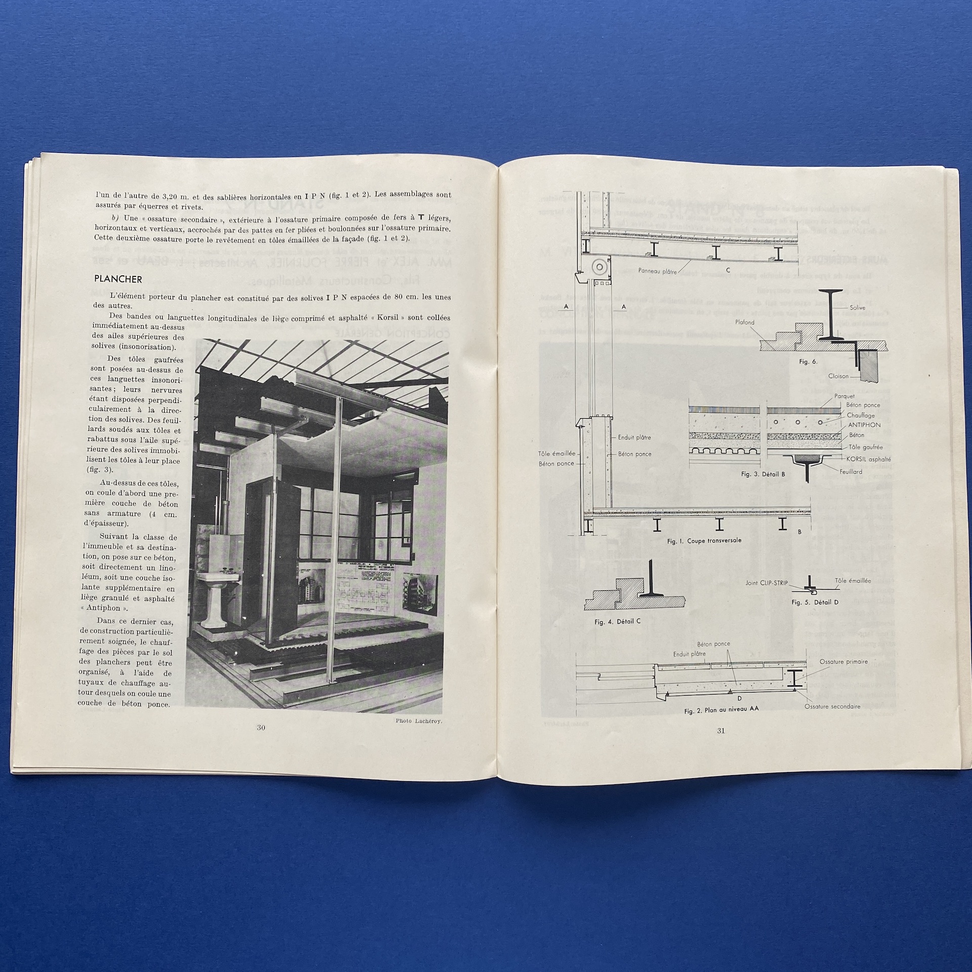 Acier n° 1, Procédés nouveaux de construction d’immeubles, Paris, OTUA, 1944, 21 x 27 cm, 48 pp. Logo by Francis Bernard, cover by Cassandre. Copy in good condition.
