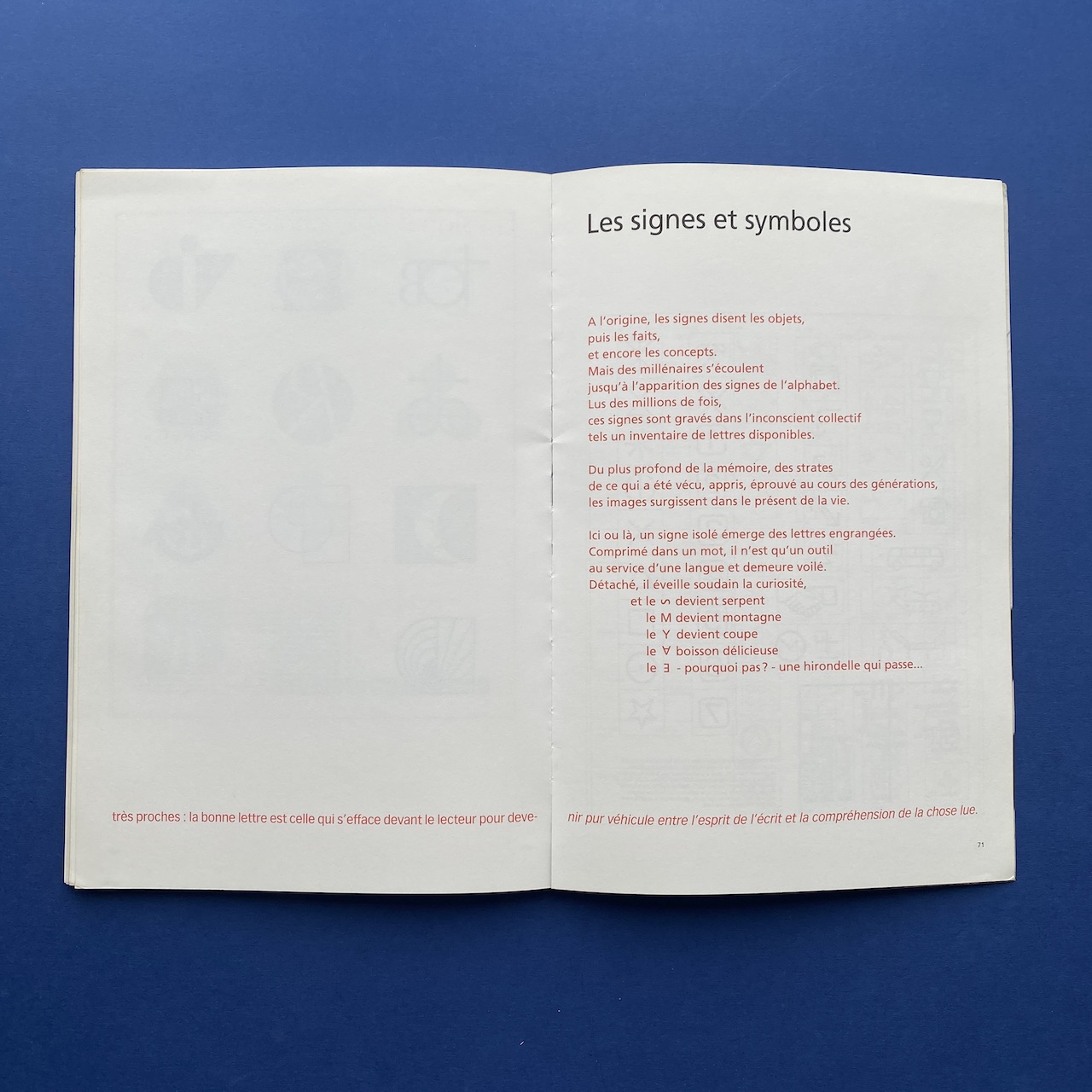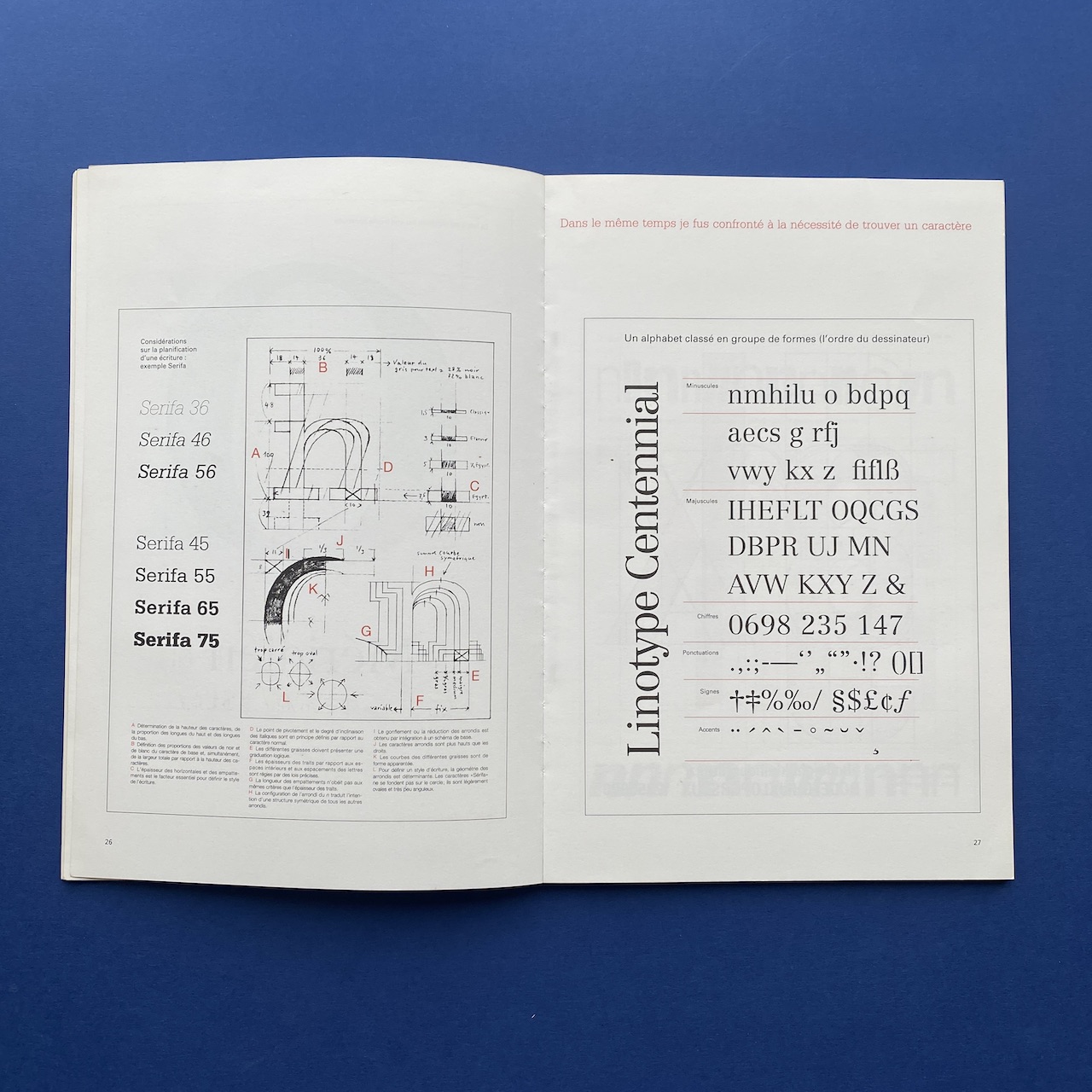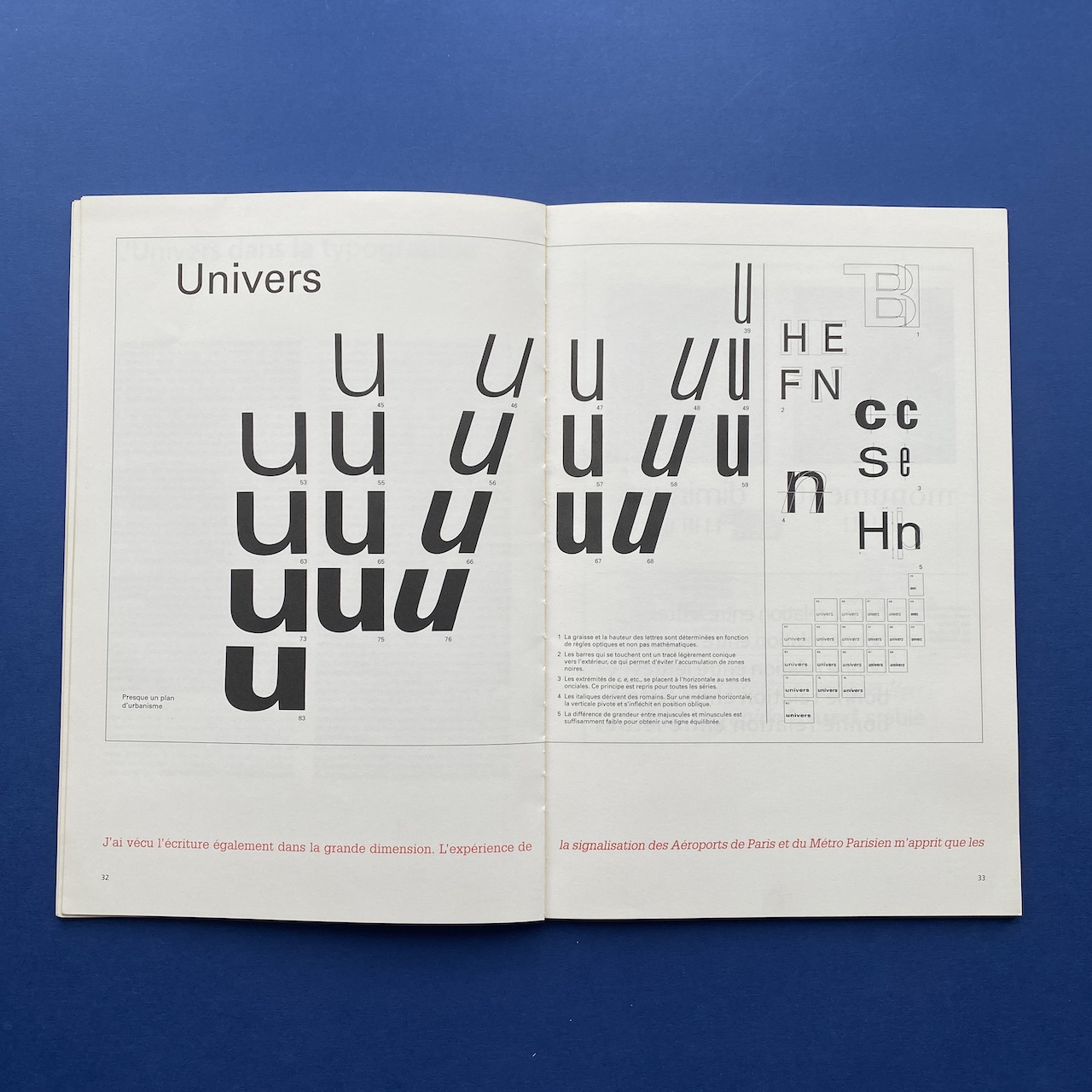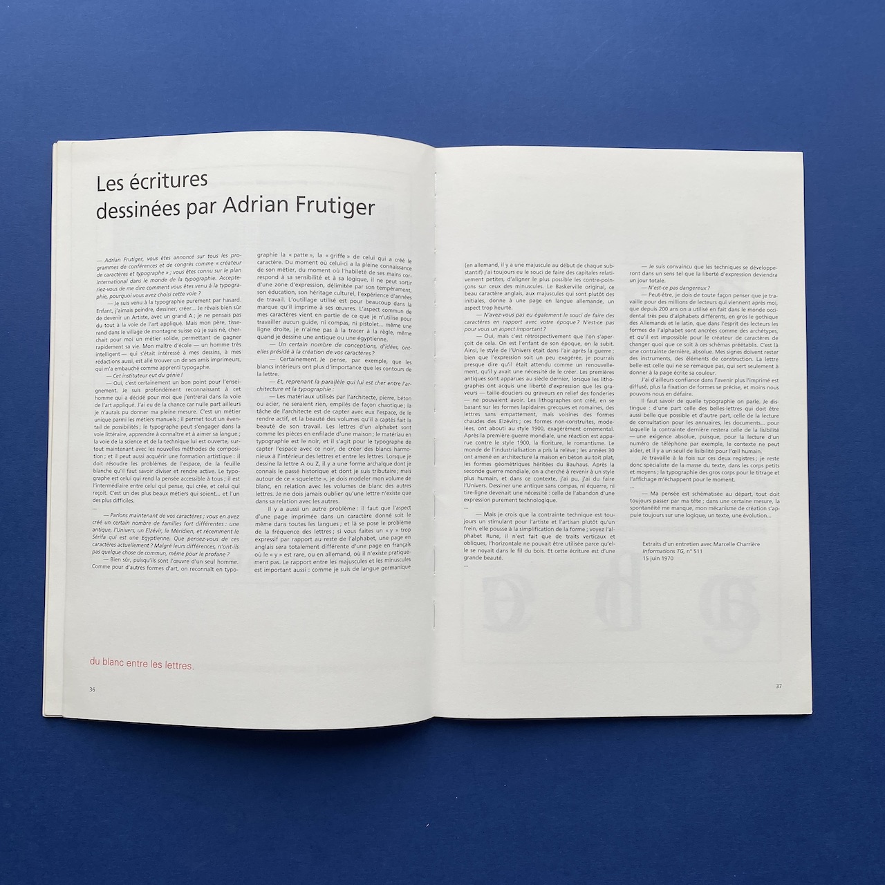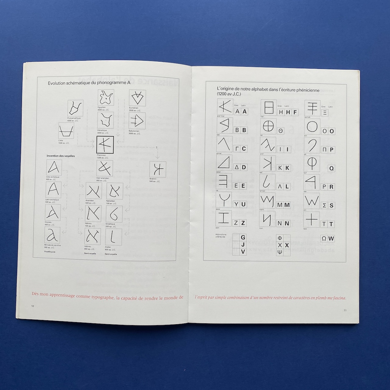 Adrian Frutiger, Son oeuvre typographique et ses écrits, Villeurbanne, 1994, 22 x 33 cm, 74 pp. Catalogue of the exhibition at Maison du livre, de l’image et du son in Villeurbanne. Covers show little rubbing, interior in very good condition.