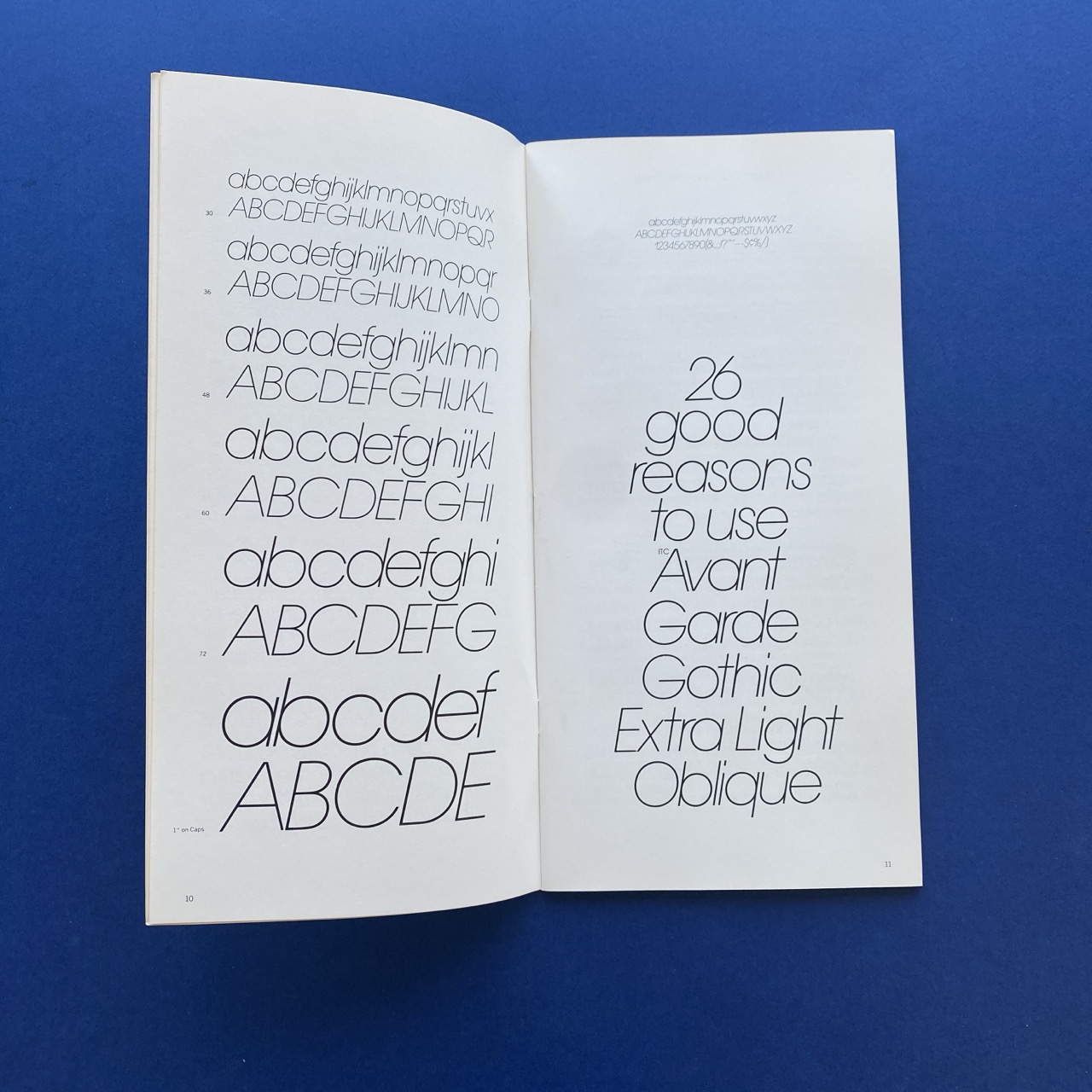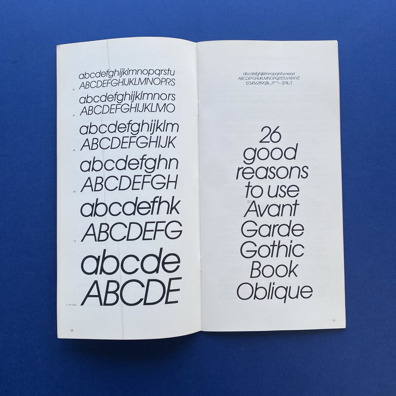 Avant Garde Gothic with Oblique, New York, ITC, 15,2 x 30,5 cm, 1977, 52 pp.