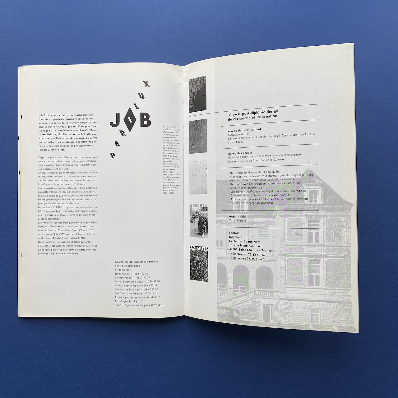 Azimuts #7/8, revue de design, éditer, April 1994, Saint-Etienne, École des Beaux-Arts de Saint-Etienne, 19,7 x 30 cm, 76 pp. Very good condition.