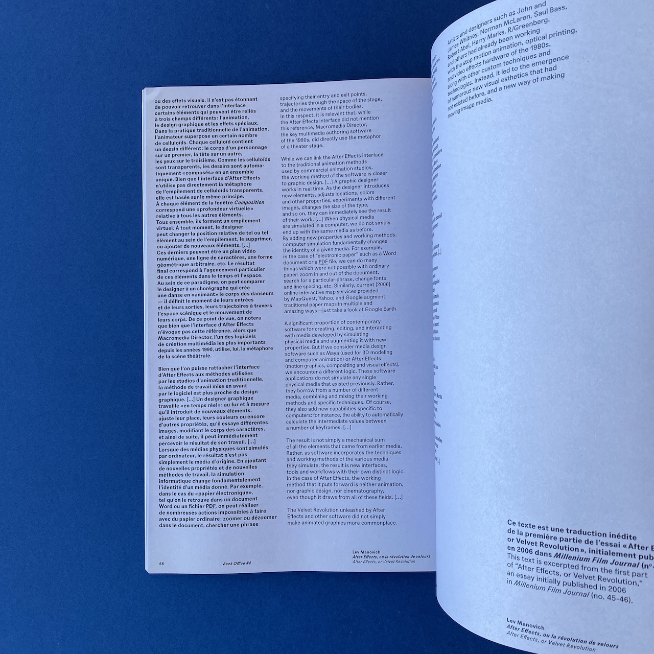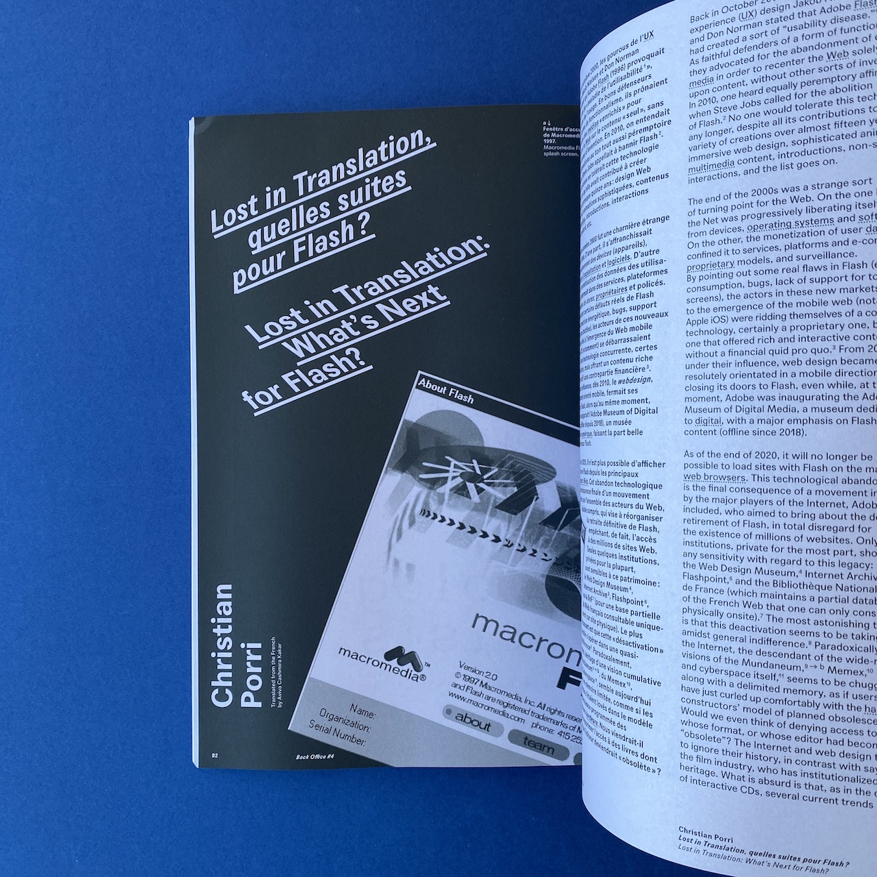 Back Office 4, Graphic Design and Digital Practices, Suivre le mouvement, B42, 2021. This book is in very good condition. With the participation of Fleur Chevalier, Olia Lialina, Zach Lieberman, Lev Manovich, Anthony Masure, Mitch Paone, Christian Porri, Michel Wlassikoff.