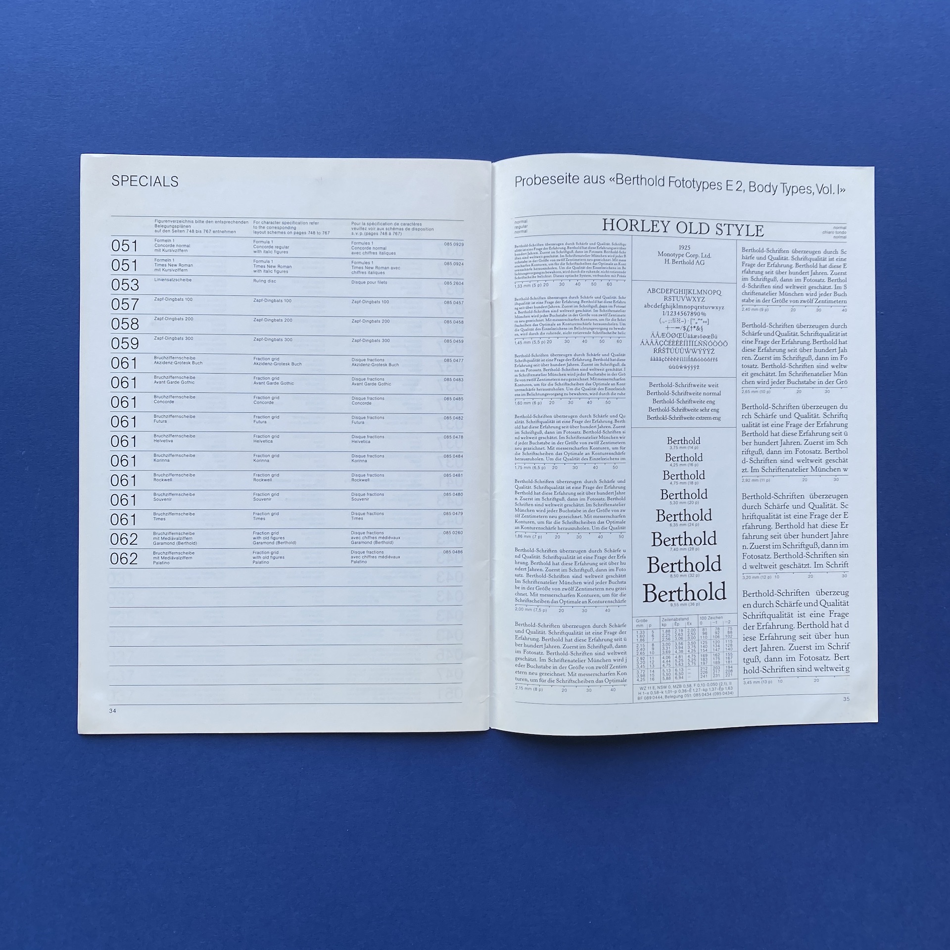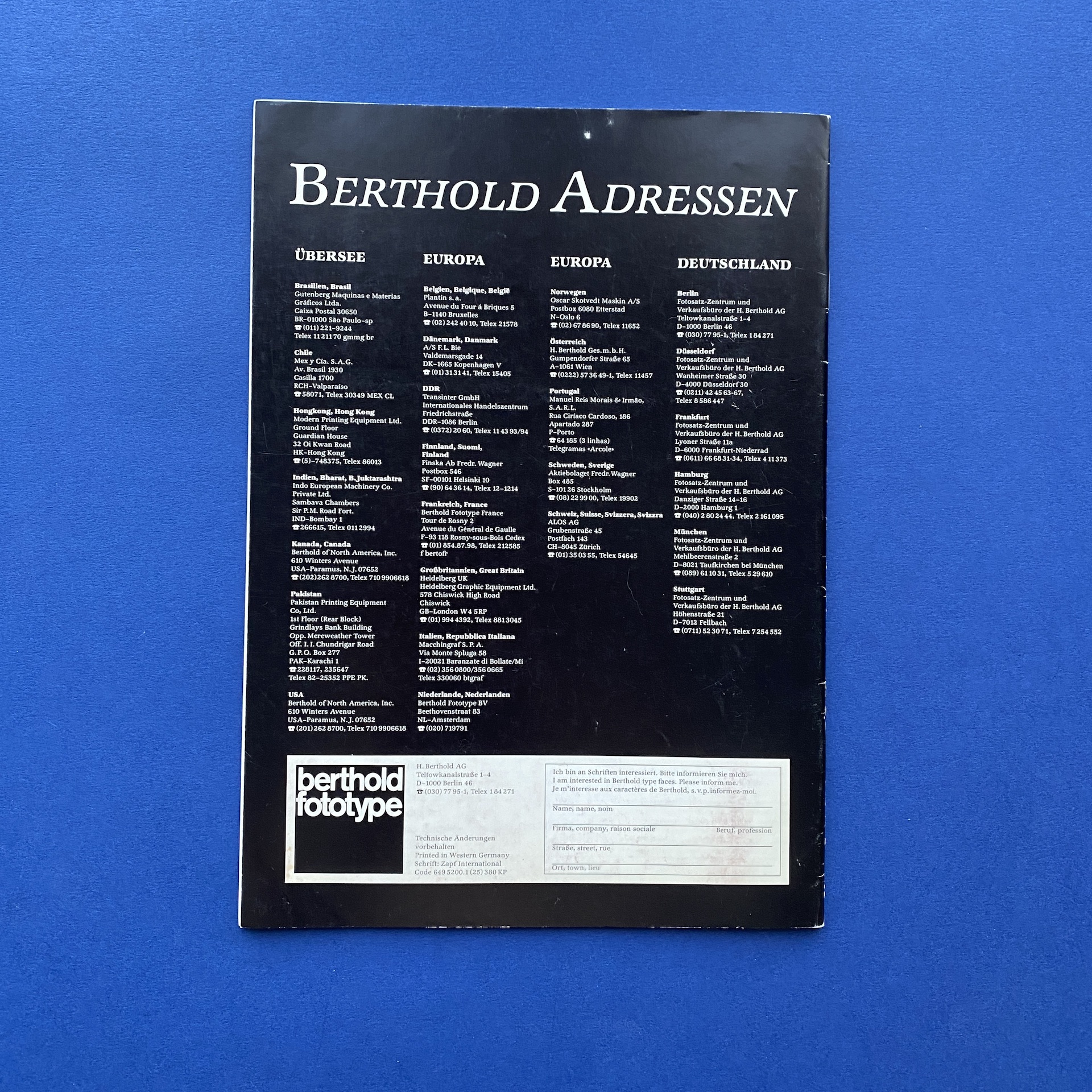 Berthold Fototypes, Body Types, Synopsis, schriften ubersicht, Westen Germany, 1980, 21 x 29,7 cm. Booklet in very good condition.