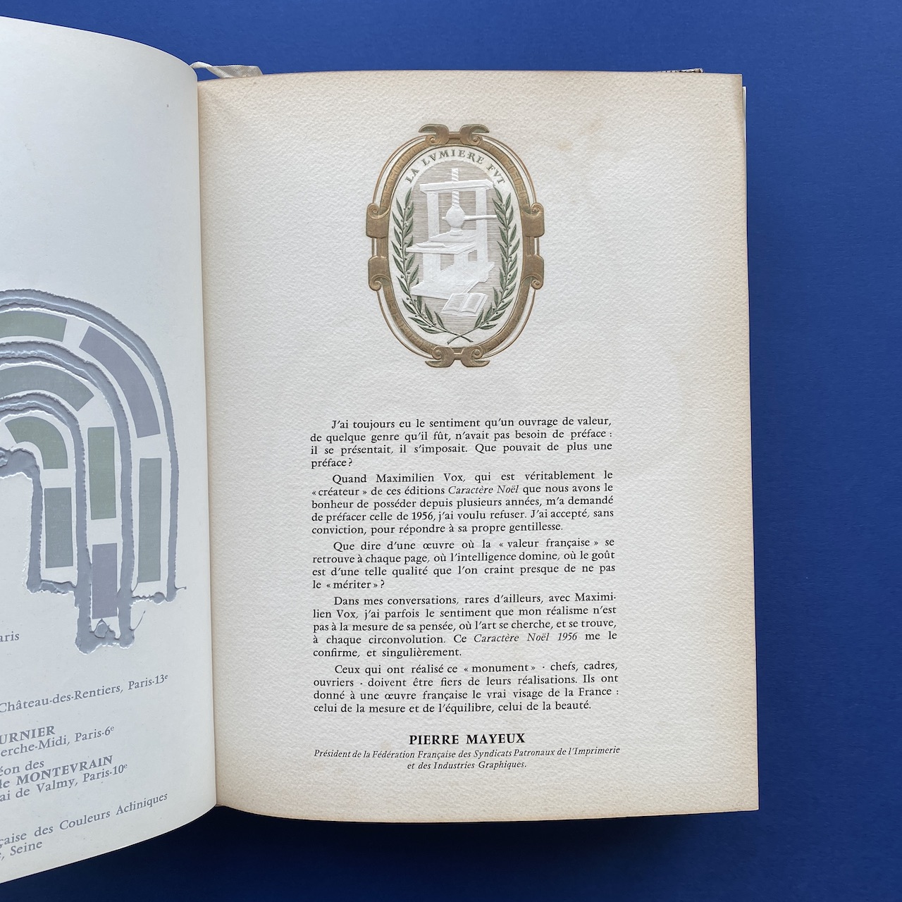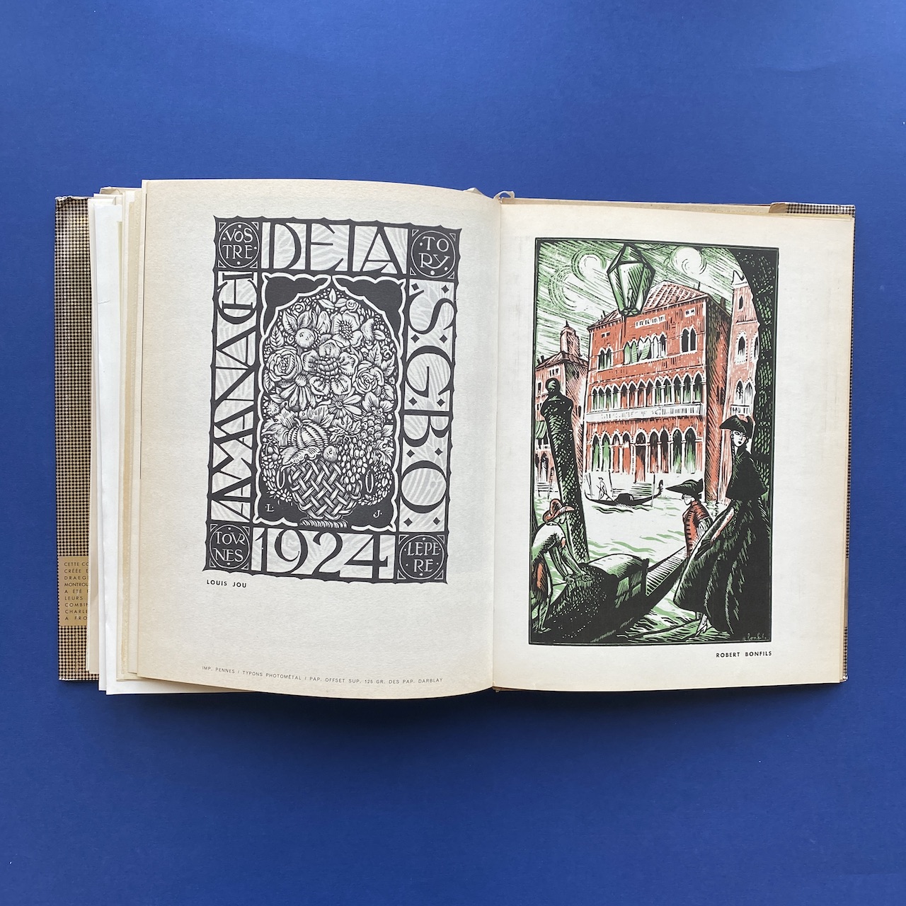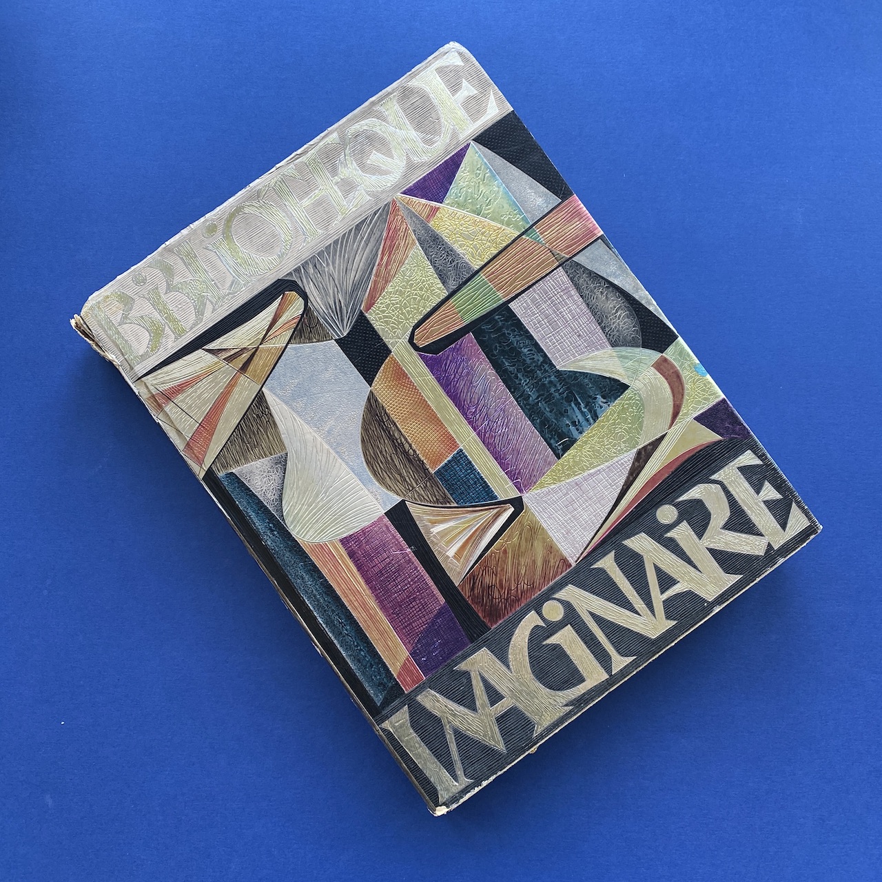Caractère Noël, Bibliothèque imaginaire, 1956, 24,5 x 31,5 cm. Maximilien Vox (ed.). Metallic dust cover printed by Draeger. The interior, covers and dust jacket are in good condition but fragile. The binding is detached from the magazine.