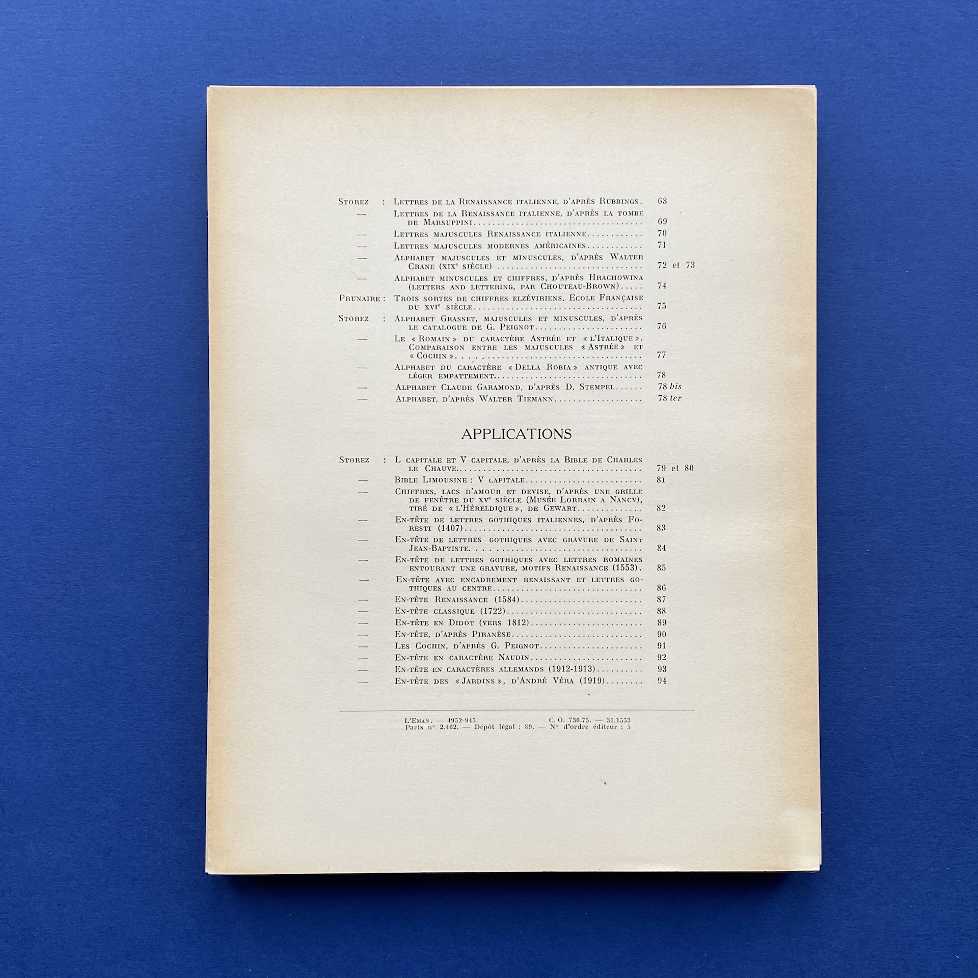 STOREZ M., Caractères typographiques, Paris, Vincent-Freal Editions, 1931, n.c., not paginated. Portfolio of plates in very good condition.