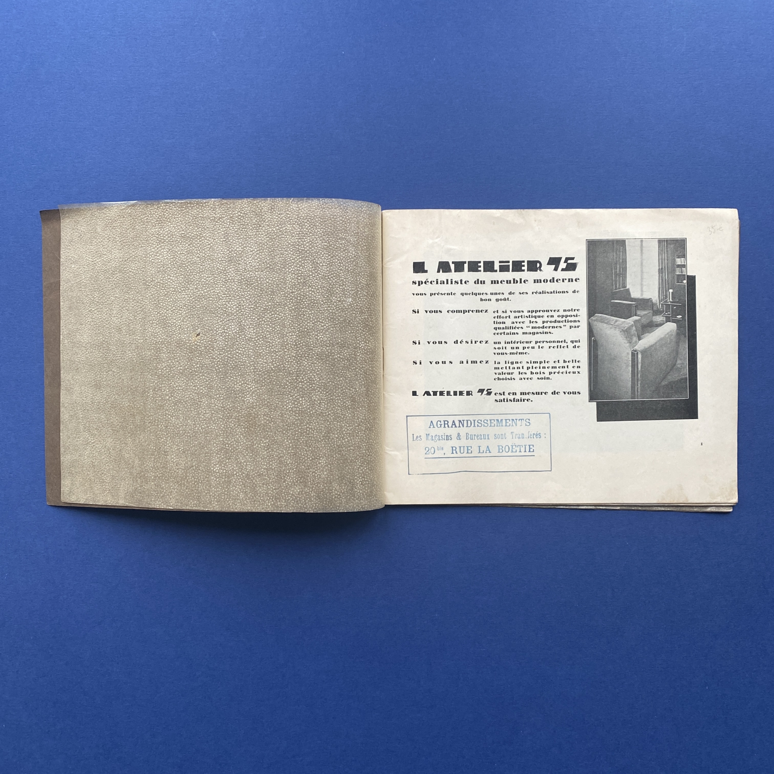 Catalogue Atelier 75 Spécialiste du meuble moderne est un catalogue d’ameublement des années 1930.