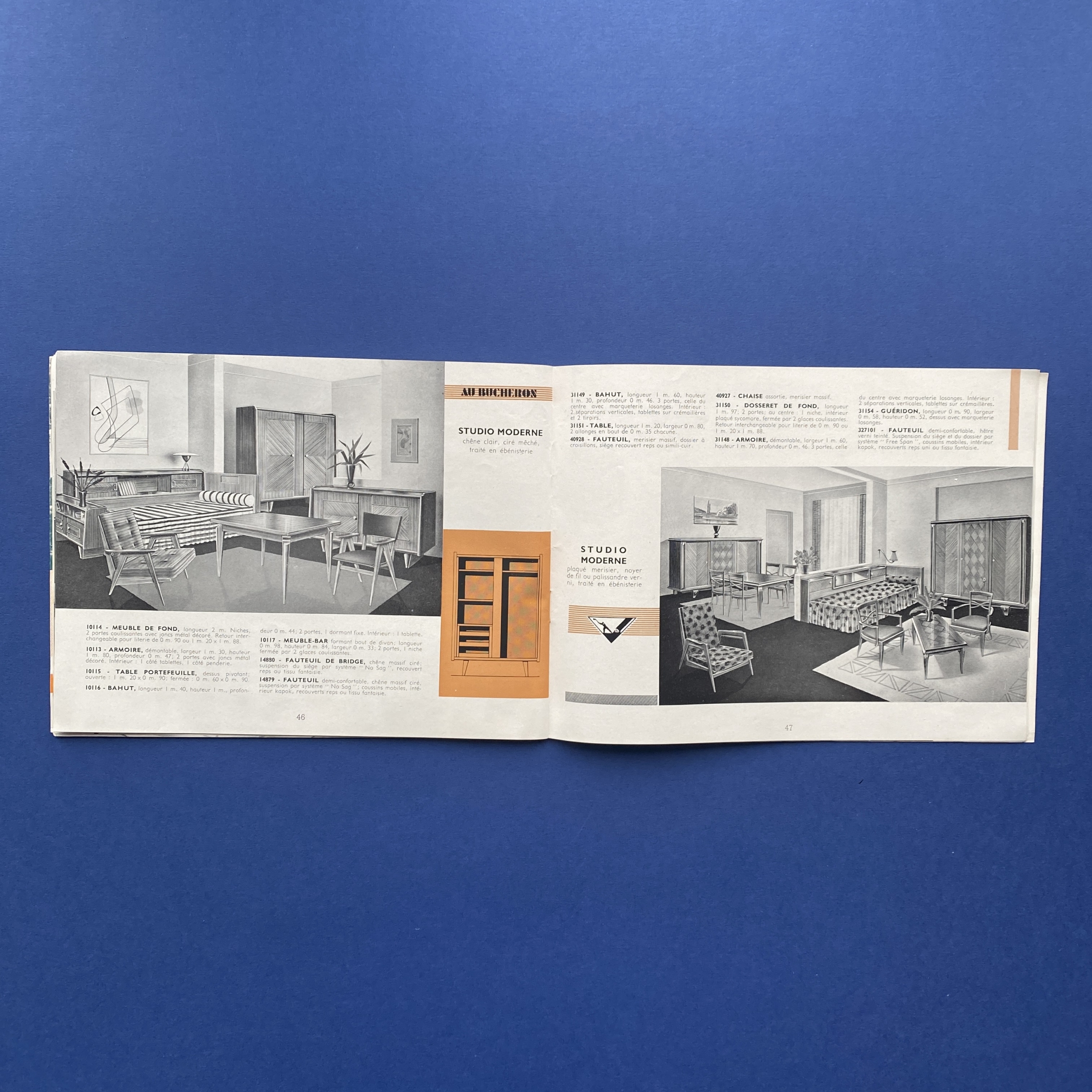 Catalog Au Bucheron, Furniture, Decoration published in 1956, 64 pp.