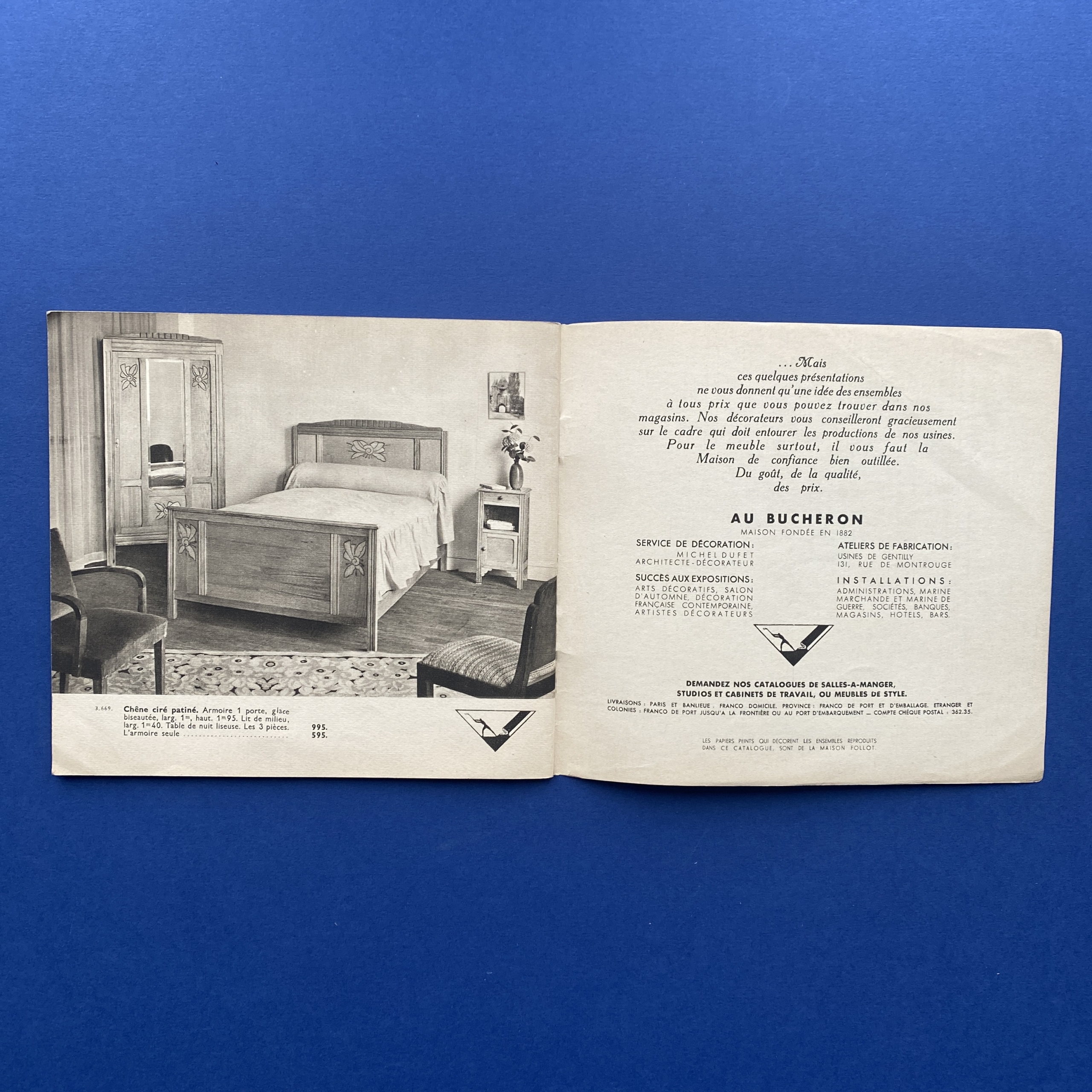 Catalogue Au bucheron, Chambre à coucher, Ed Mayeux, 1930’s. Logo designed by Cassandre. Copy in very good condition.