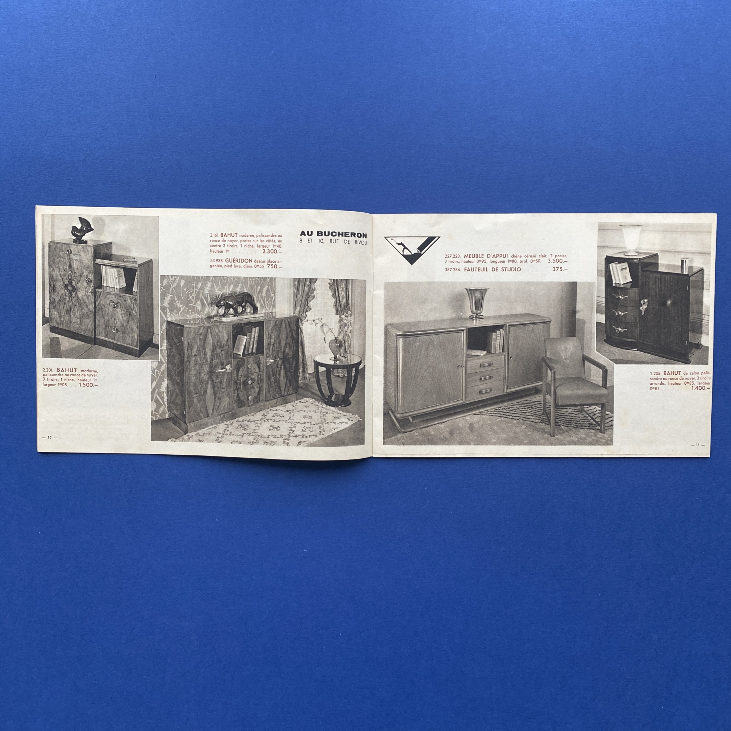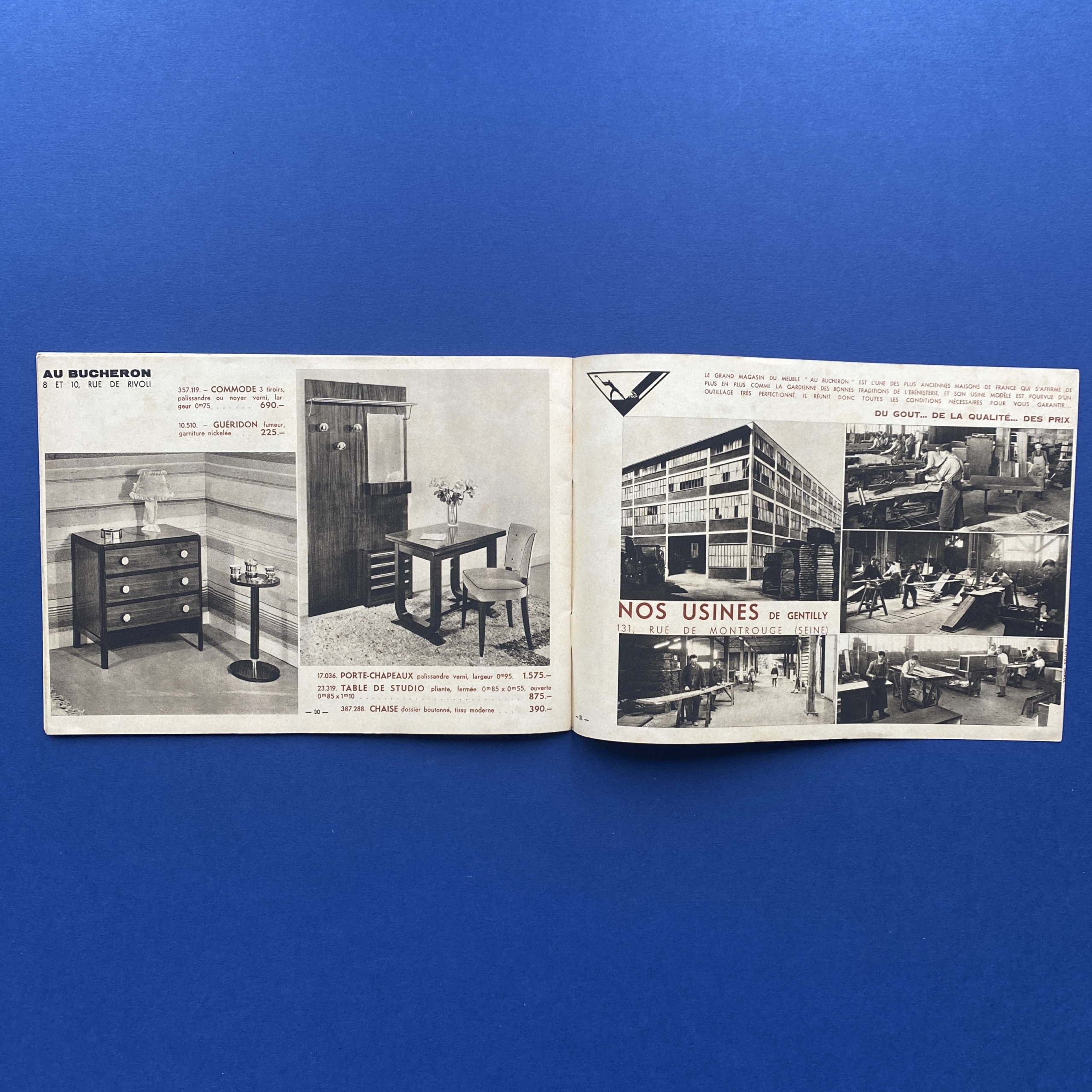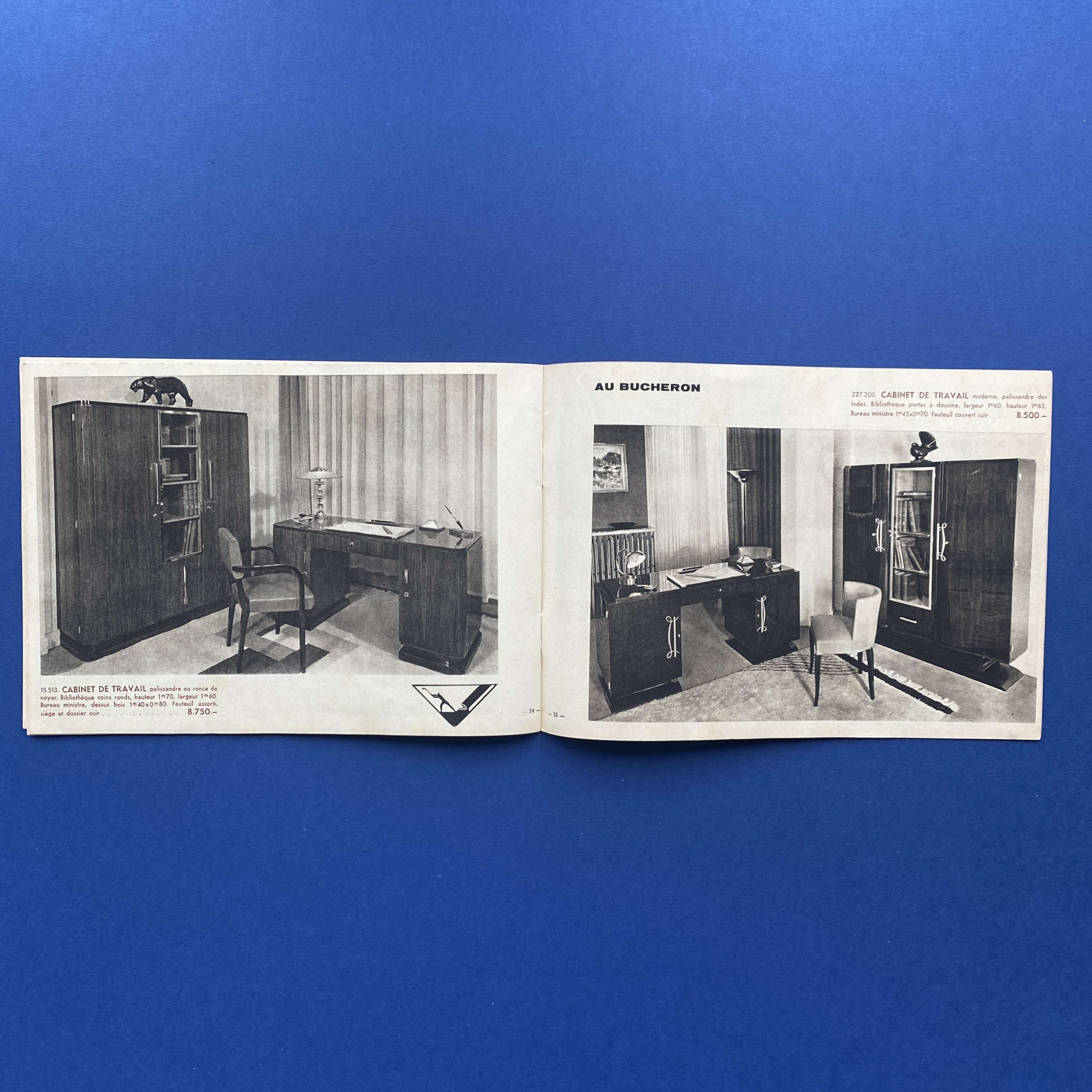 Catalogue Au Bucheron, Le studio, Le salon et le Cabinet de travail, Editions Mayeux, 1930s. Logo designed by Cassandre. Some writing in pencil on the first page.
