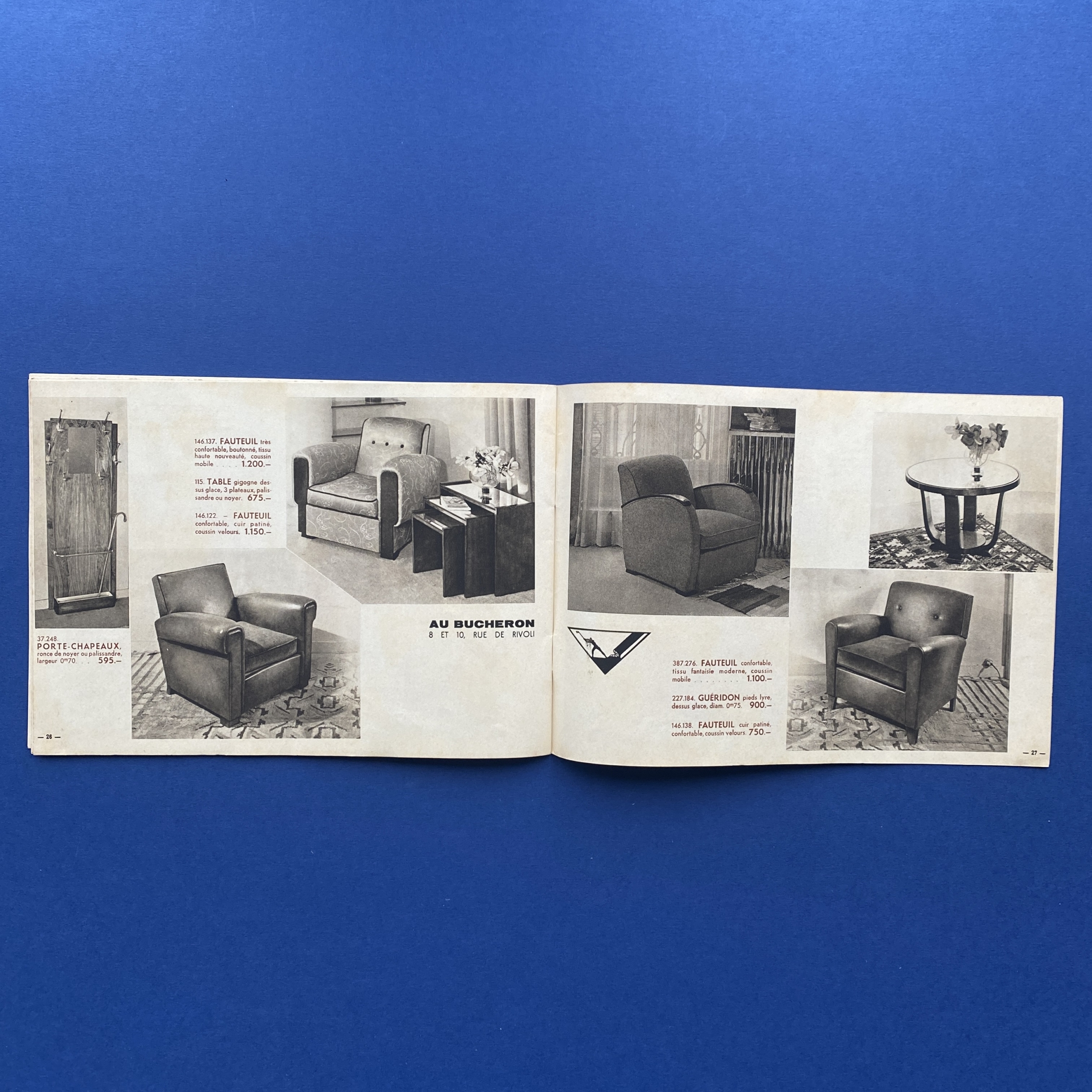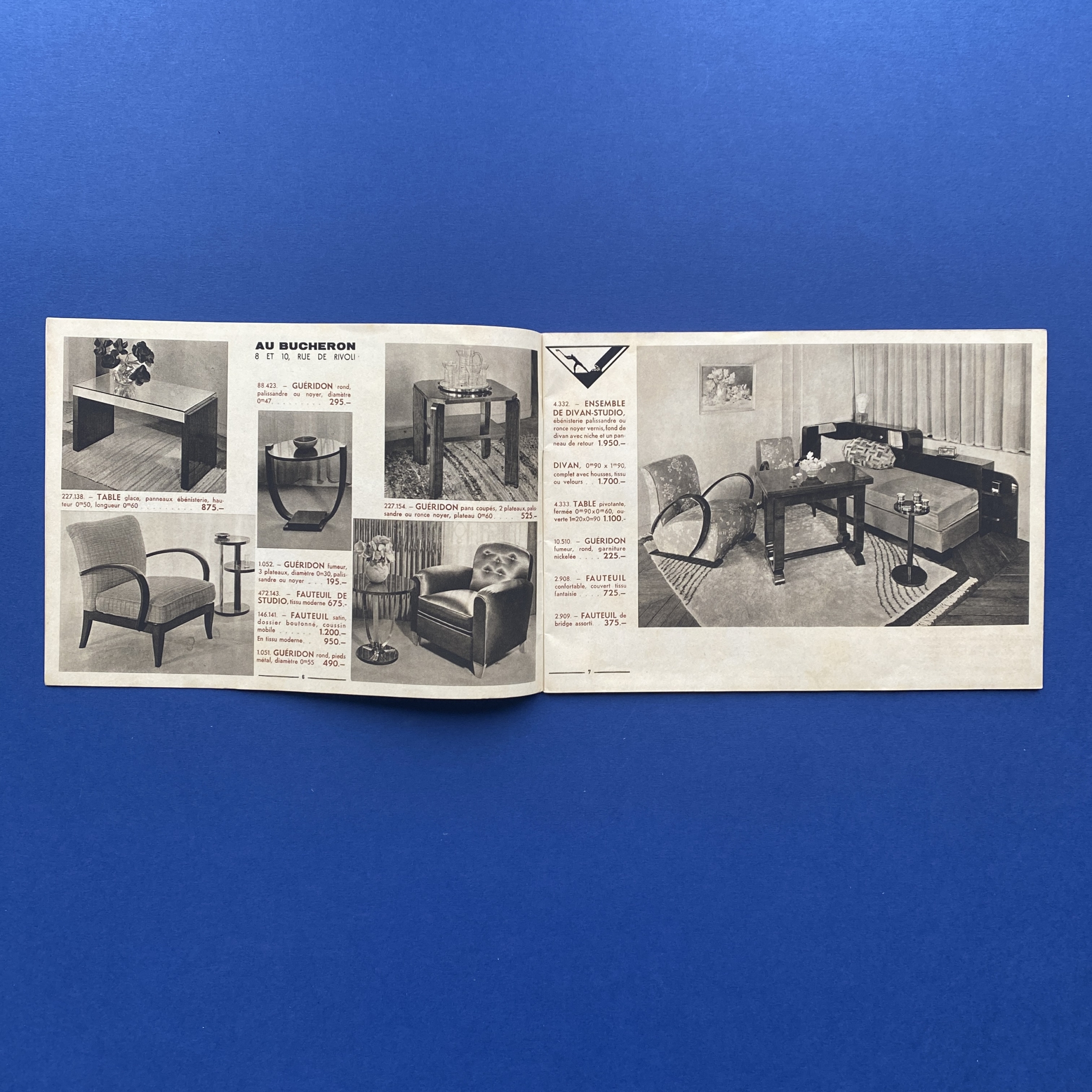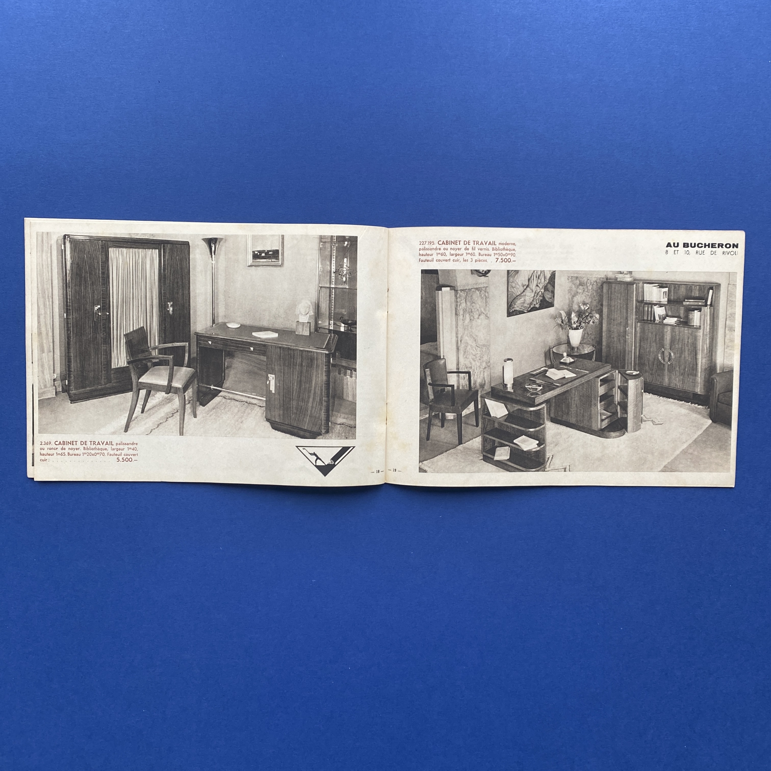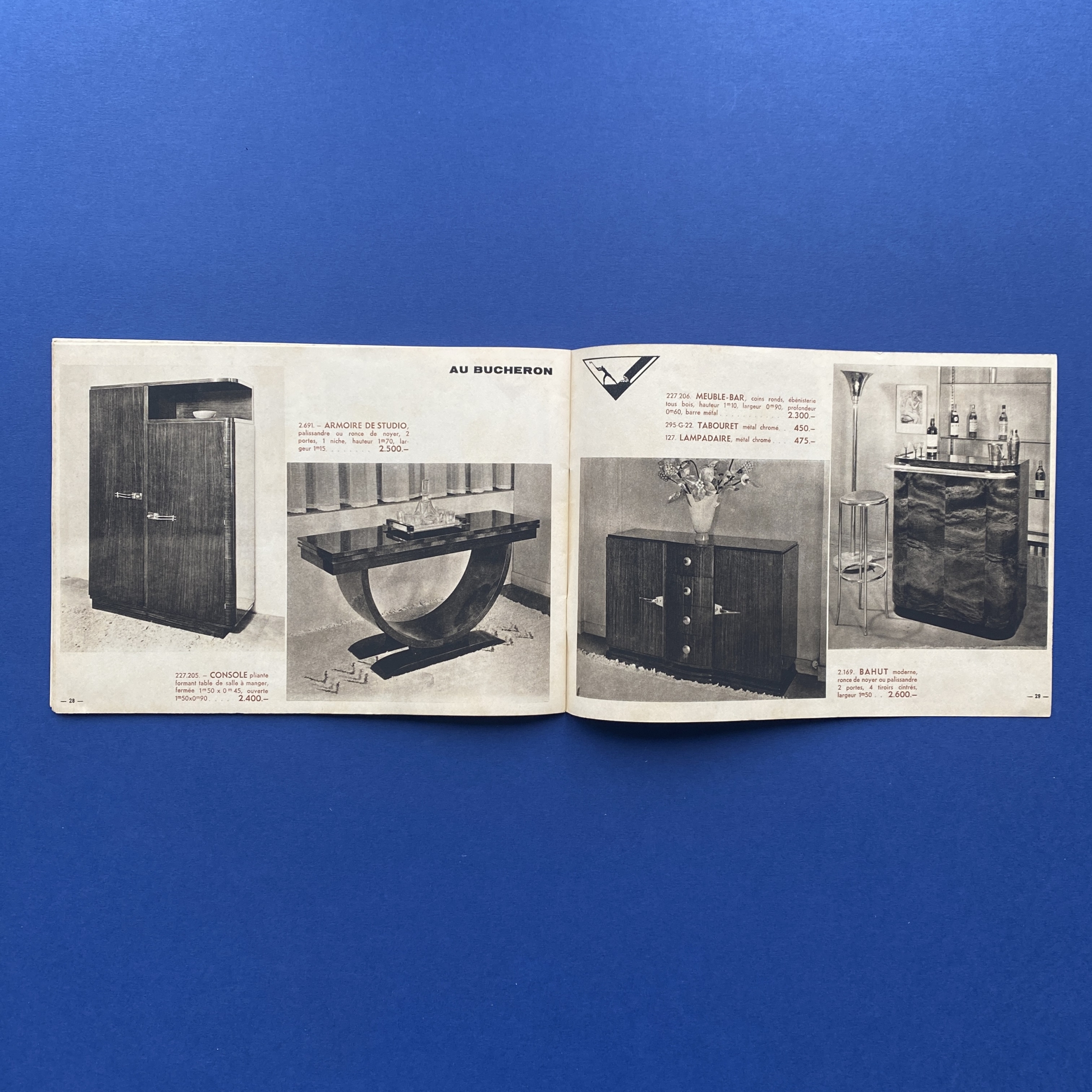 Catalogue Au Bucheron, Le studio, Le salon et le Cabinet de travail, Editions Mayeux, 1930s. Logo designed by Cassandre. Some writing in pencil on the first page.