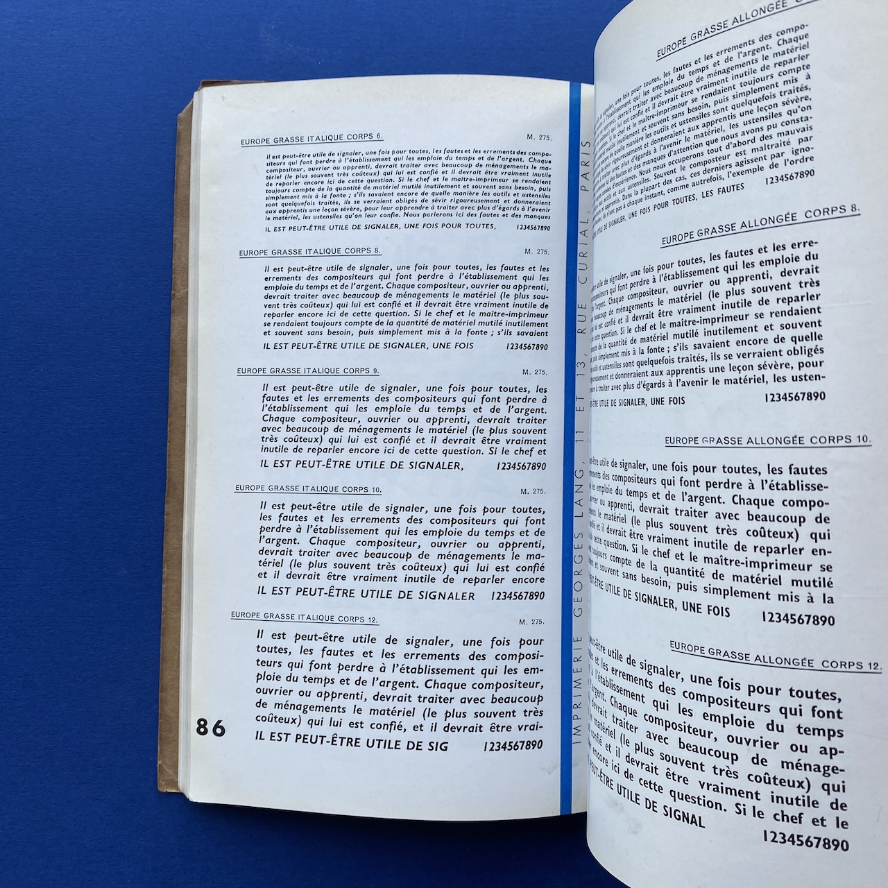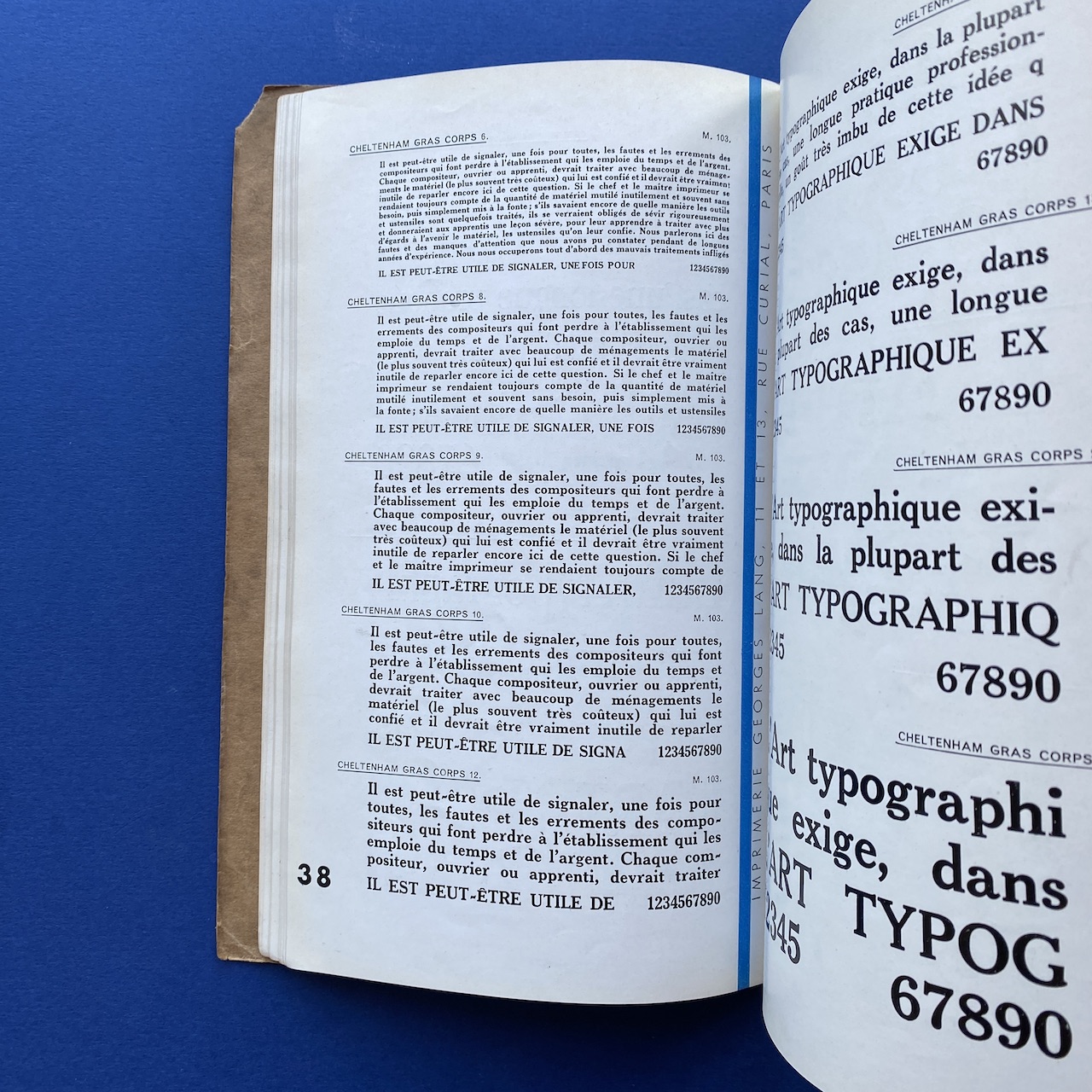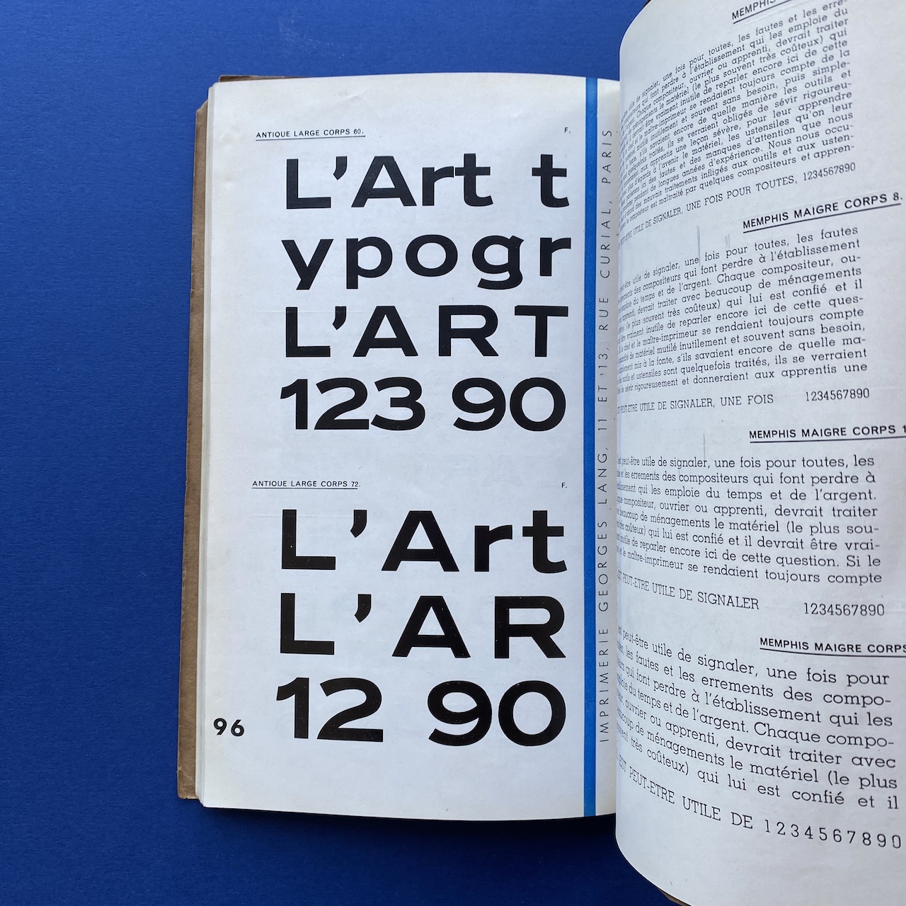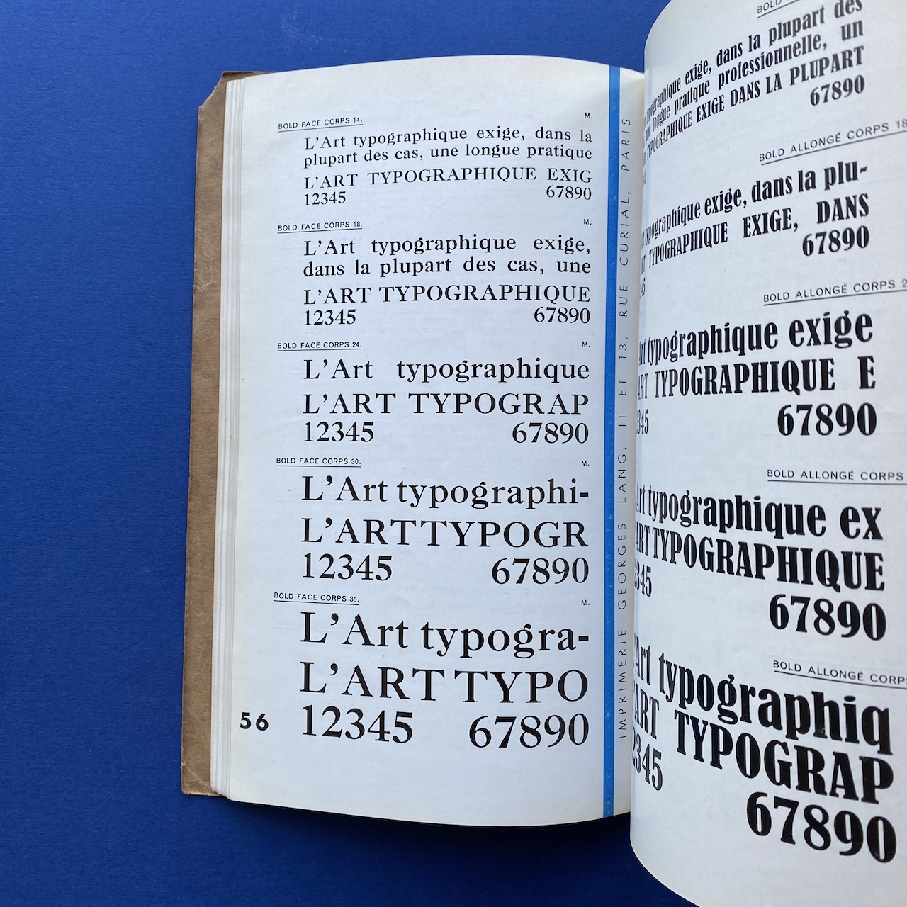 Catalogue de caractères – Filets et vignettes, Imprimerie Georges Lang, Paris, 1935, 15,7 x 24,4 cm, 108 pp. Interior in good condition, the covers show some signs of use (the upper right corner of the cover is missing).