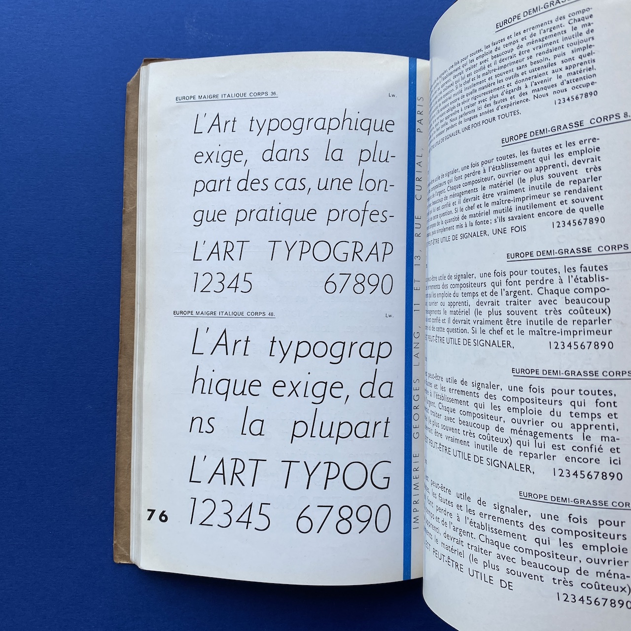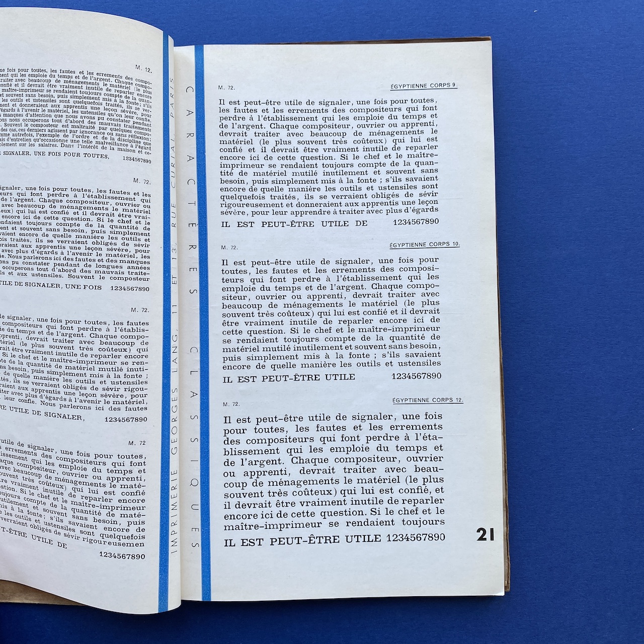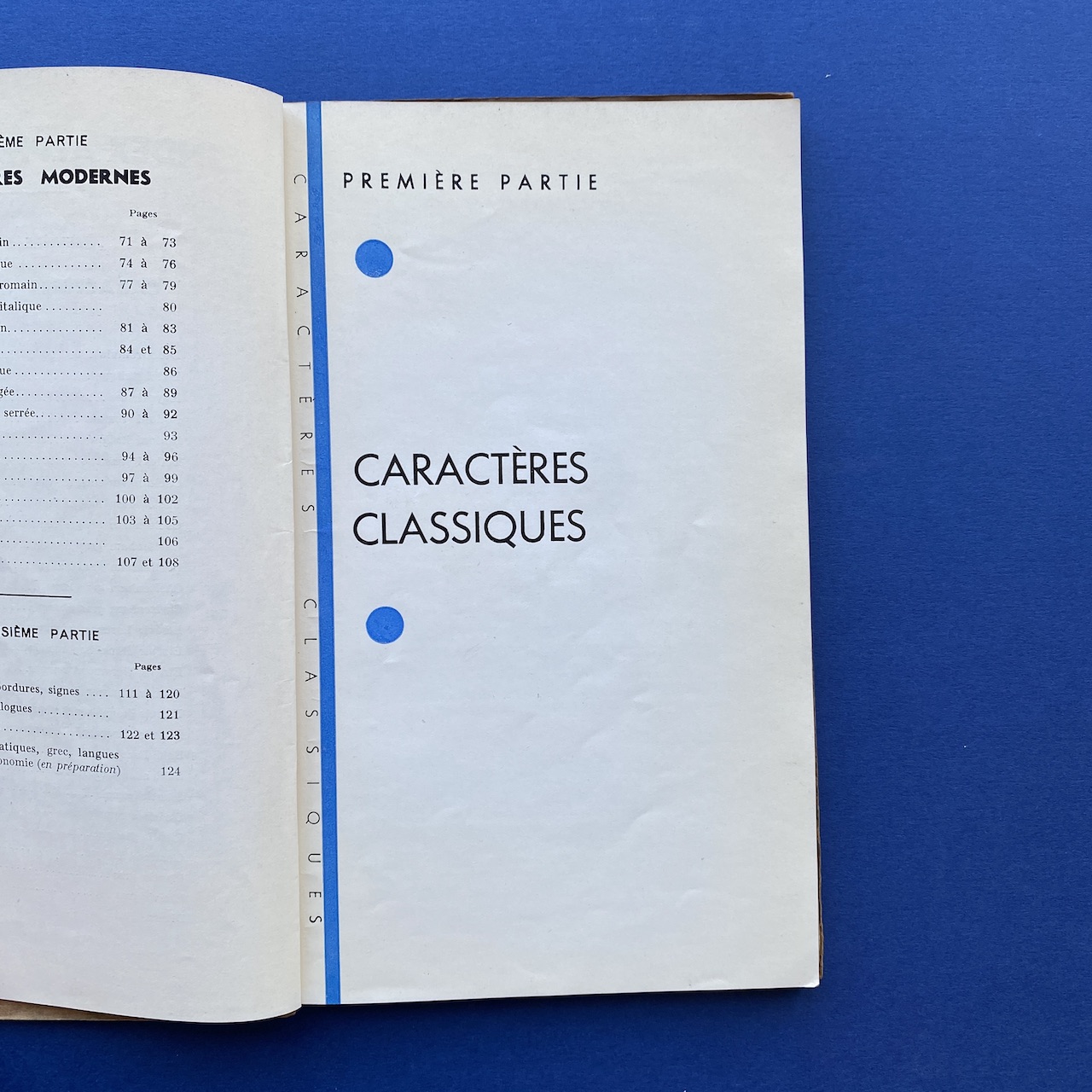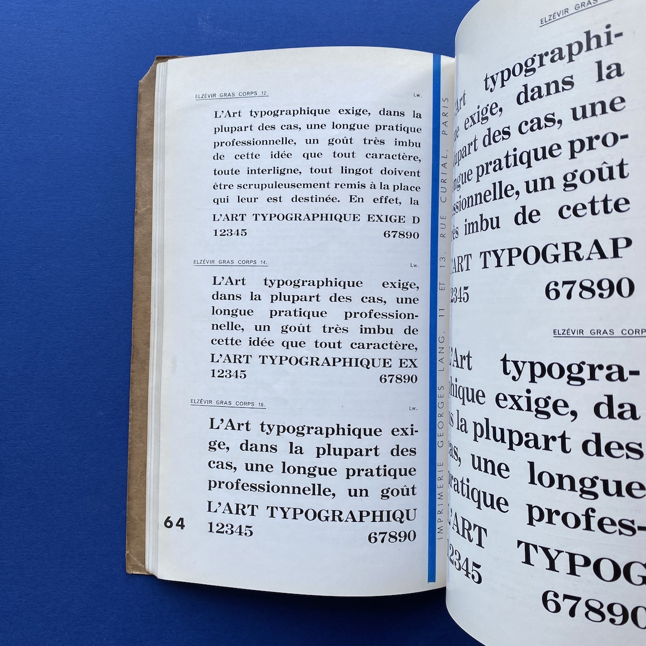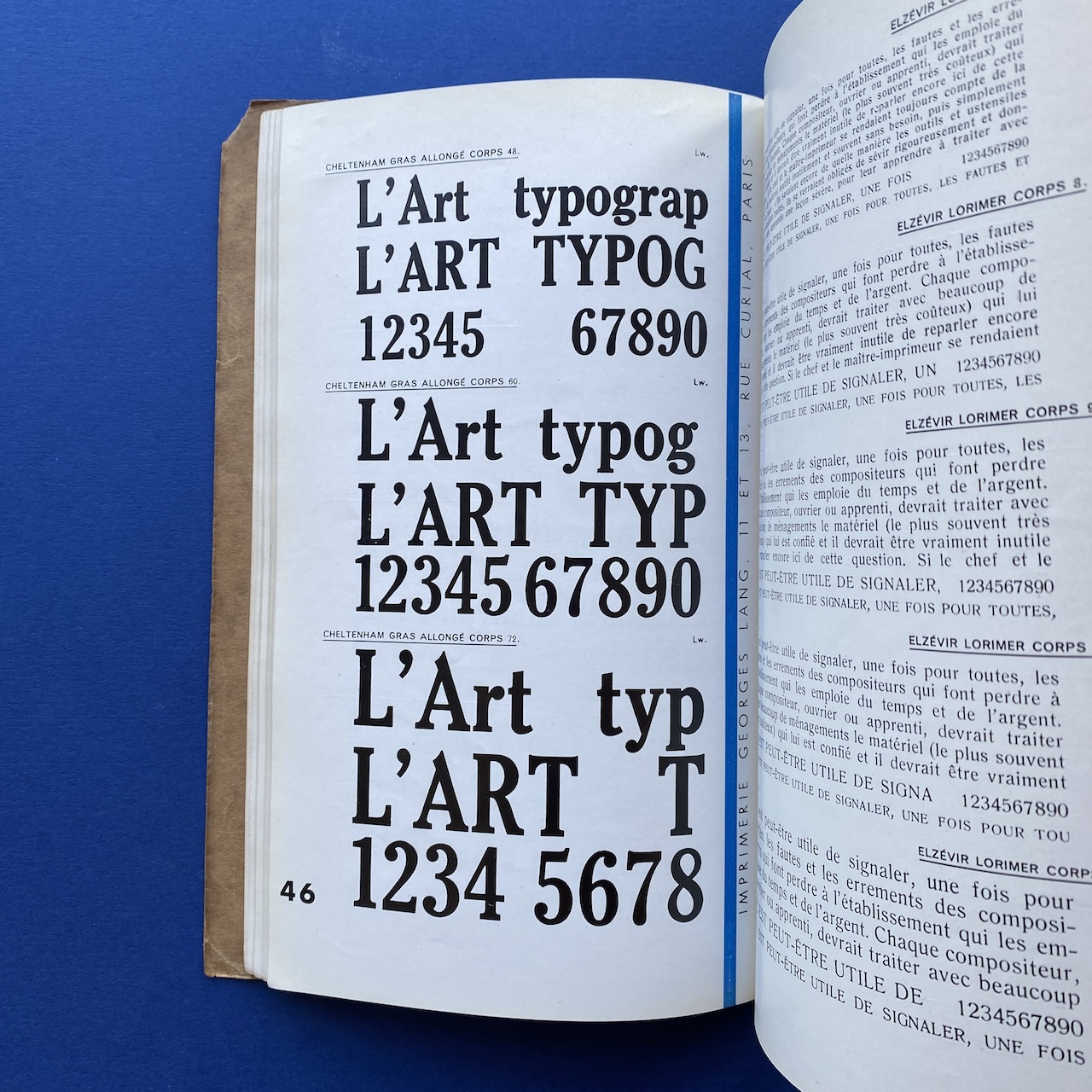 Catalogue de caractères – Filets et vignettes, Imprimerie Georges Lang, Paris, 1935, 15,7 x 24,4 cm, 108 pp. Interior in good condition, the covers show some signs of use (the upper right corner of the cover is missing).