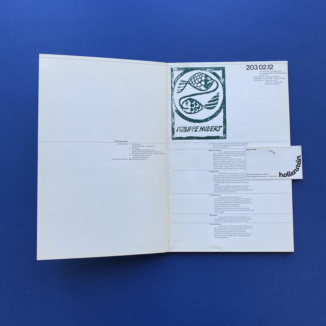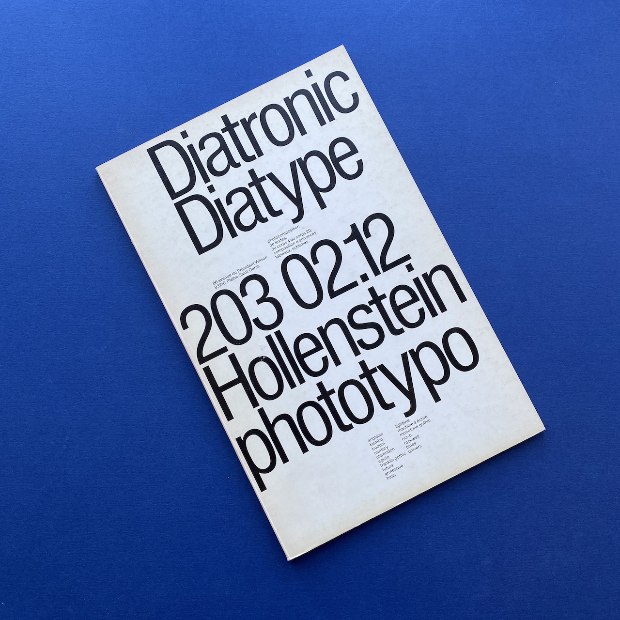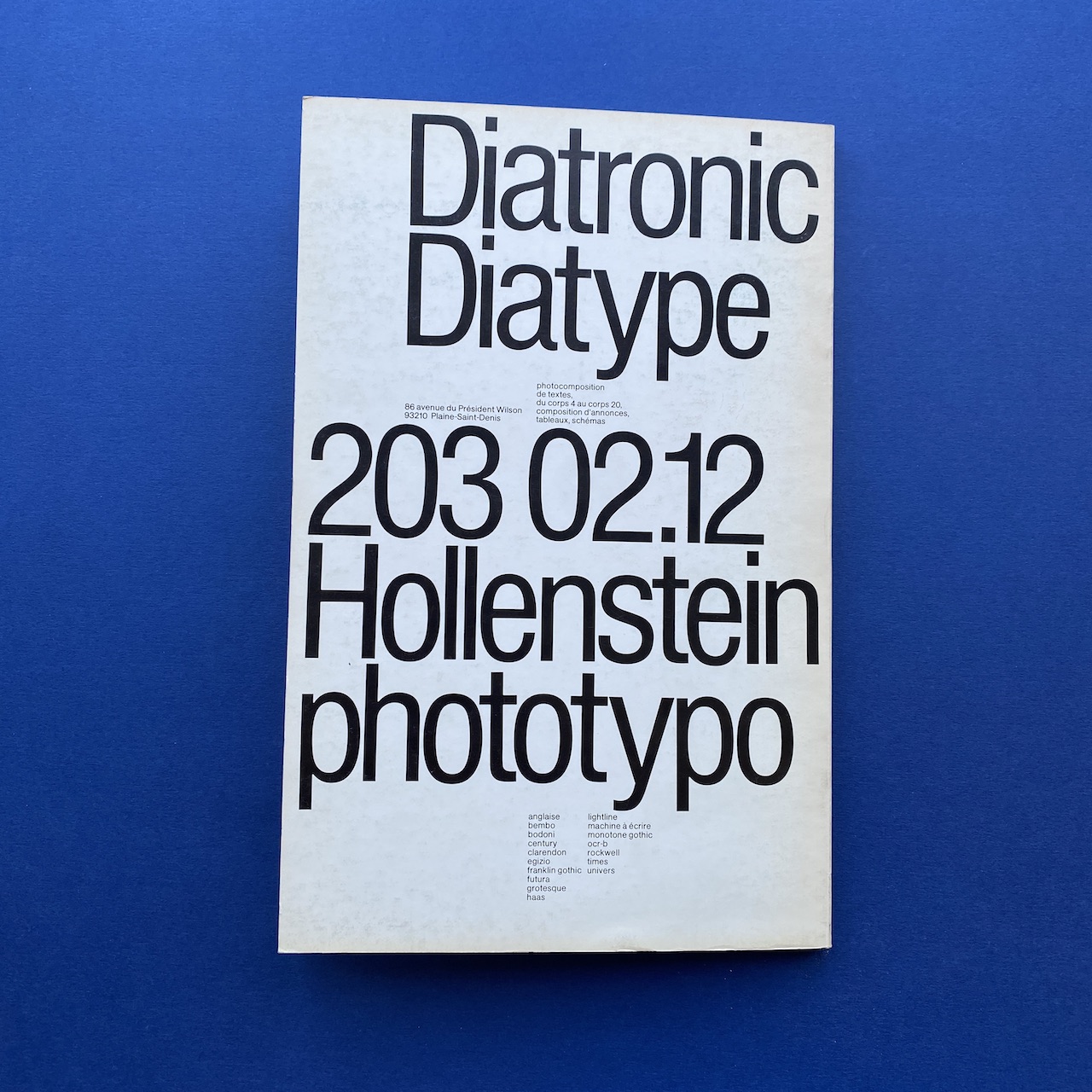 Diatronic Diatype, Hollenstein, 1972, 20 x 31 cm, 56 pp. Copy in good condition with previous owner’s ex-libris.