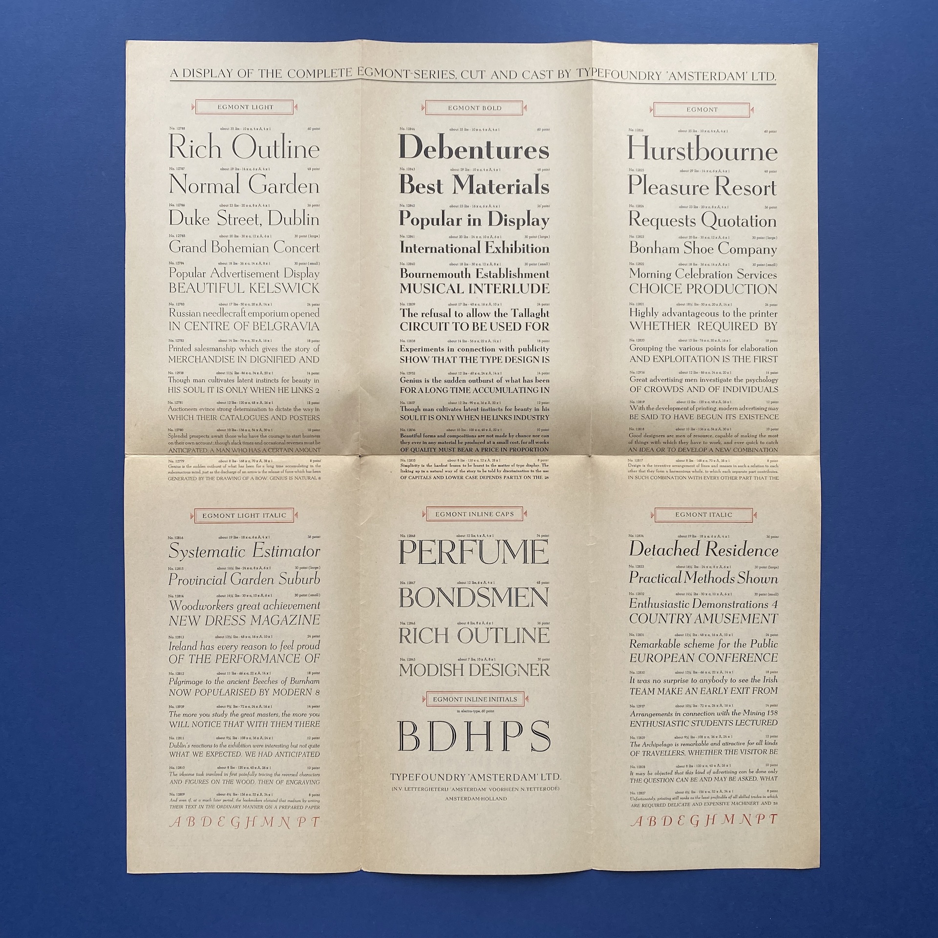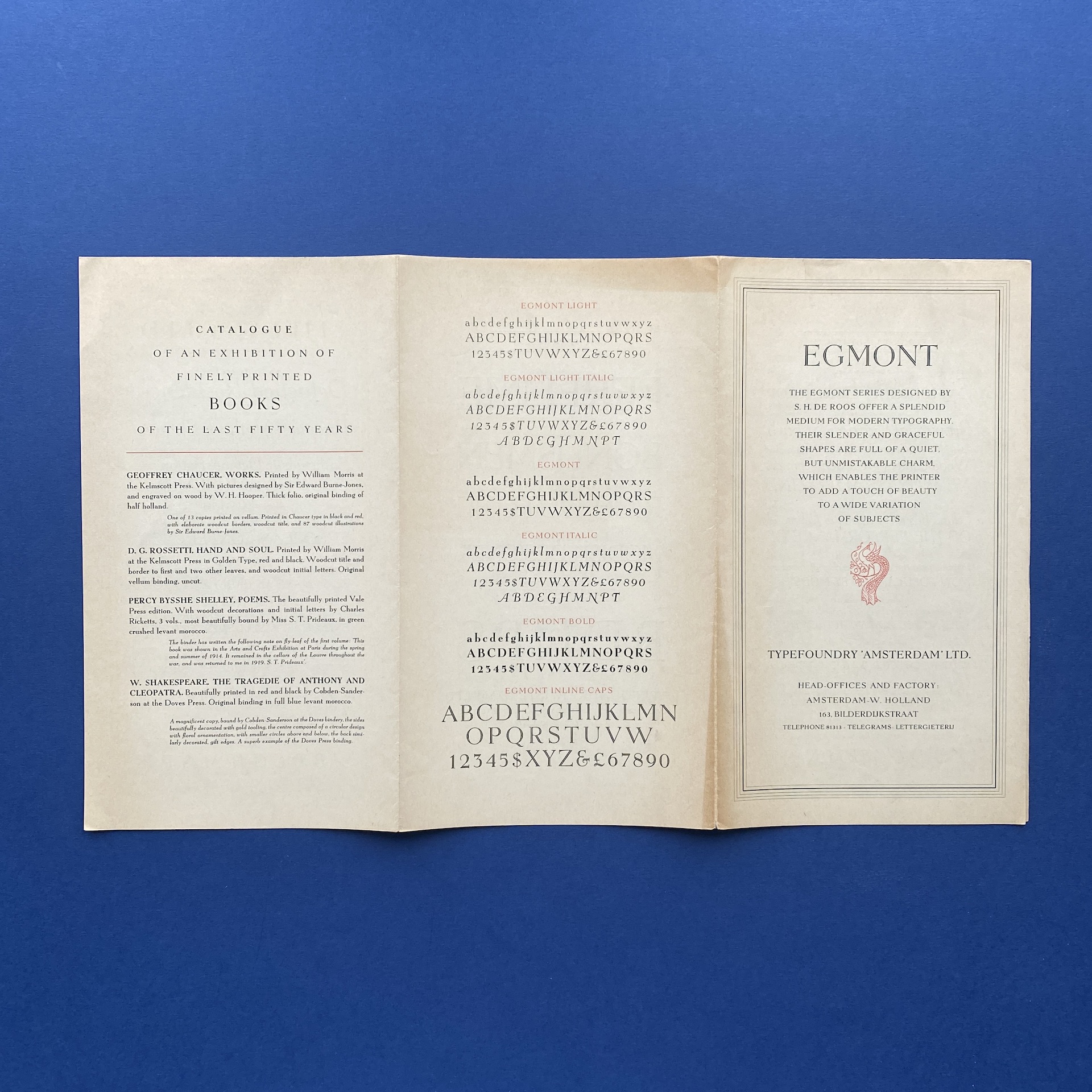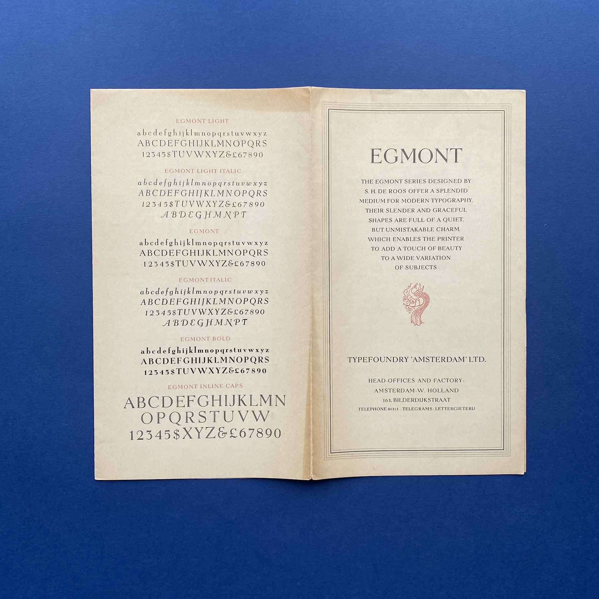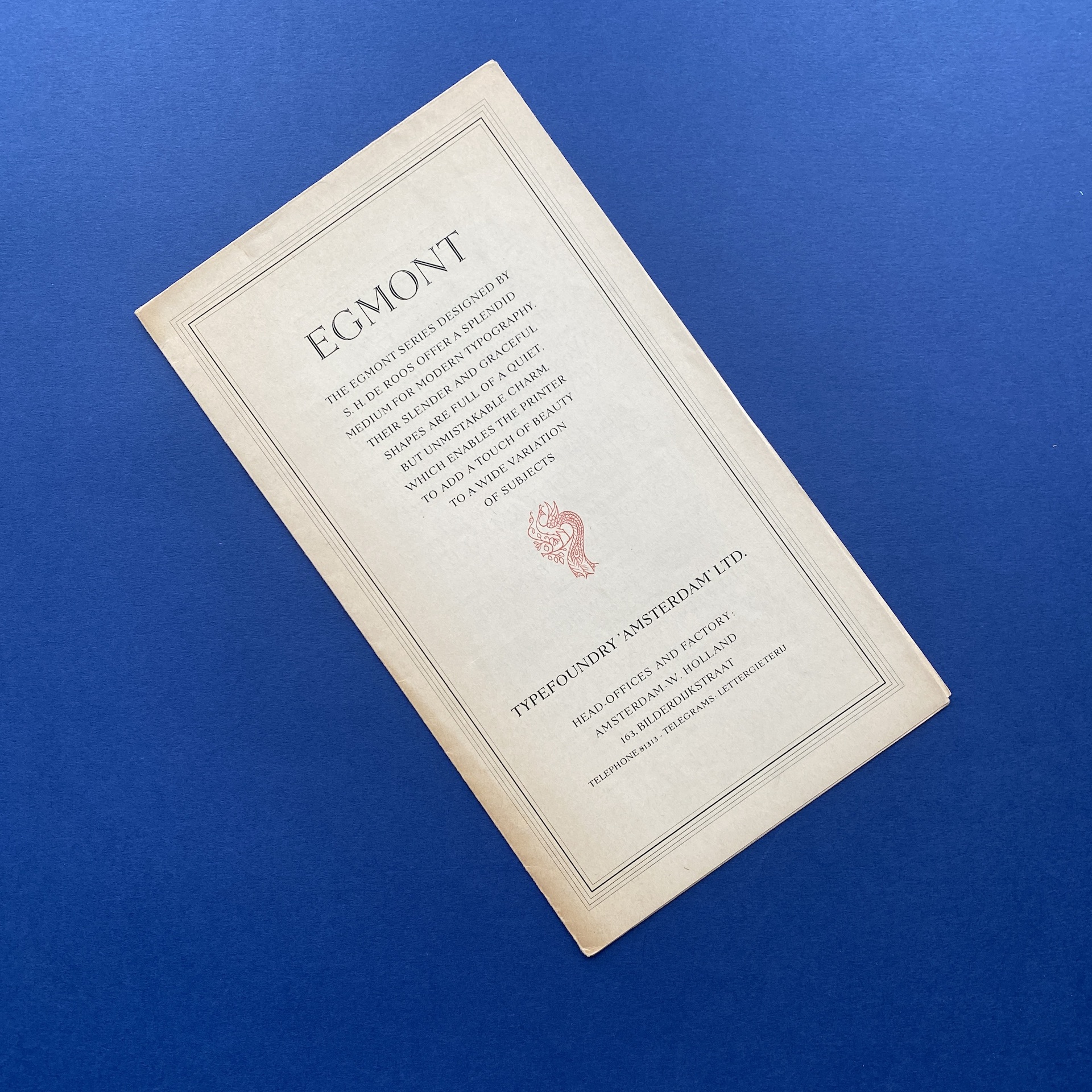 DE ROOS, Egmont, Amsterdam, Type Foundry Amsterdam, 1950s. Leaflet in very good condition.