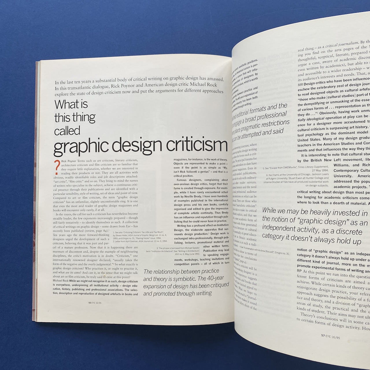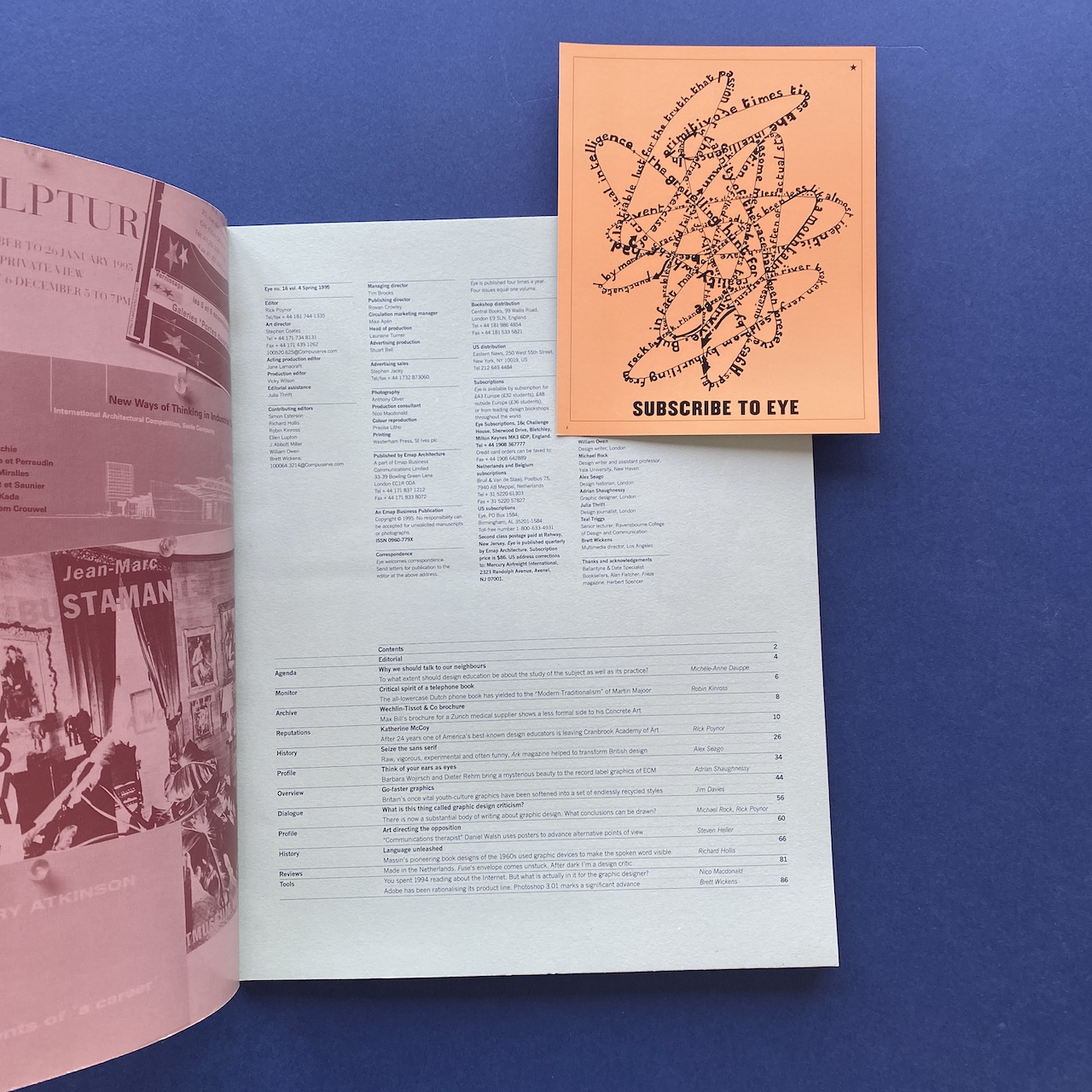 Eye, The International review of graphic design, Vol. 4, n°16, Spring 1995, London, Emap Construct, 24 x 30 cm, 88 pp.