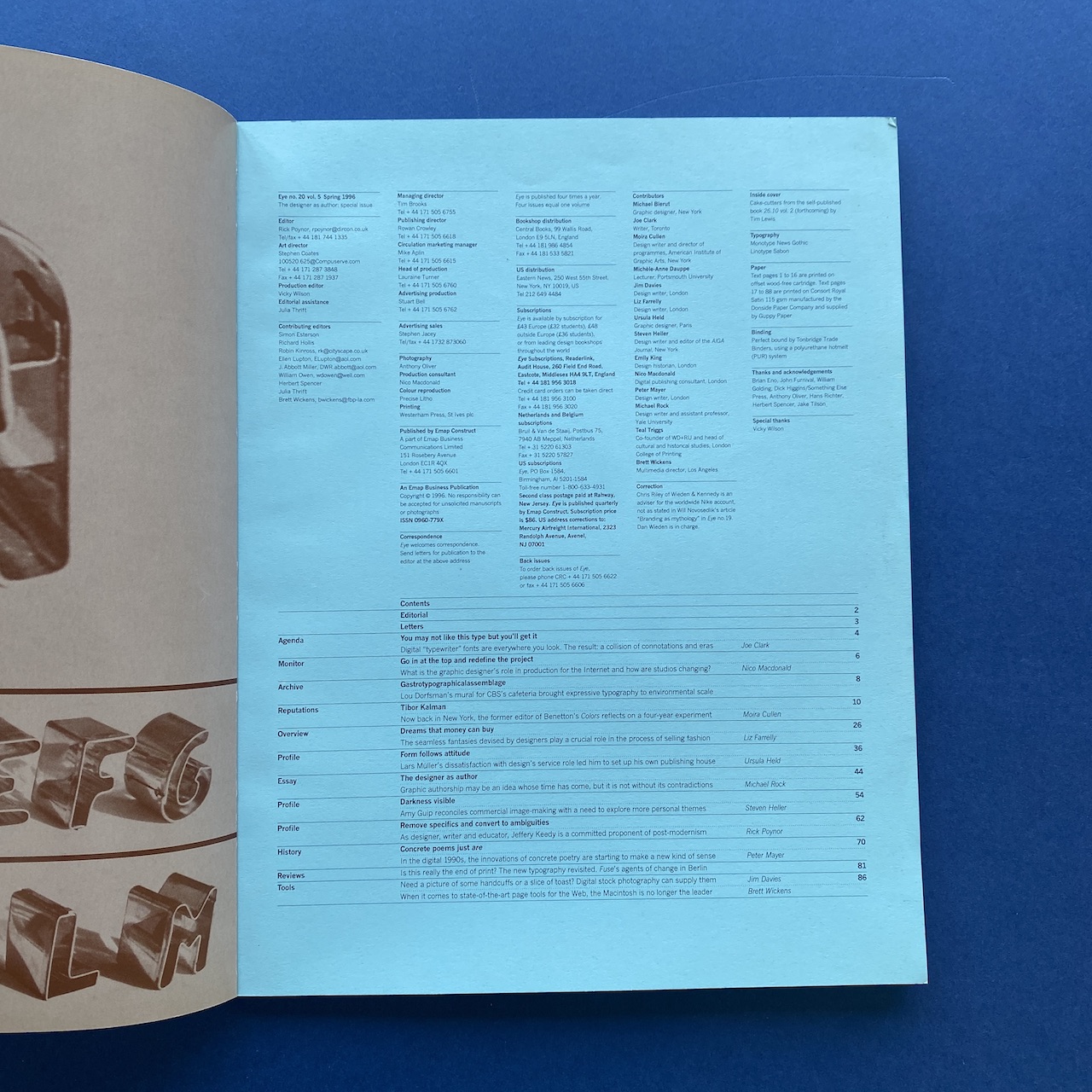 Eye, The International review of graphic design, Vol.5, n°20, Spring 1996, London, Emap Construct, 24 x 30 cm, 88 pp.