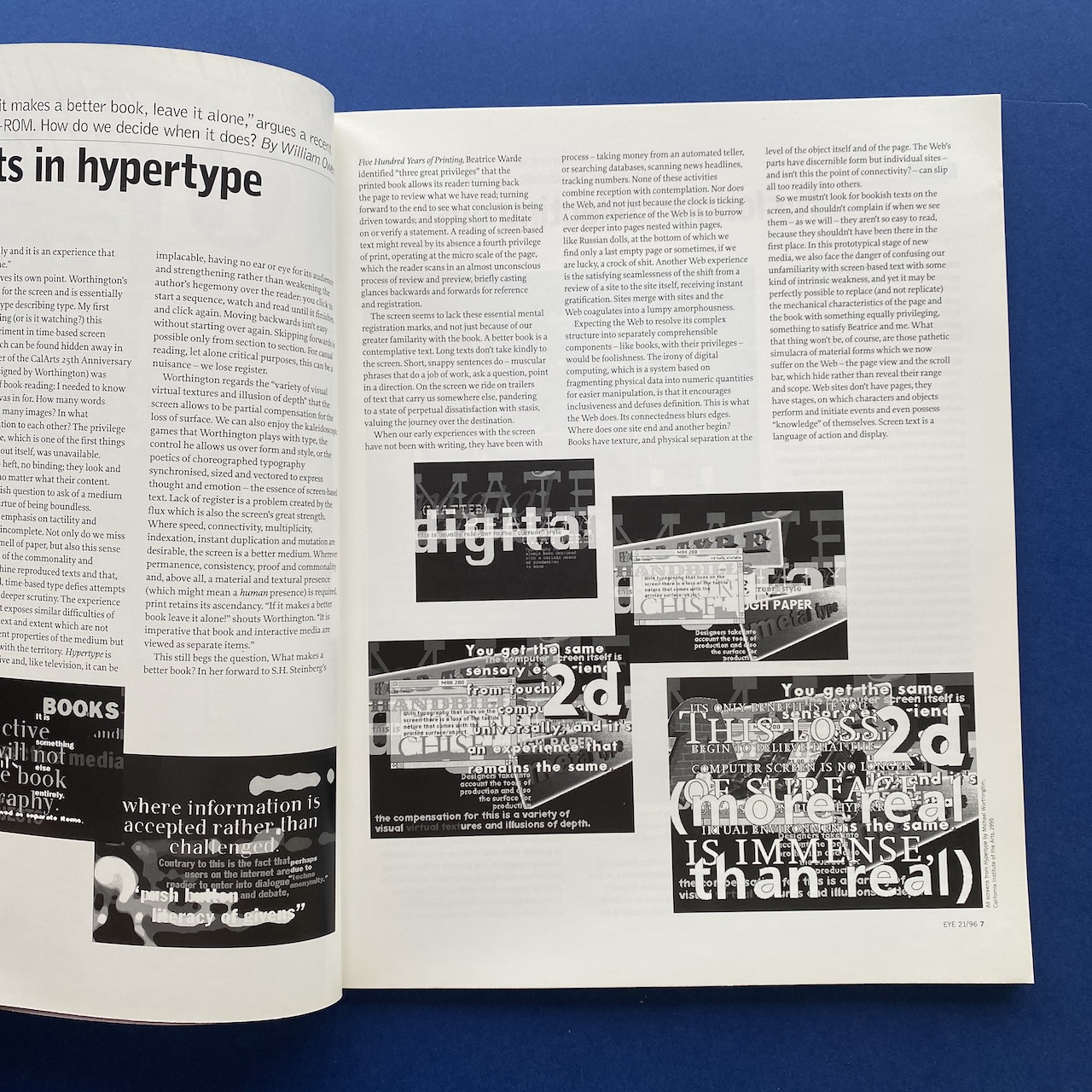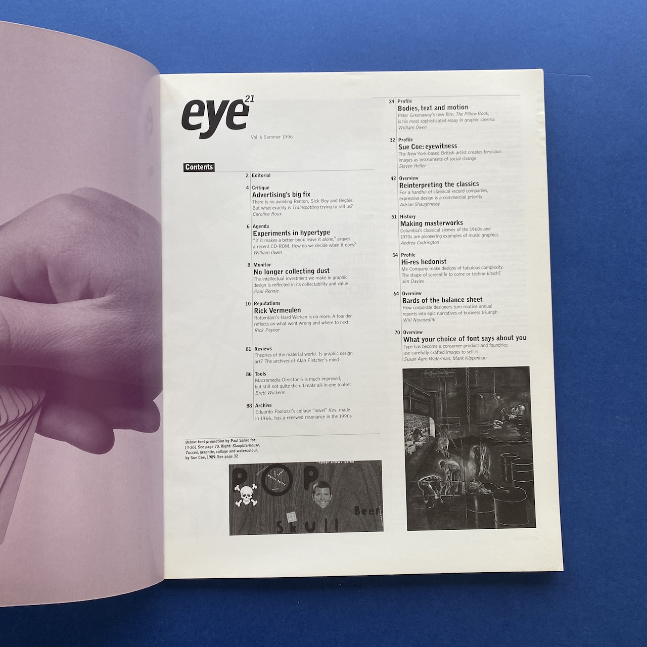Eye, The International review of graphic design, Vol. 6, N°21, Summer 1996, London, Emap Construct, 24 x 30 cm, 88 pp.