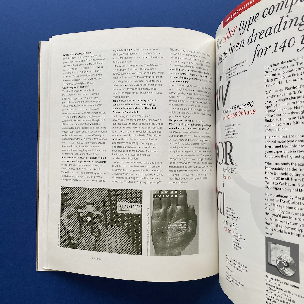 Eye, The International review of graphic design, Vol. U&lc, 4, n°13, Summer 1994, London, 24 x 30 cm, 88 pp.