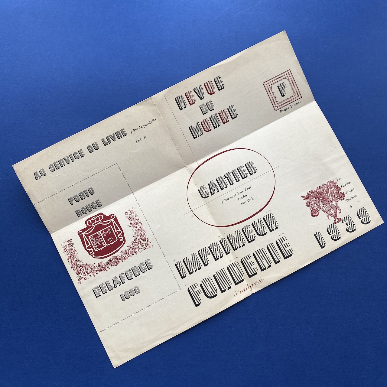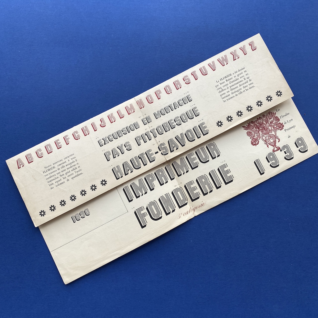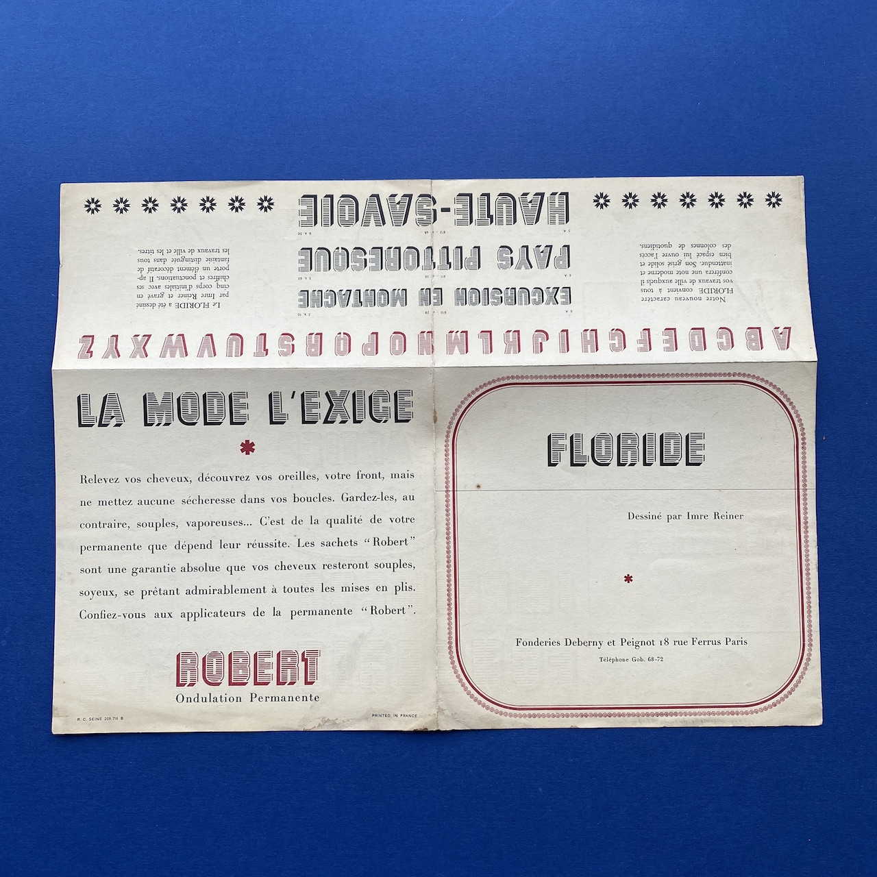 Floride, Déssiné par Imre Reiner, [1939], Fonderies Deberny et Peignot, Paris, 18,5 x 17,5 cm (unfolded 17 x 27 cm). Leaflet in very good condition.