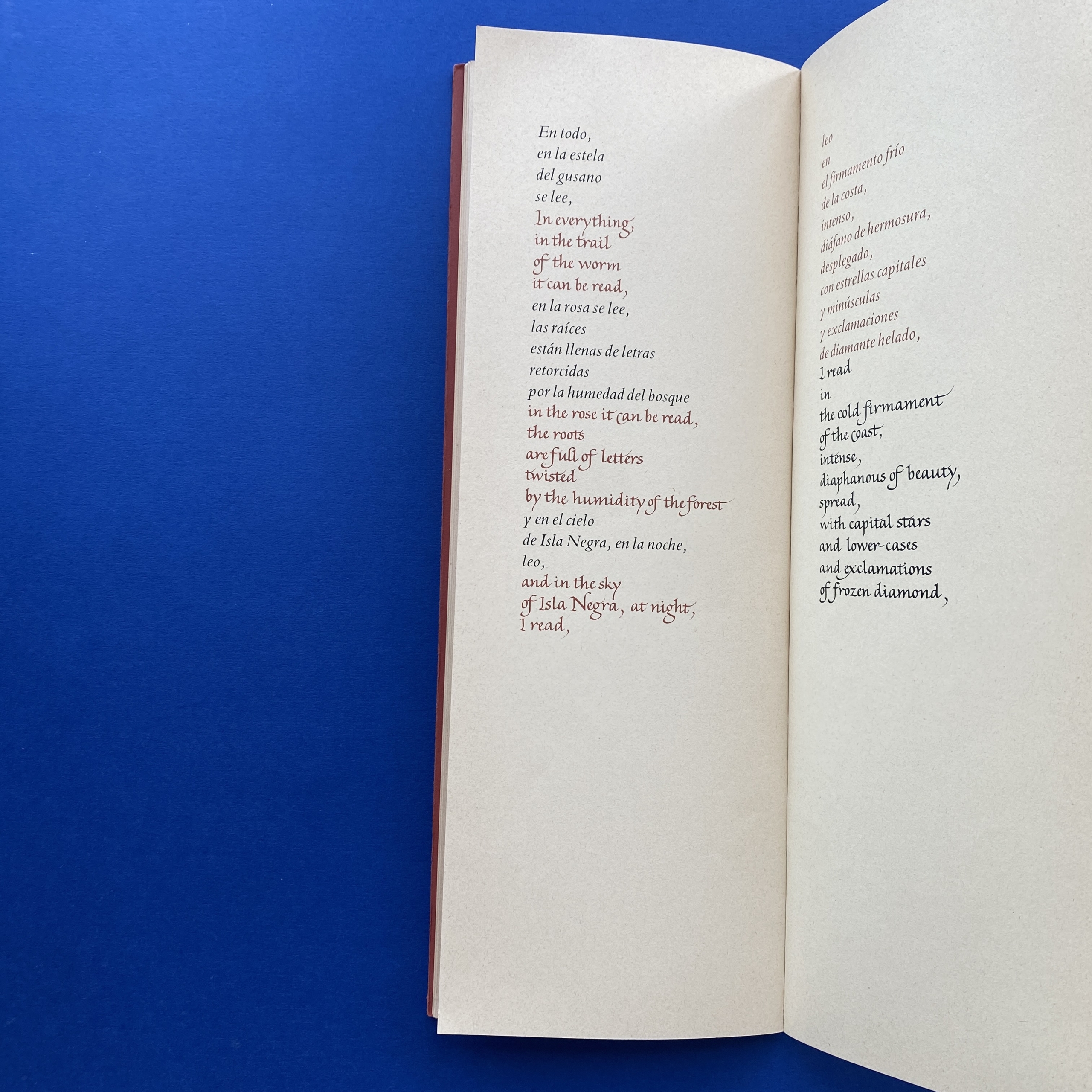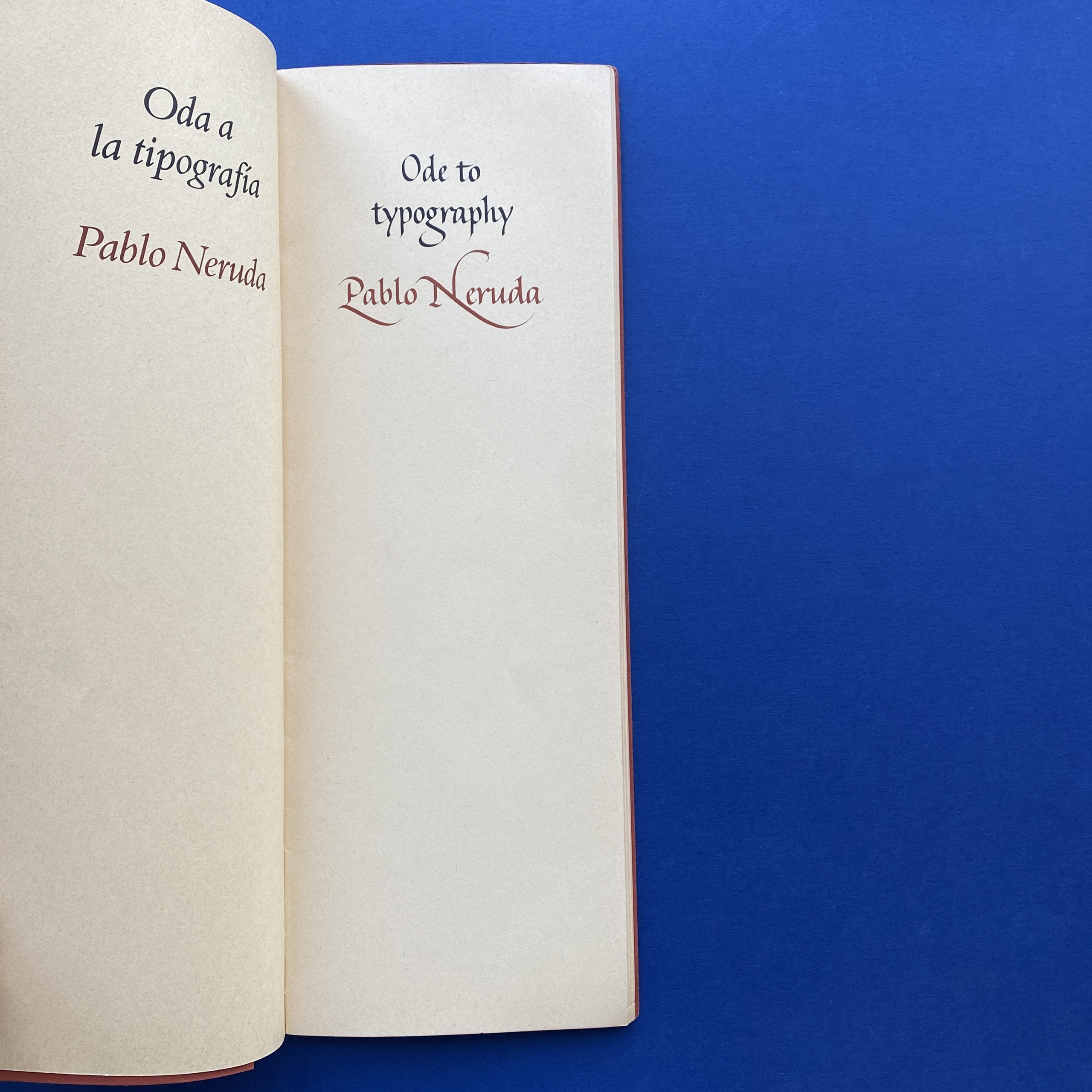 FRANKEN Heleen, Pablo Neruda, Oda a la tipografia, Ode to typography, 1979, 15 x 42 cm,36 pp. Numbered 73/75. In Spanish and English. Front and back covers are dog-eared. Interior in very good condition.25