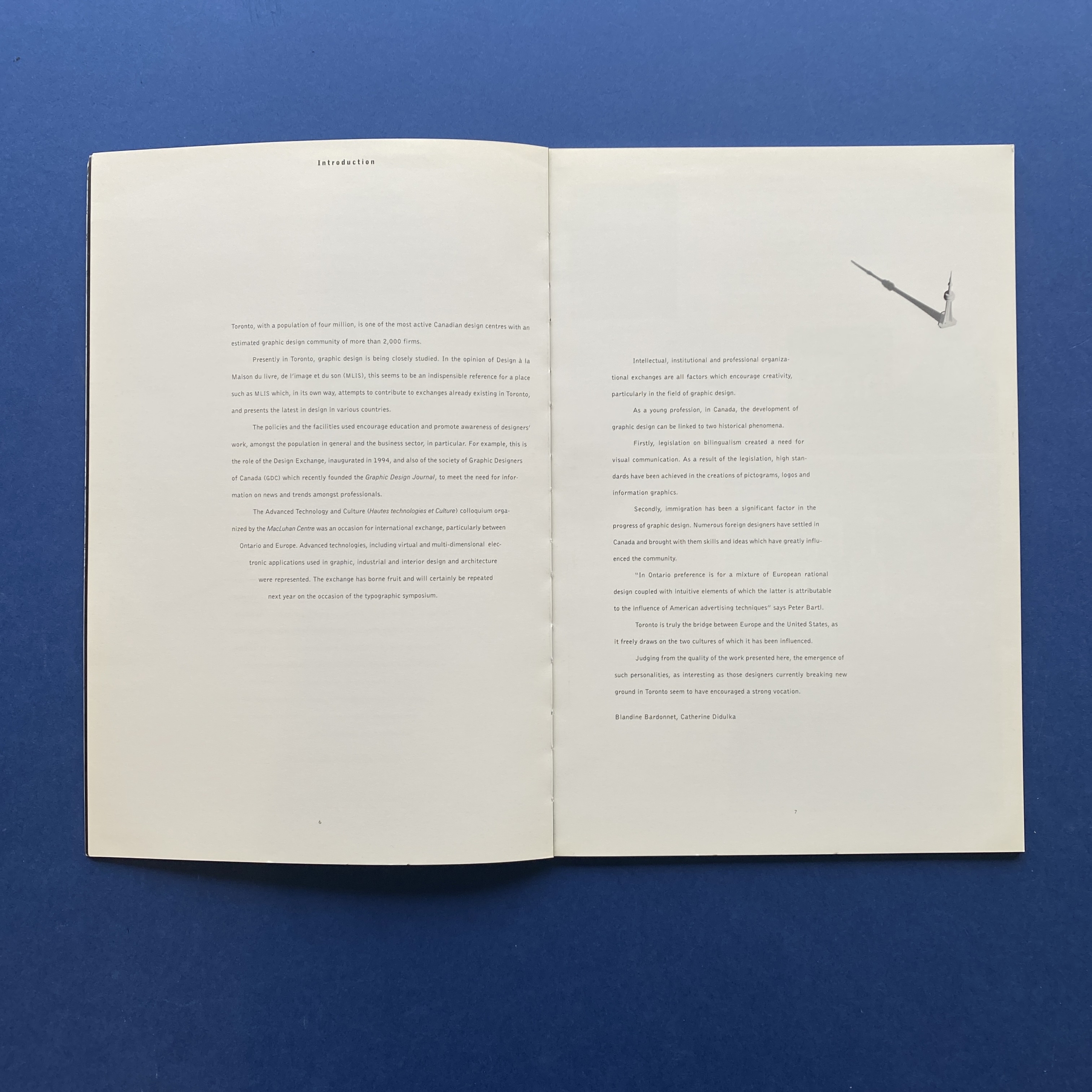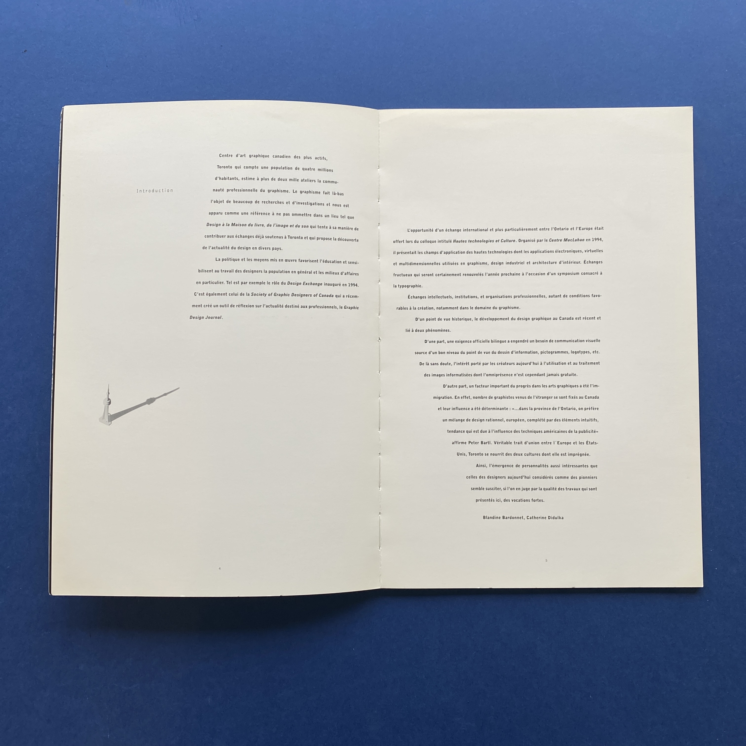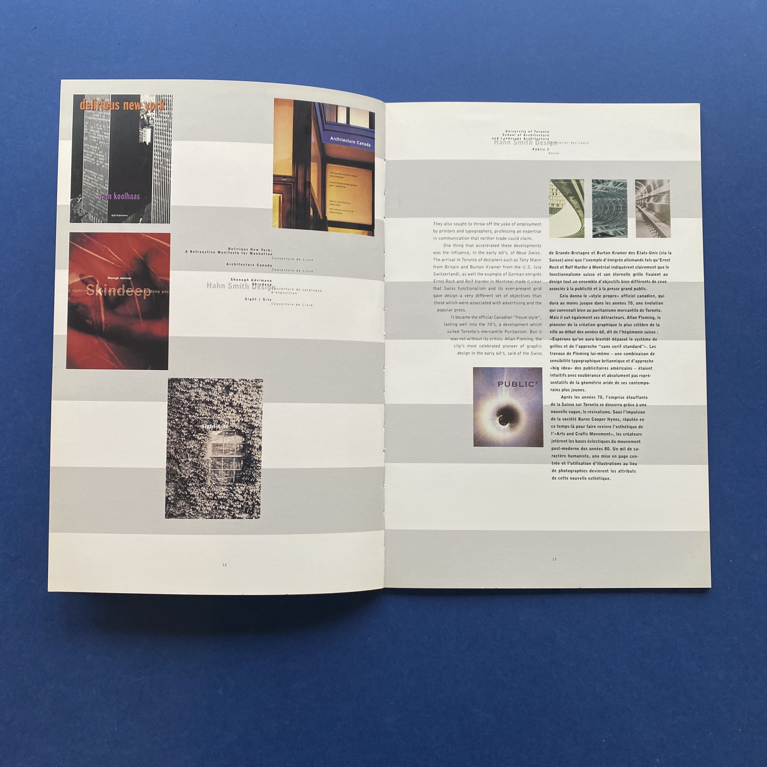 From Toronto, Design à la maison du livre, de l’image et du son, Villeurbanne Genève, 1995, 22 x 33 cm, 39 pp. Curated by Ruedi Baur.
