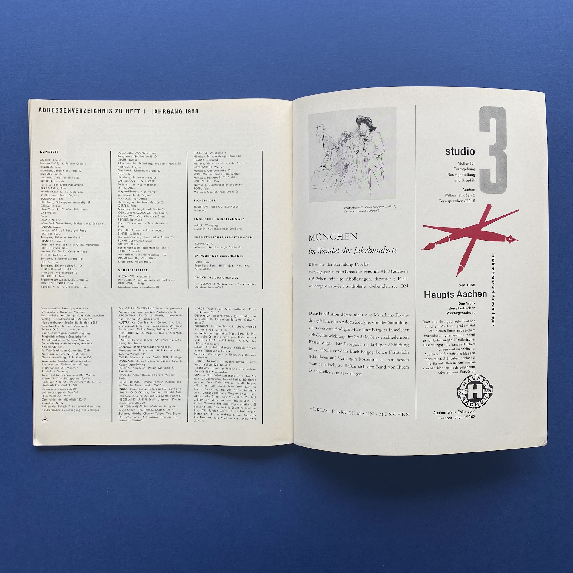 Gebrauchsgraphik 1, International advertising art, München, Eberhard Hölscher, 1958, 23 x 30 cm. Lang: Ger., Eng., Fre. & Spa. One insert about the content. Copy in very good condition.