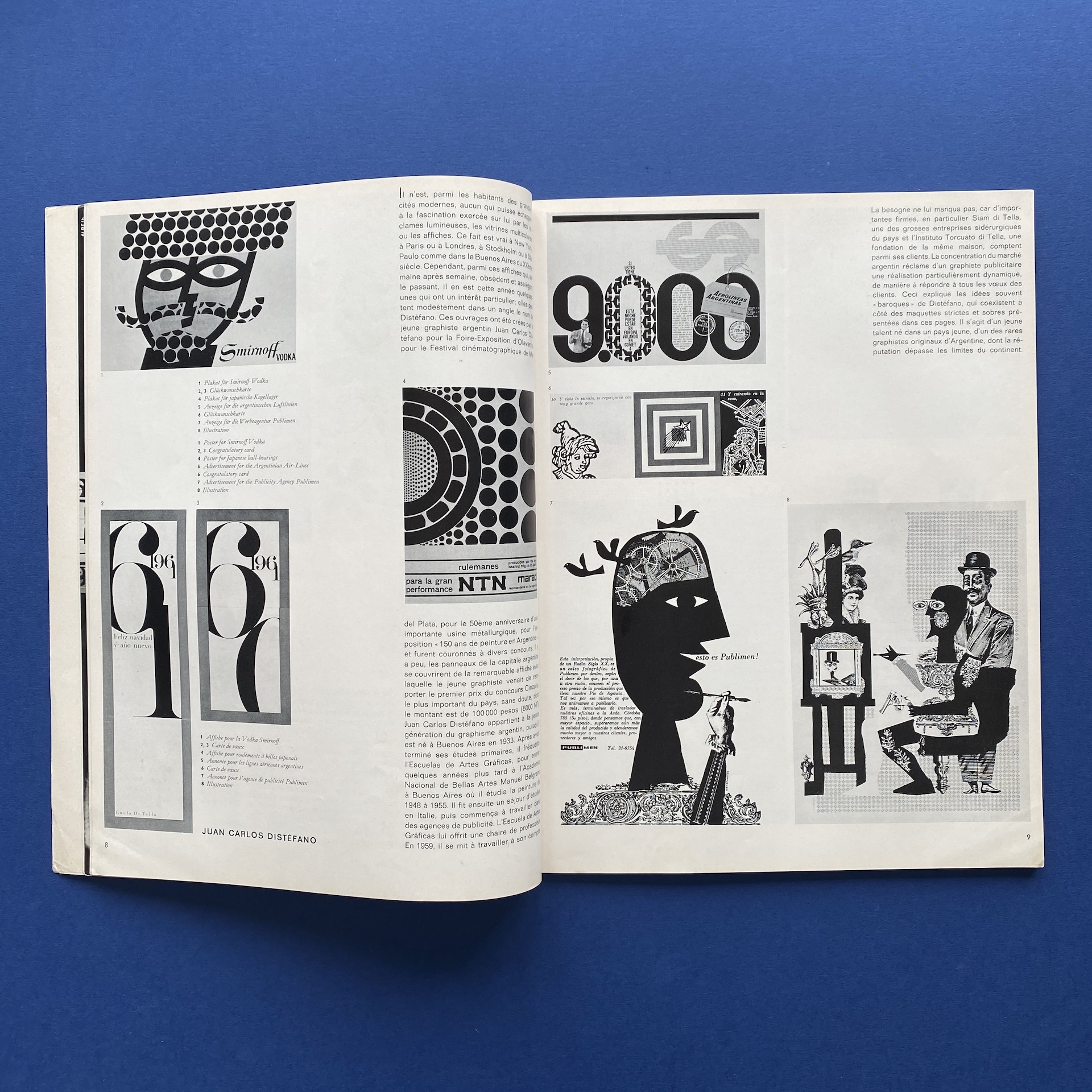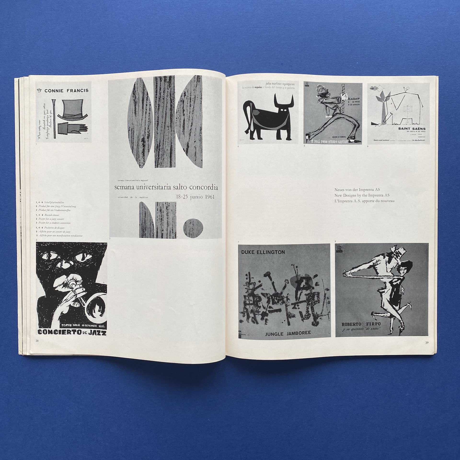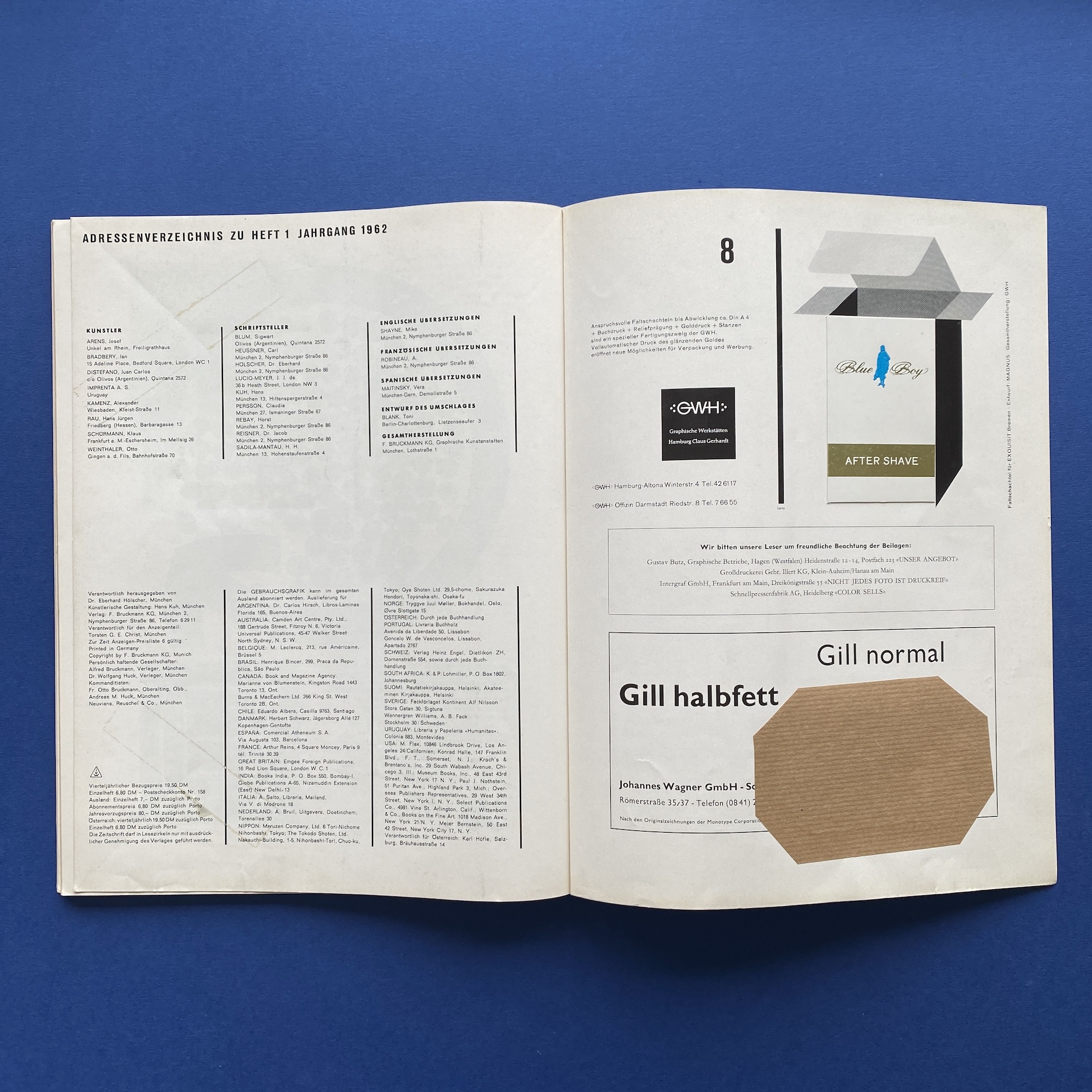 Gebrauchsgraphik 1, International advertising art, München, Eberhard Hölscher, Jan 1962, 23 x 30 cm. Lang: Ger., Eng., Fre. & Spa. Cover by Toni. Ex-library copy: “Beaux-arts de Cambrai” stamp, piece of kraft paper glued inside cover.