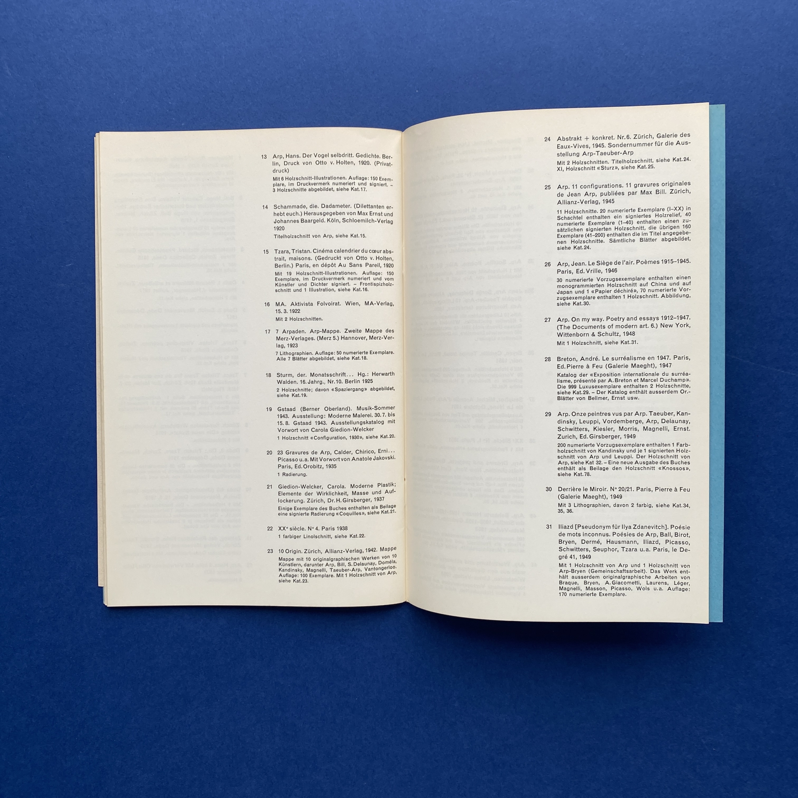 Jean Arp or Hans Arp is a french and later german painter, sculptor and poet. He was a co-founder of the dada movement in Zurich in 1916 and was later affiliated with the surealism movement. Catalogue in good condition: the covers show a strip yellowed by the time.
