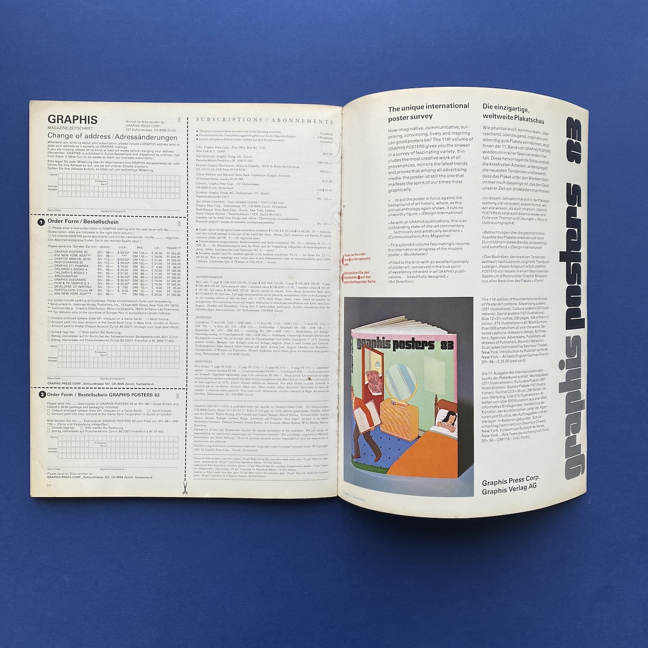 Graphis #223, International journal of graphic art and applied art, vol. 39, January/February 1983, Zurich, Walter Herdeg, 23,5 x 30 cm, 85 pp. Magazine in good general condition, the cover shows signs of use.