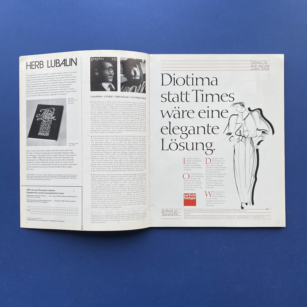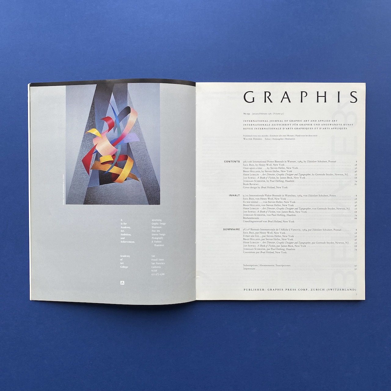 Graphis #235, International journal of graphic art and applied art, vol. 41, January/February 1985, Zurich, Walter Herdeg, 23,5 x 30 cm, 84 pp. Magazine in very good condition.