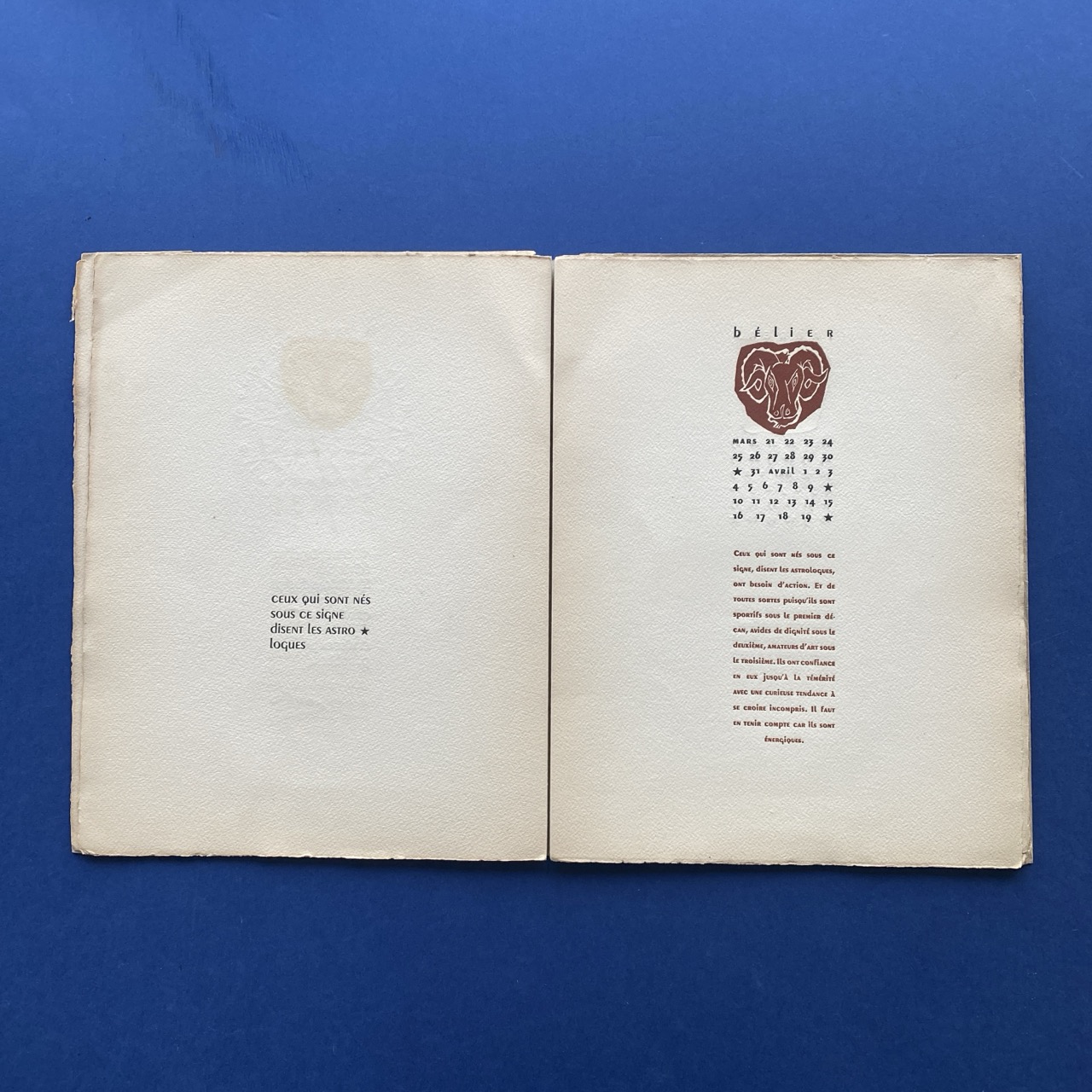 Gravures et Typographie sur les signes du zodiaque, Paris, éditions du sept, no date, 25,5 x 33,5 cm.