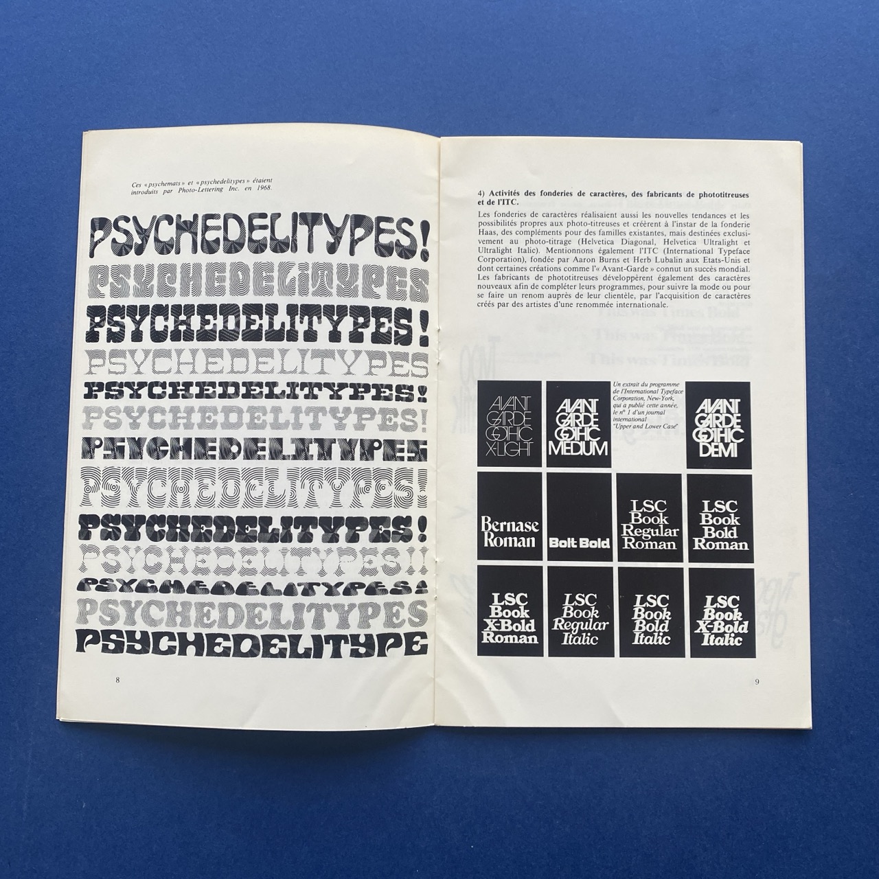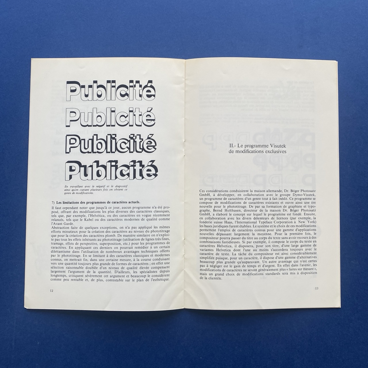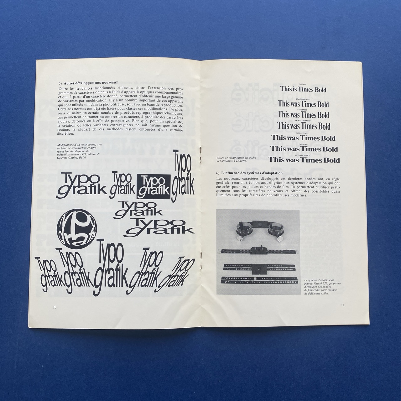 Harald J. Götzelmann, Phototitrage, Le Développement des programmes de caractères depuis les années cinquante, Arts et techniques graphiques n°89, March/April 1974, 20 pp, 17 x 27,4 cm.