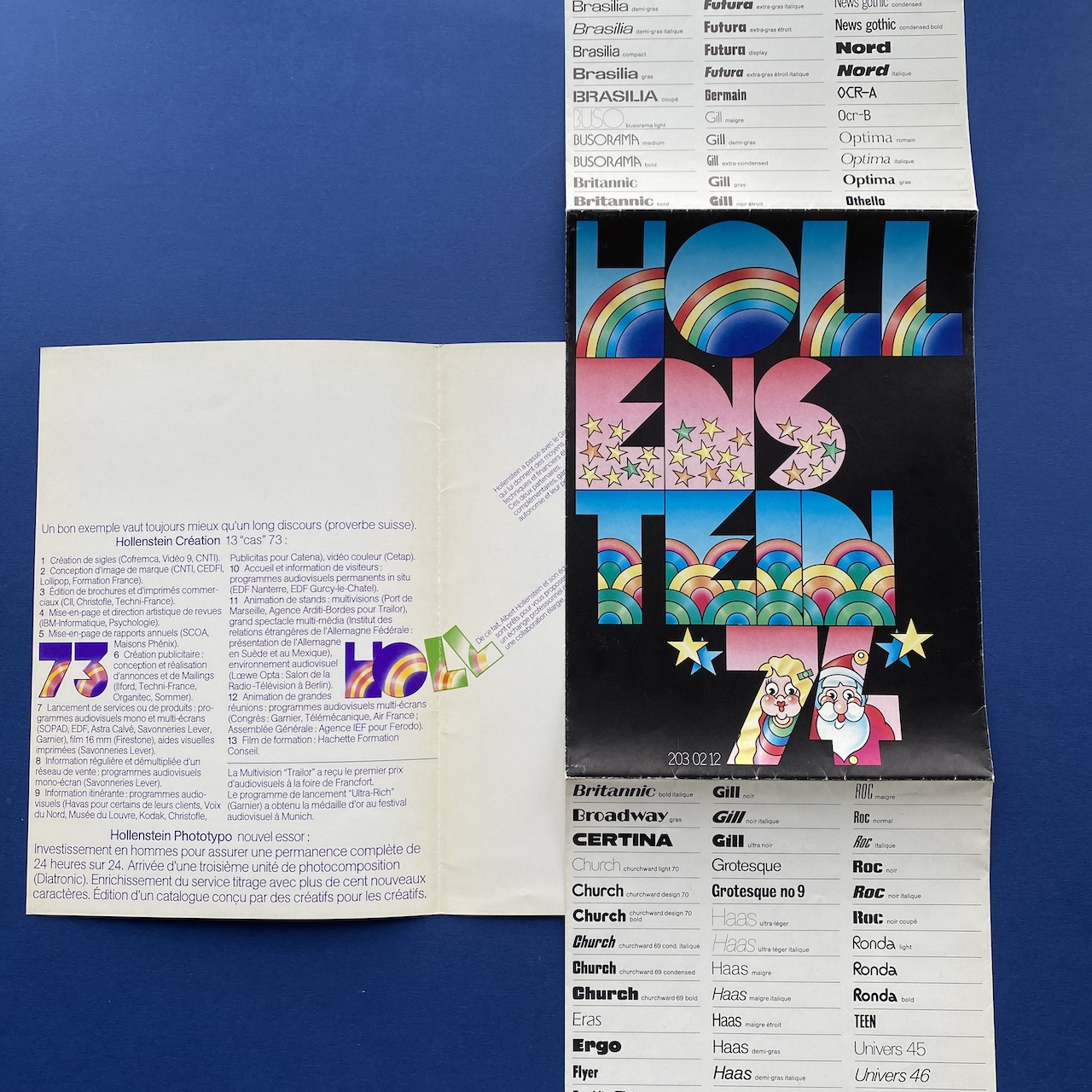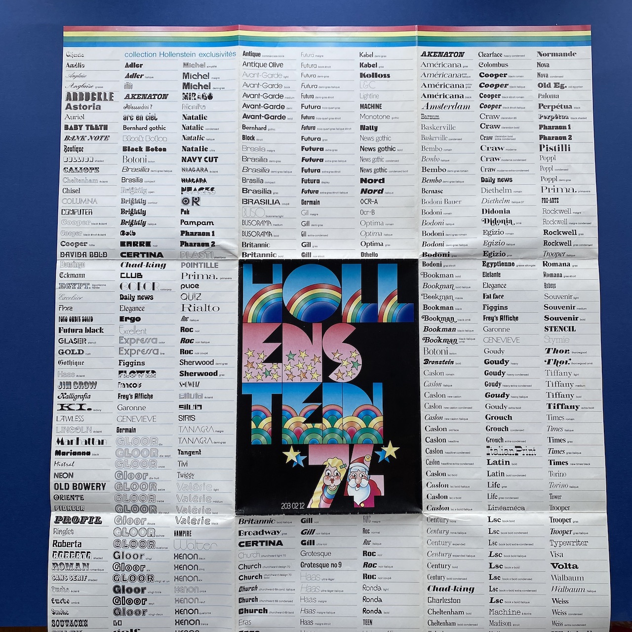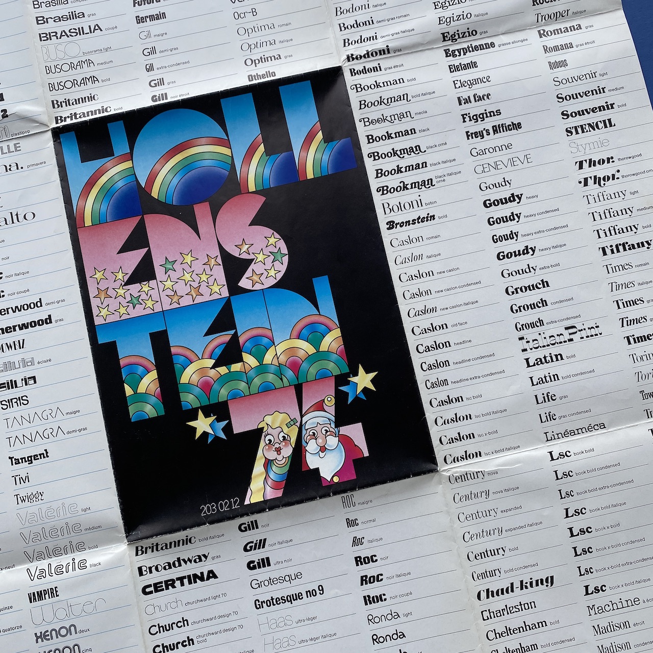 Hollenstein 74, 1974, printed by Draeger. Rare folded poster (unfolded 69,5 x 80,5 cm) inside a folder (20 x 27,5 cm). Very good condition.