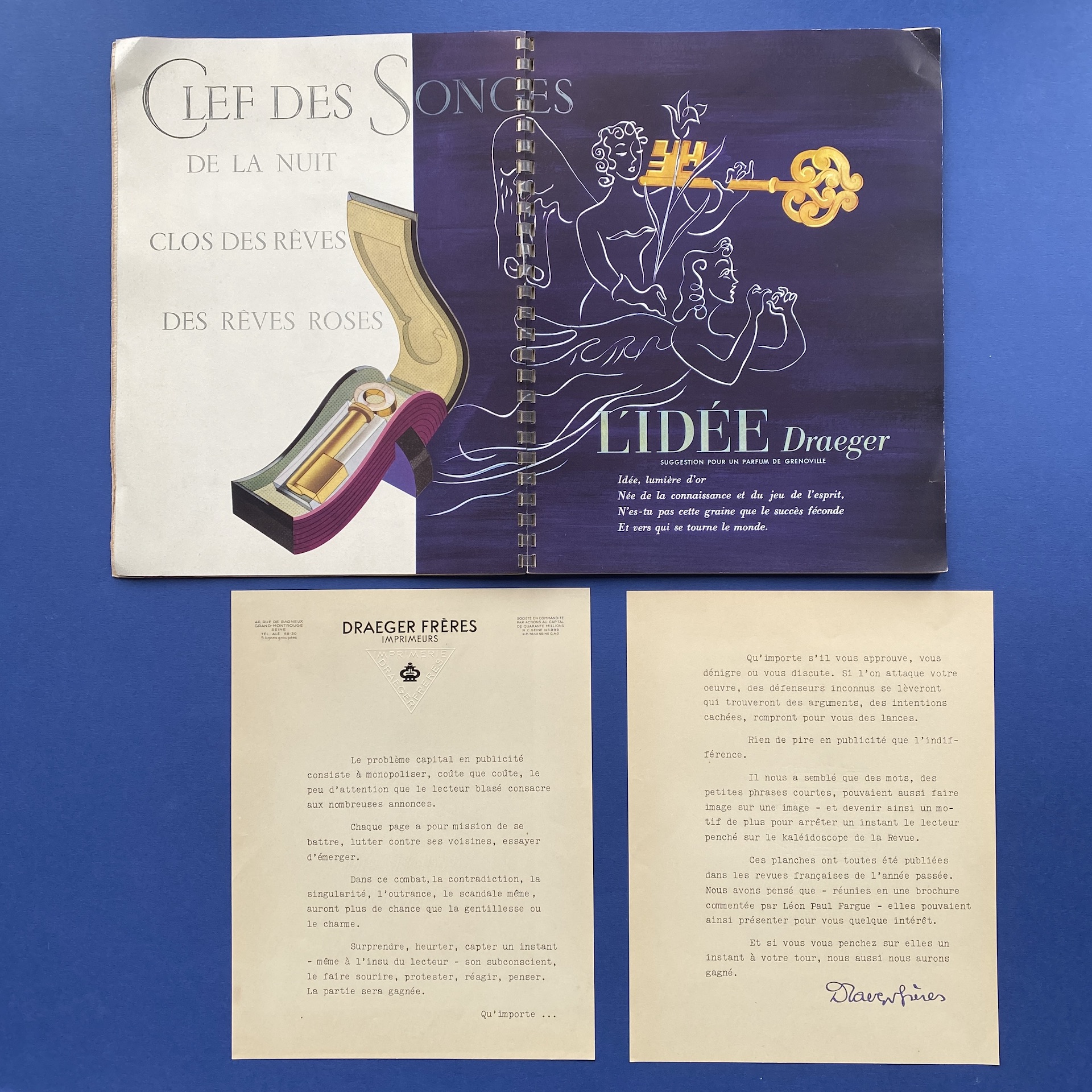 Idées, Paris, Draeger Frères, 1948, 31,5 x 24 cm, 36 pp. 15 advertising boards (Hermès, Harcourt, Berthelot). Introduction by Léon-Paul Fargue. Copy in good general condition, front cover shows some signs of wear.