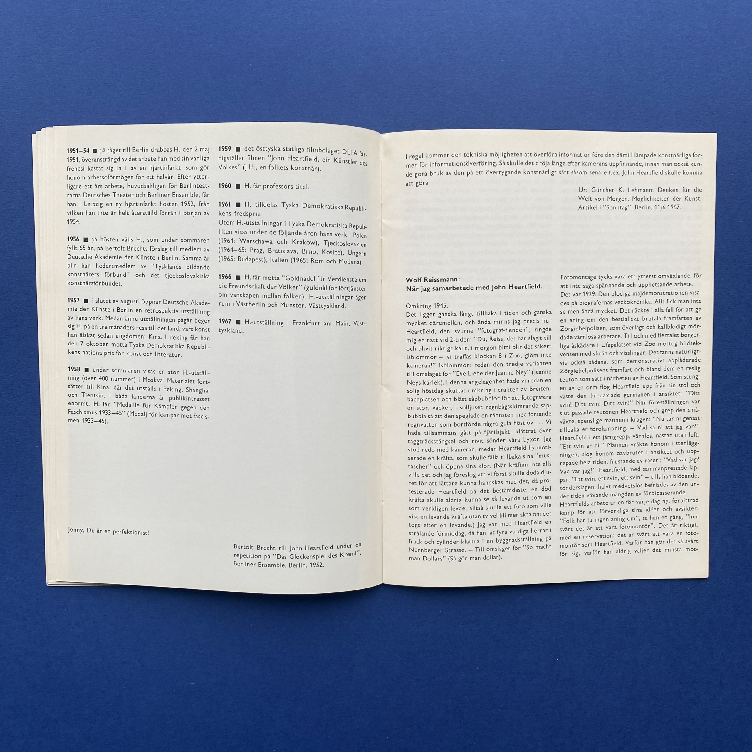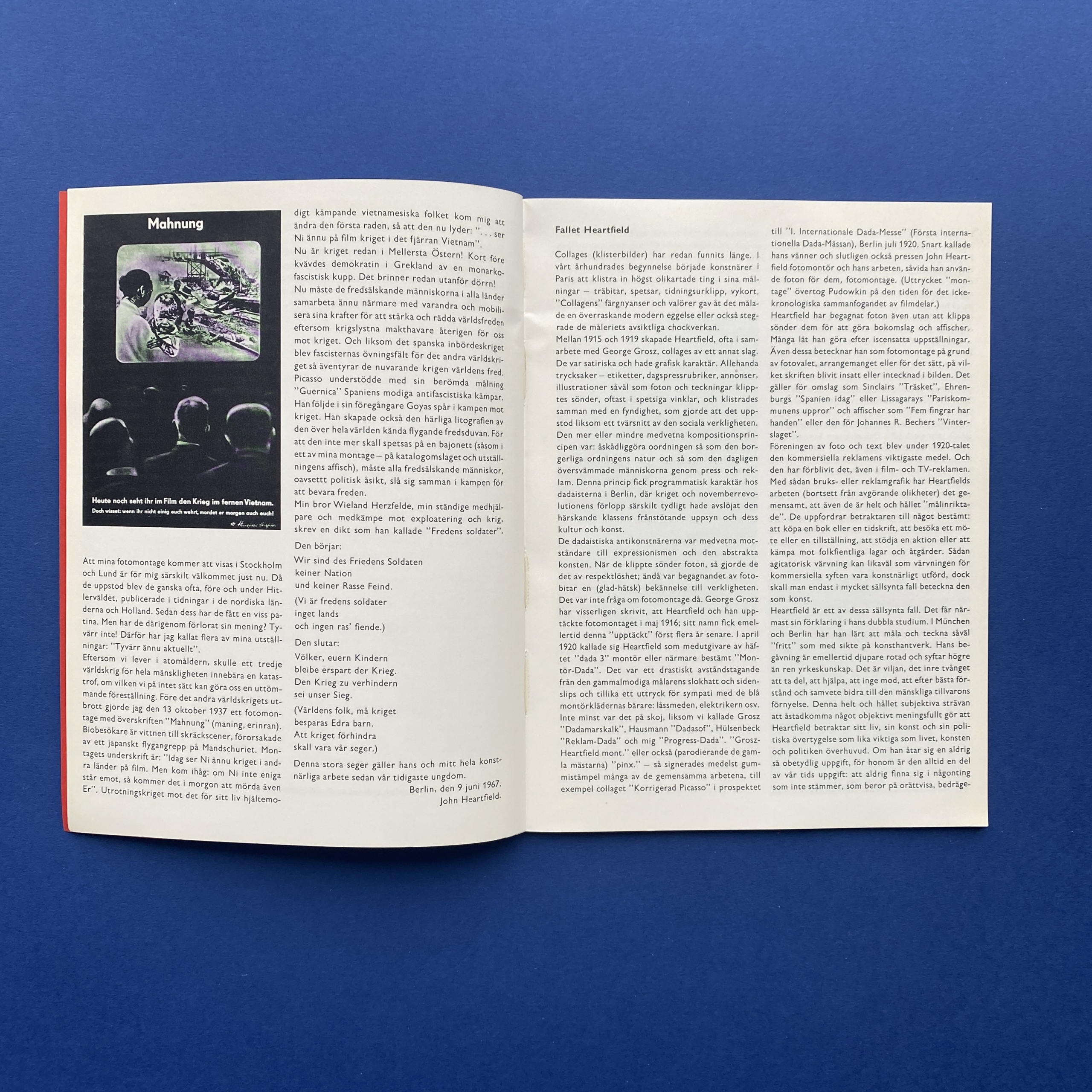 John Heartfield, Deutsche Akademie der Künst DDR, Fotomontör, Moderna Museet, Stockholm, 1967. In swedish. Copy in very good condition.