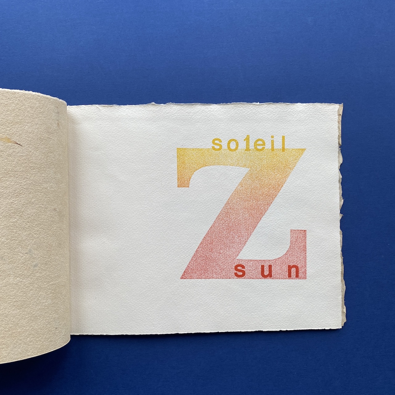 KRAMER-HAANTJES Inga, Sentiment d’été, 1994, 15 x 42 cm, 12 pp. Letterpressed and signed by the artist. Soft cover, binding sewn with a cord. Very good general condition.