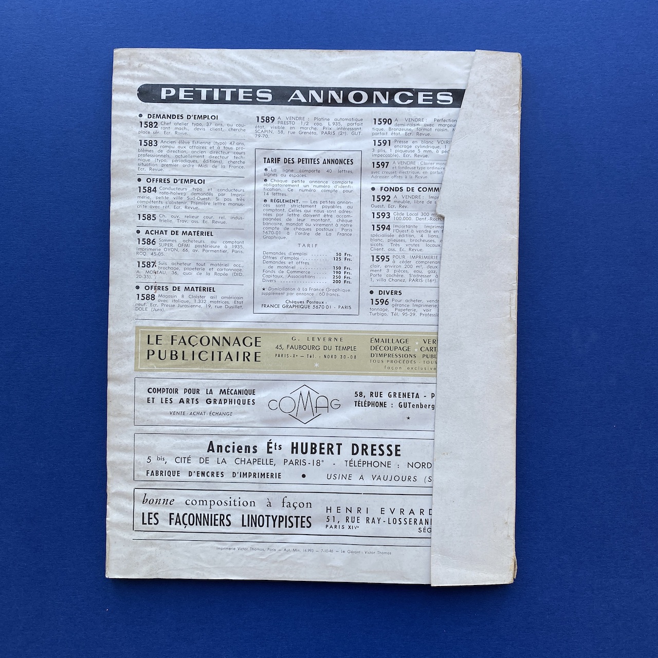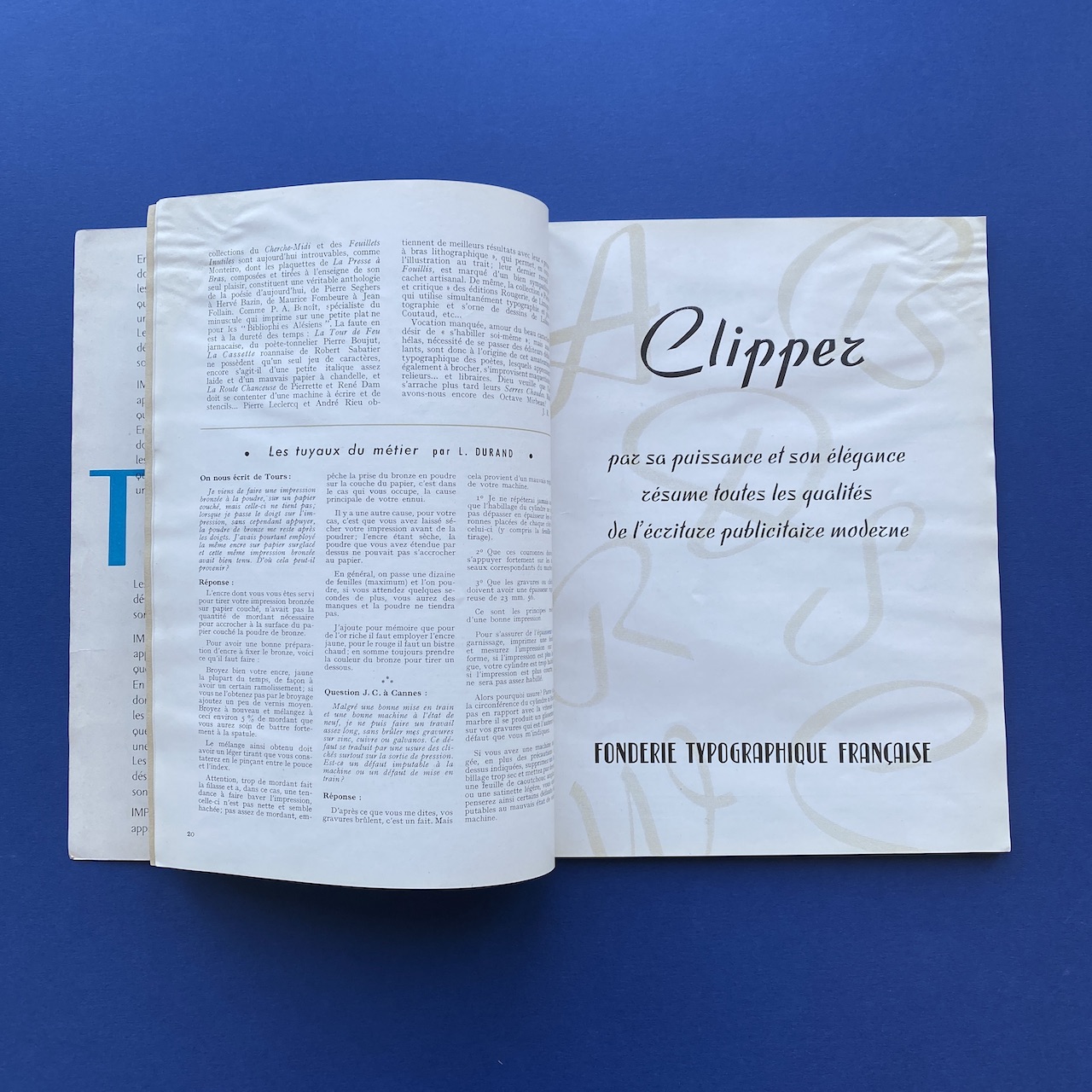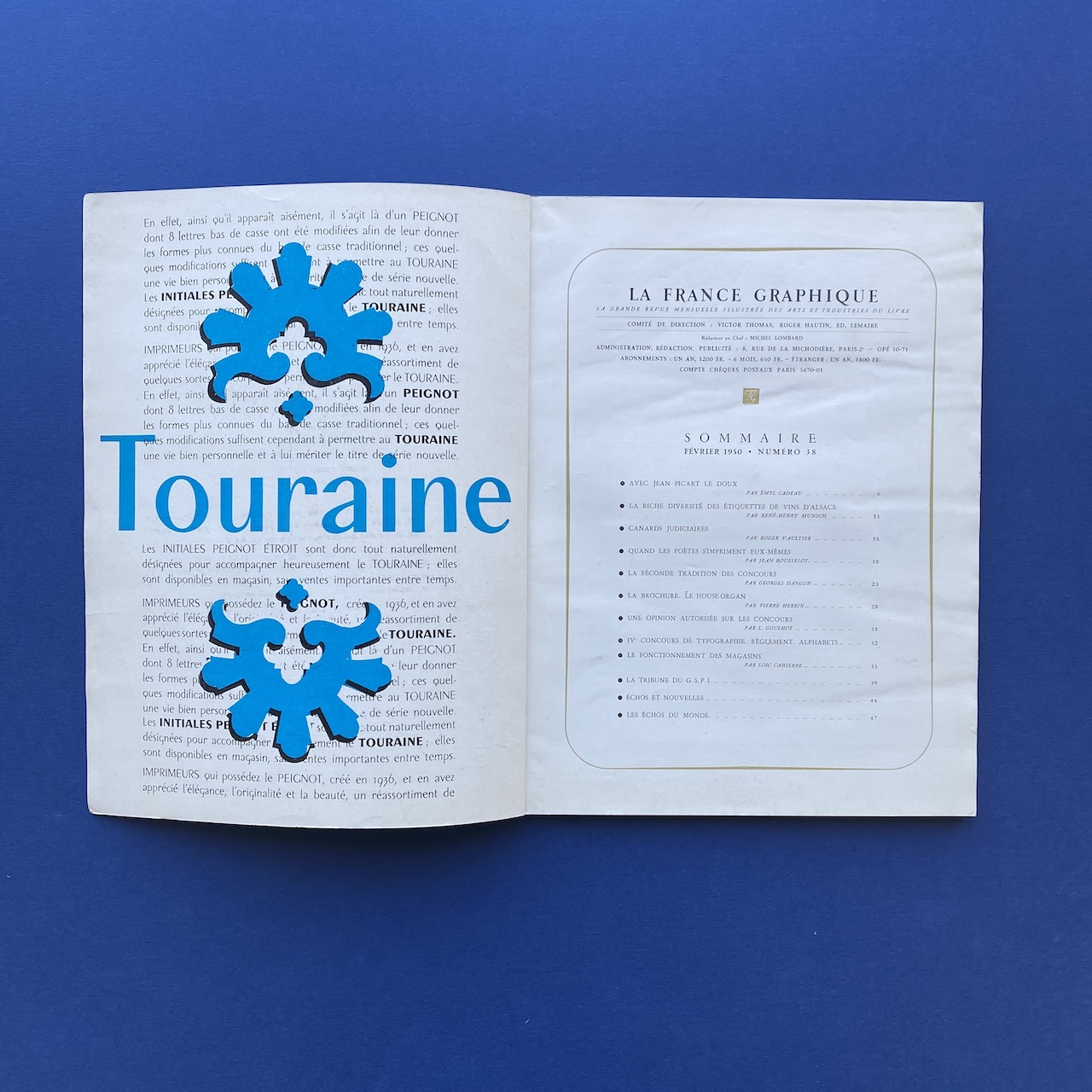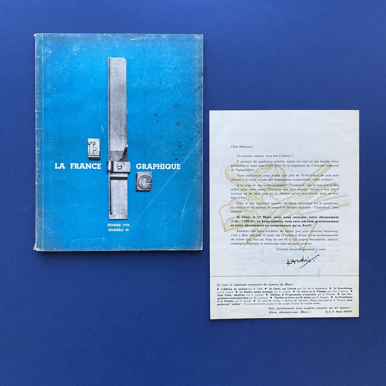 La France graphique #38, La revue de l’imprimeur, February 1950, Paris, 20,5 x 26,8 cm, 66 pp. Two inserts: a letter and a