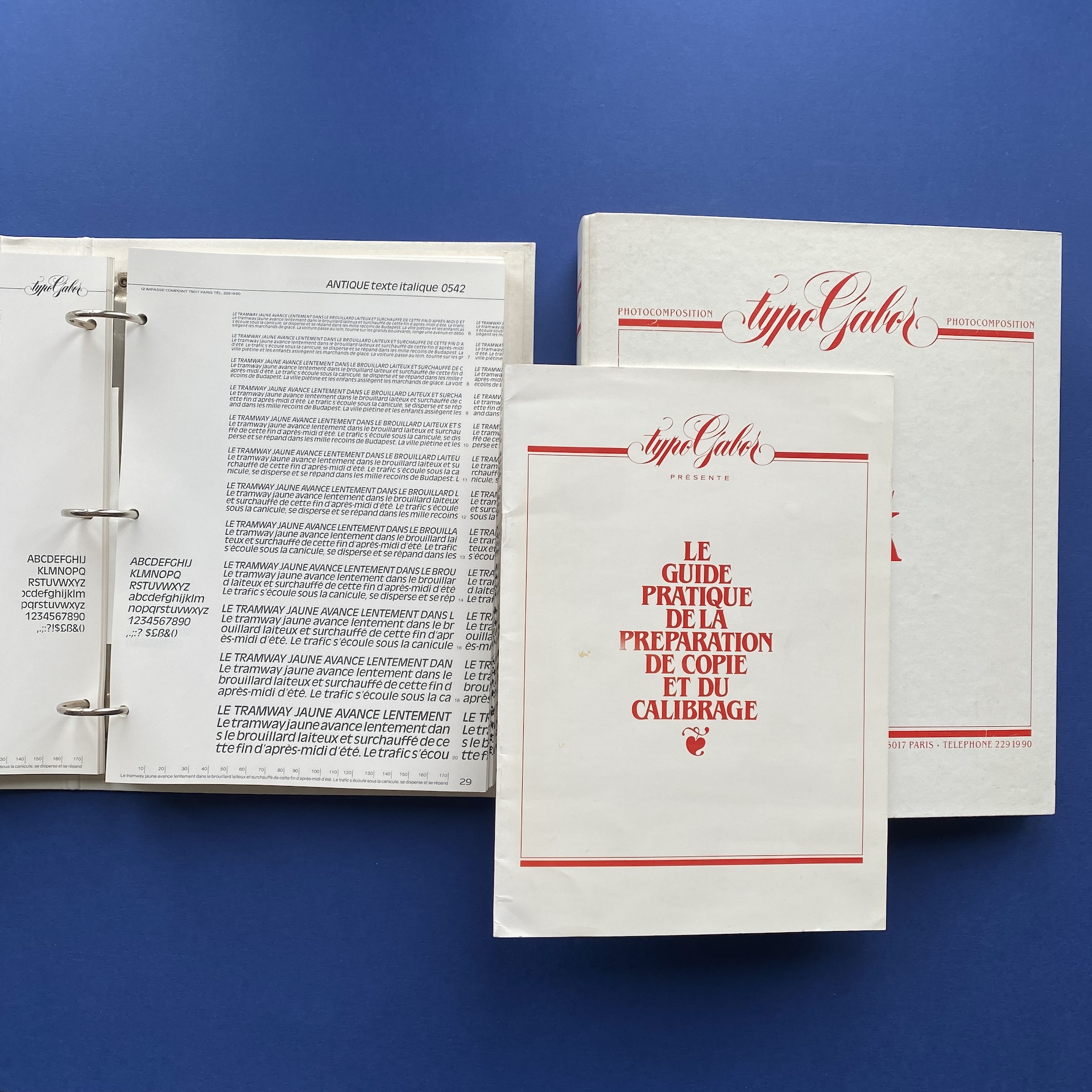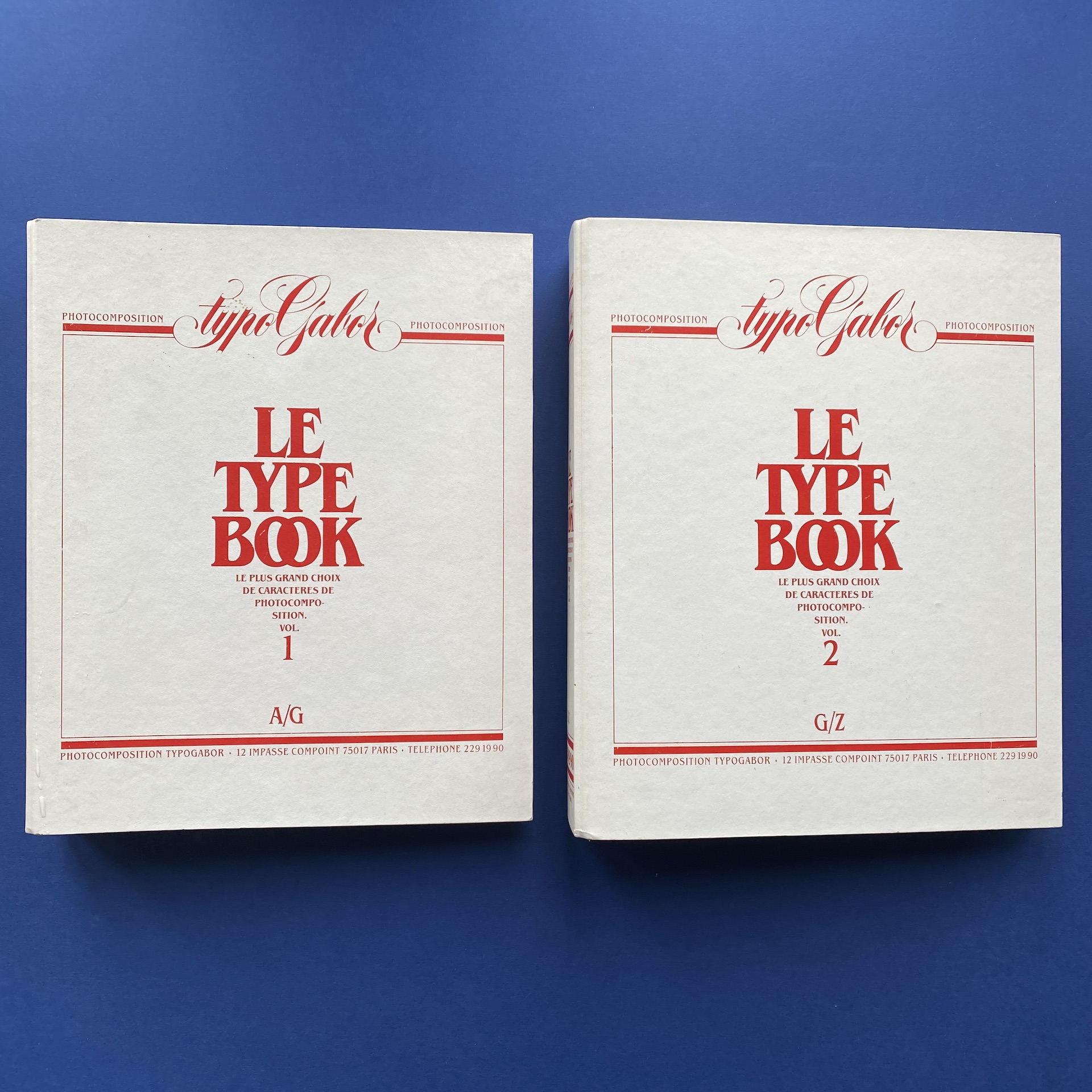 Le Type Book, Vol. 1 and 2, Le plus grand choix de caractère de photocomposition, Paris, Photocomposition Typogabor, 1970s, 26,5 x 32 cm. This lot includes 2 binders in very good condition