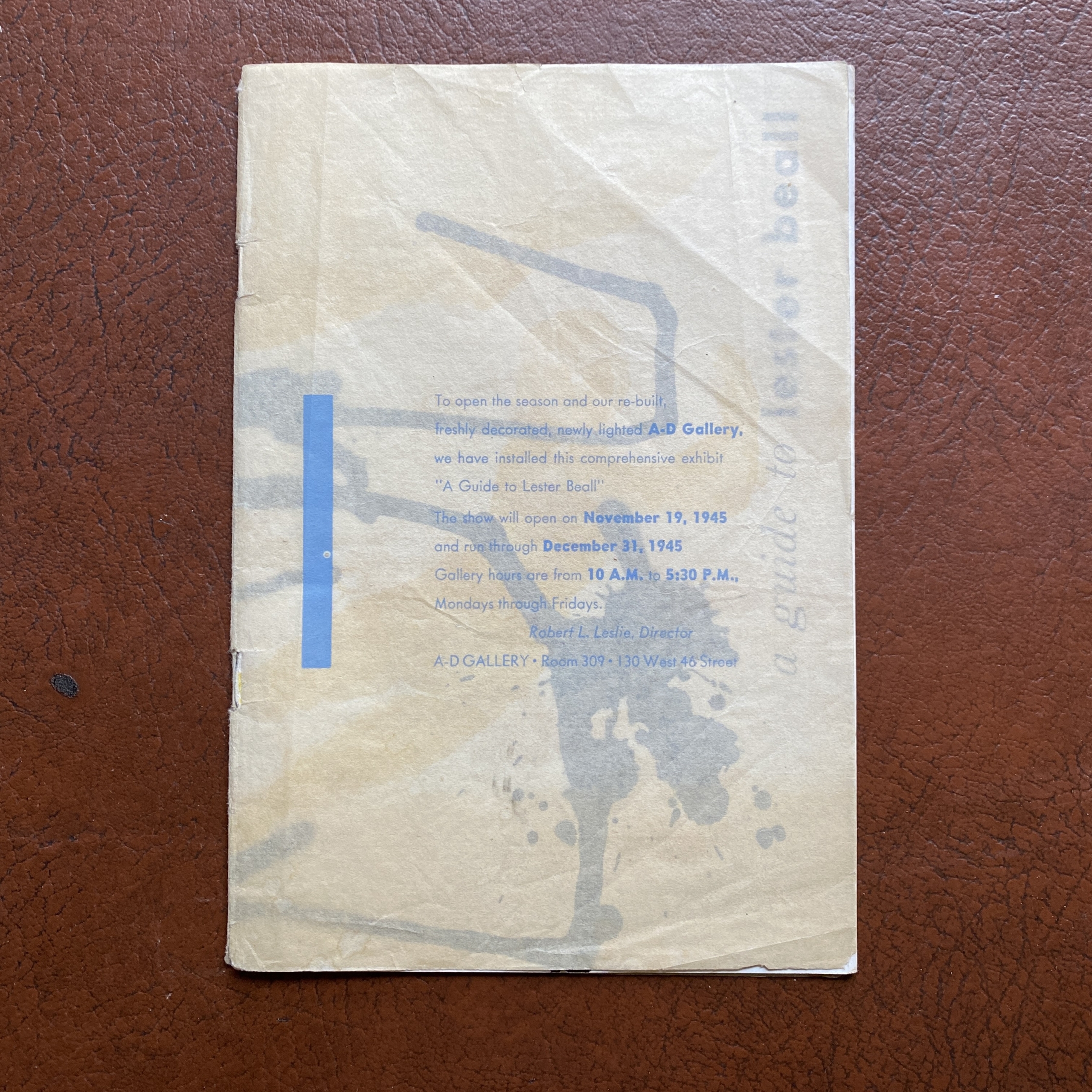 Lester Beall, A Guide to Lester Beall, A-D Gallery / The Composing Room, NY NY, 1945. 16 pp. Booklet.13,8 x 20,3 cm. Cover printed on crystal paper.