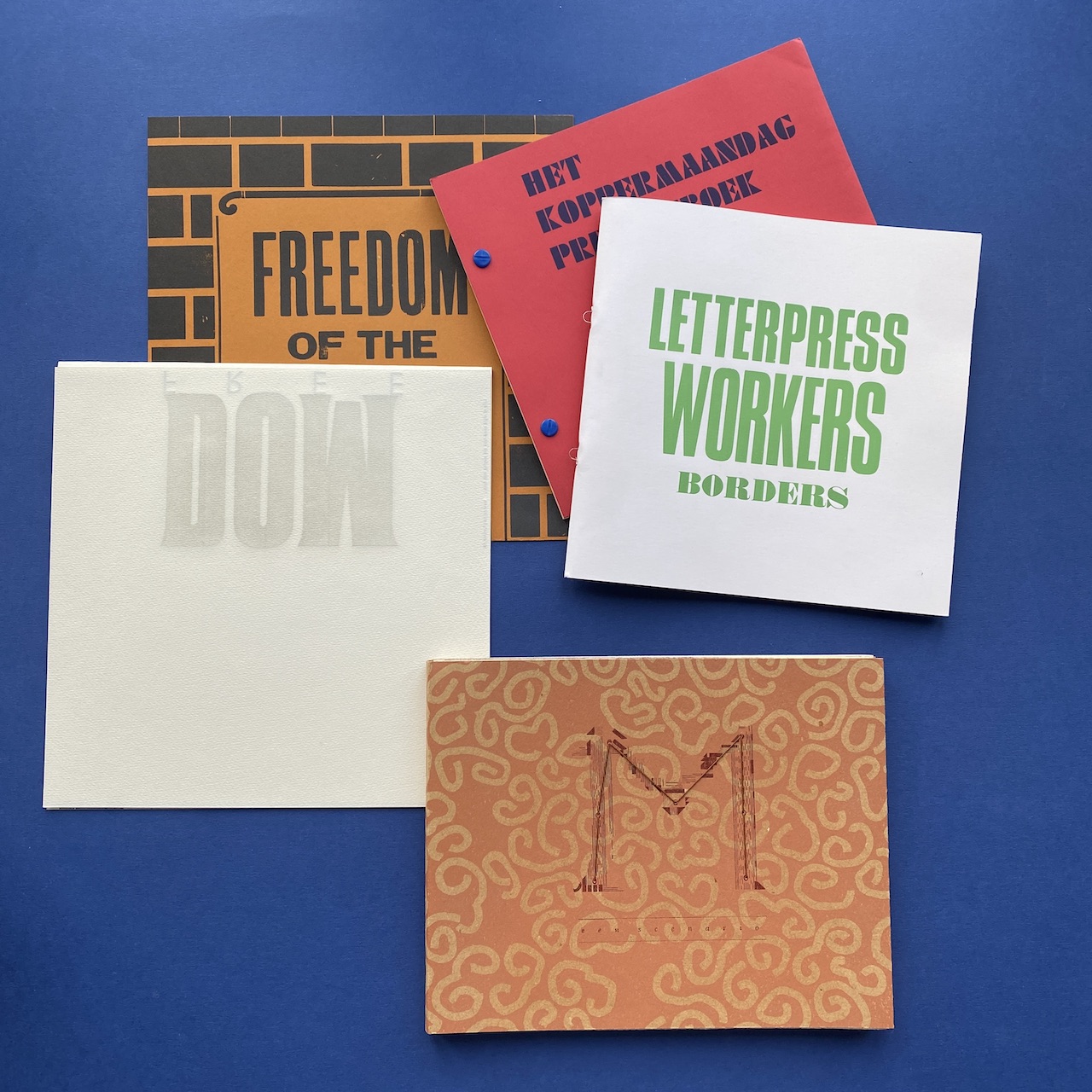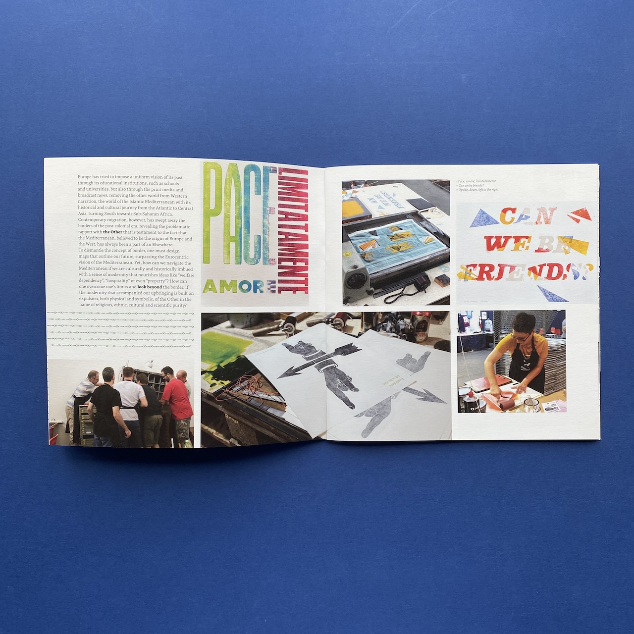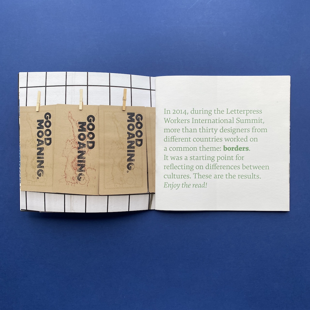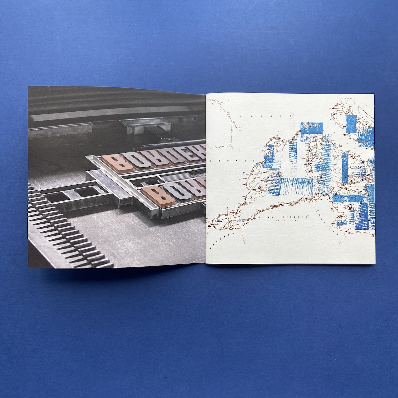 Letterpress workers, Borders, Milano, Officina Tipografica Nove Punti, 2015. 27,7 x 27,5 x 5 cm, 120 copies, silkscreened cardboard box containing 20 prints, 2 letterpressed books and a booklet made by the participants of the 2015 Letterpress workers summit.
