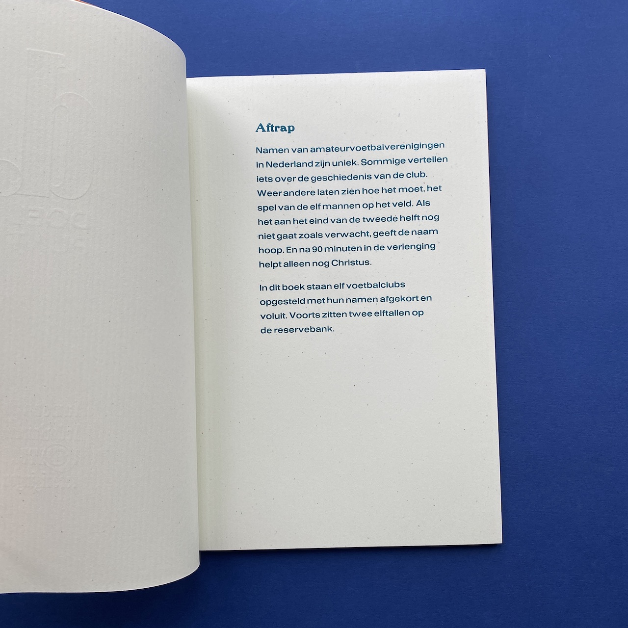 Lokum & Van Thiel, D. Doel Punt, Namen van Nederlandse Voetbalverenigingen, Atelier Grotesque, Amsterdam, 2002, 25 x 35 cm, 38 pp. Signed and Numbered 50/80. Very good condition.