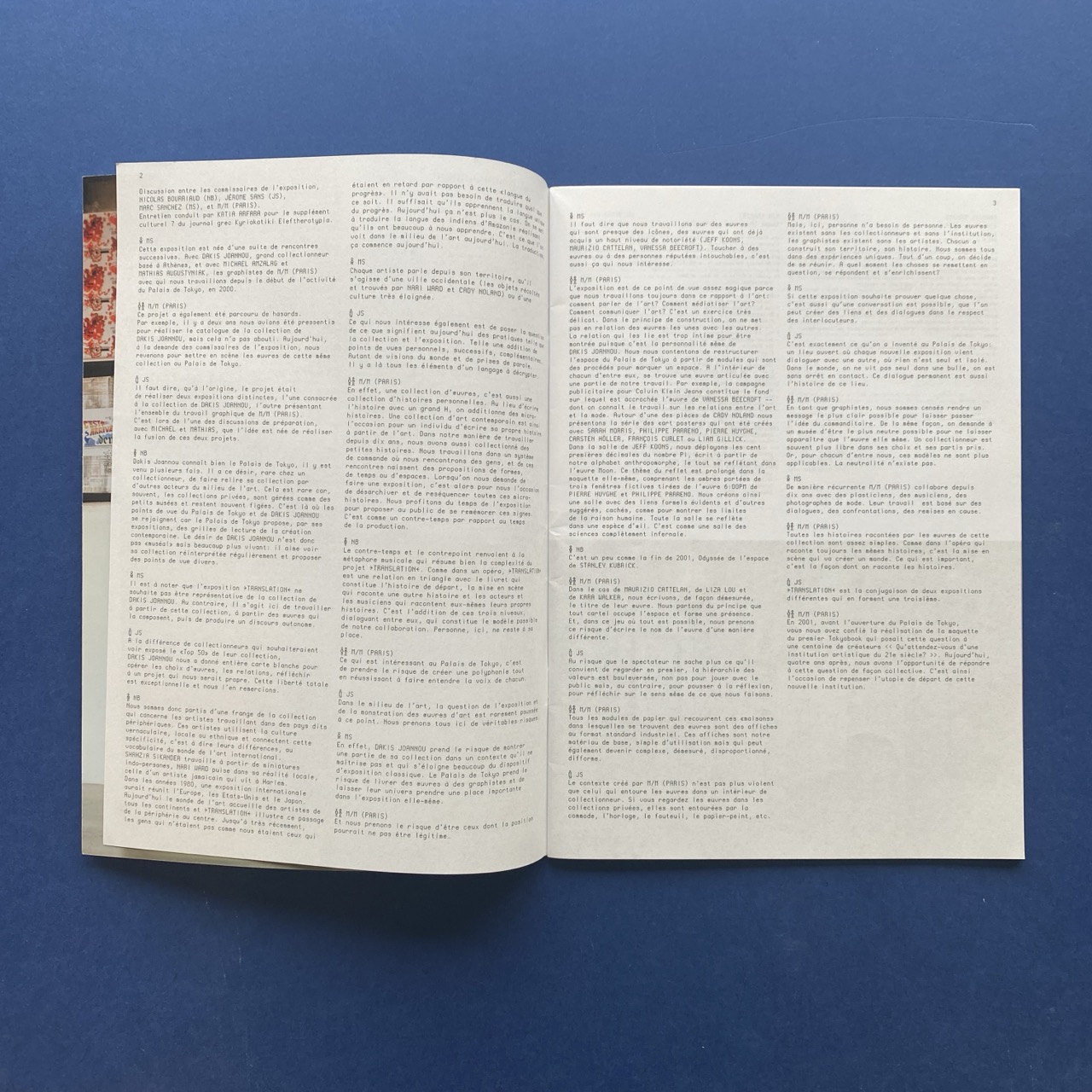 M/M, Le journal #8, Translation, Palais de Tokyo, Paris, 2005, 36 pp (2×18), 21 x 30 cm.