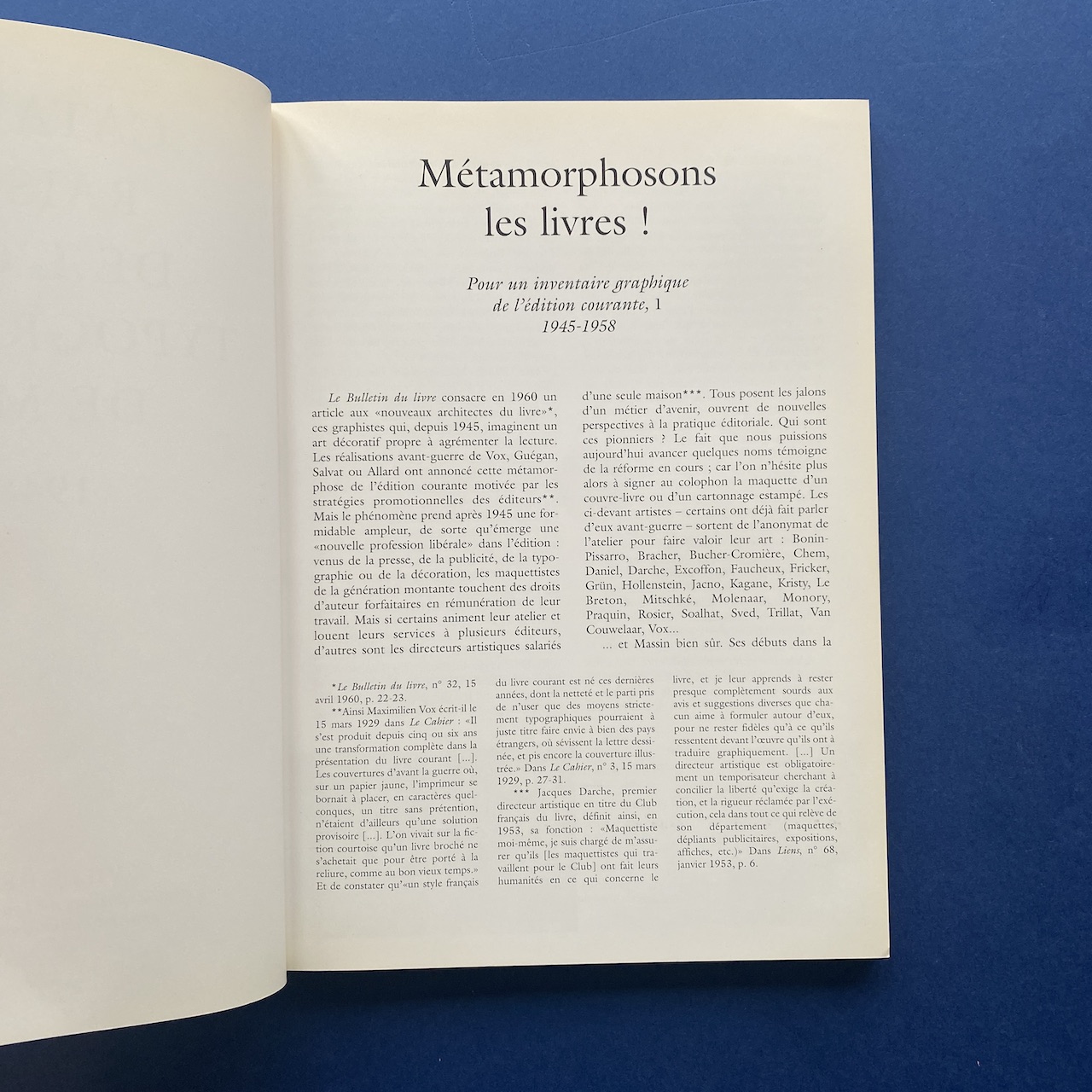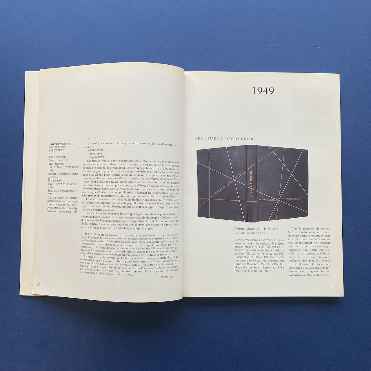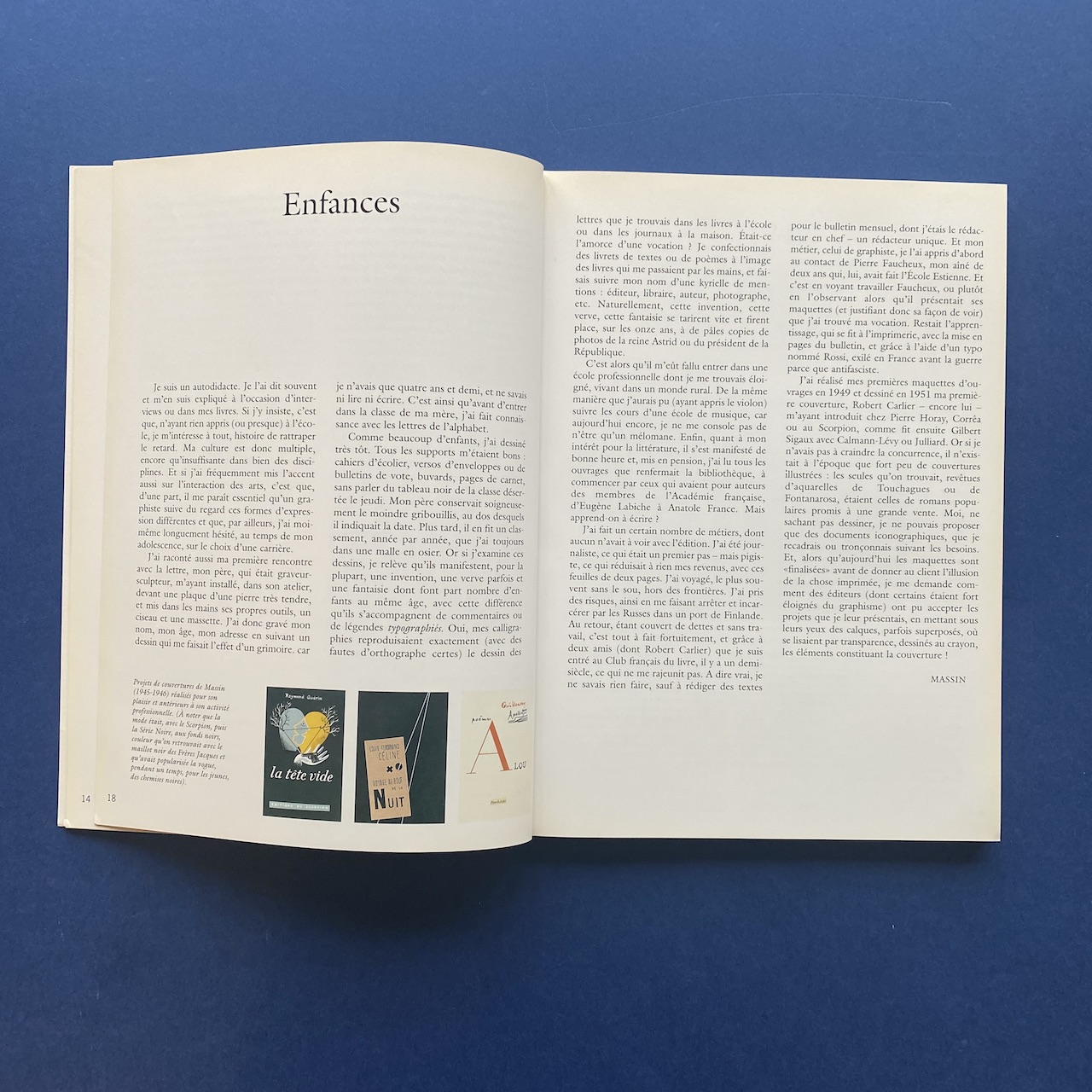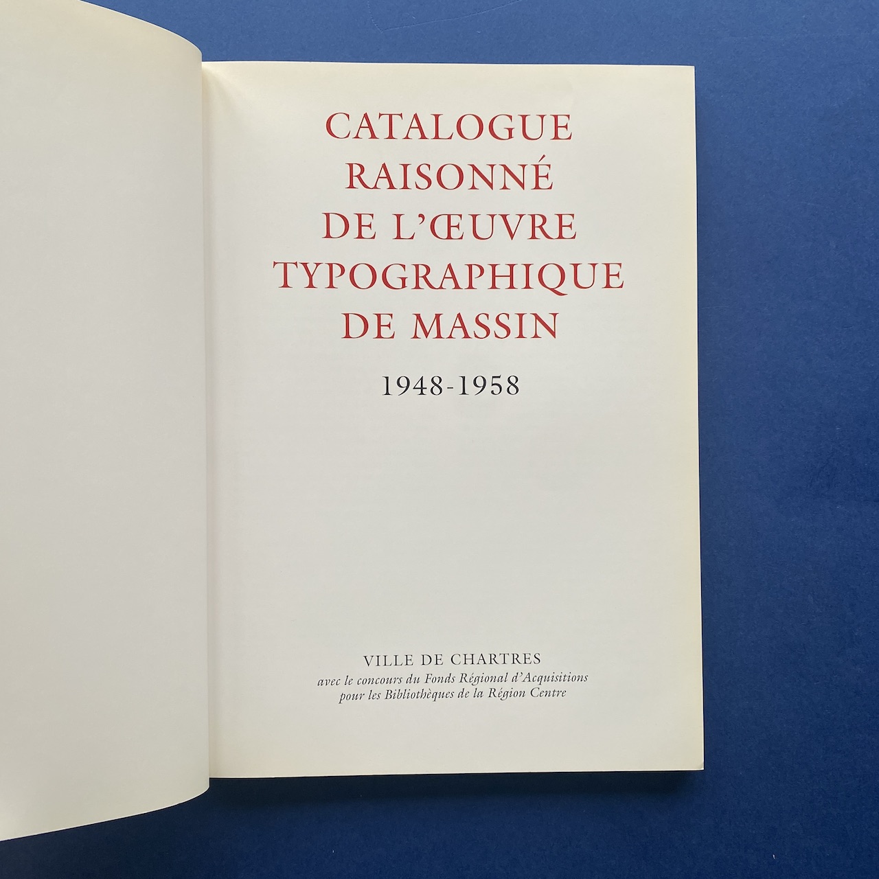 Massin, Catalogue raisonné de l’oeuvre typographique, 1948-1958, Chartres, 1998, 128 pp, 19,5 x 27 cm. First volume of Massin’s typographic work.