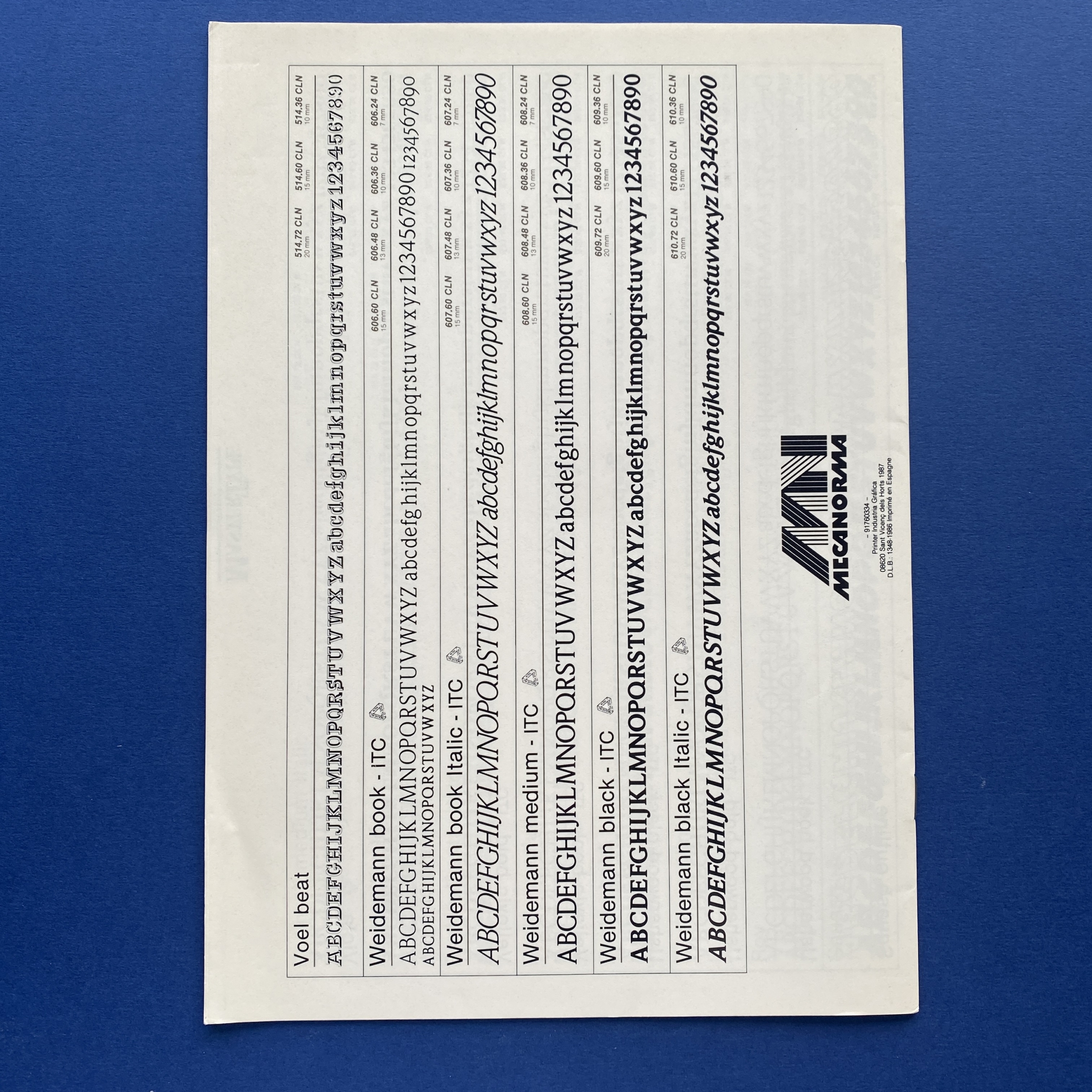 Mecanorma, a French company, was along with Letraset the main european companies producing typefaces during the late XXth century.