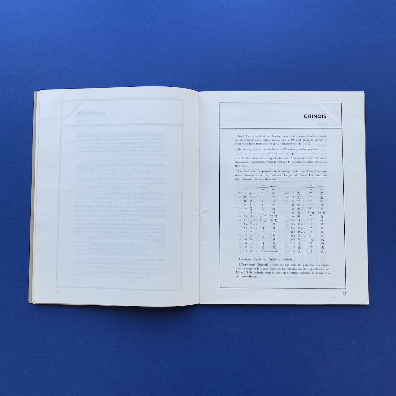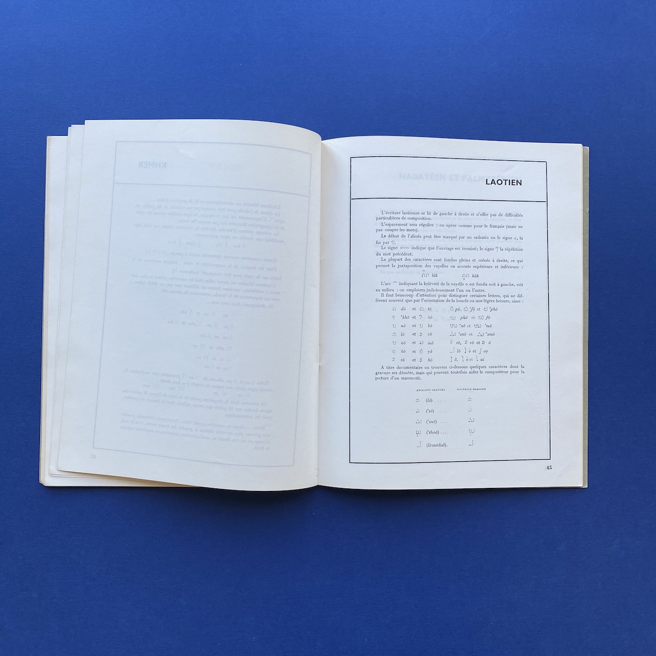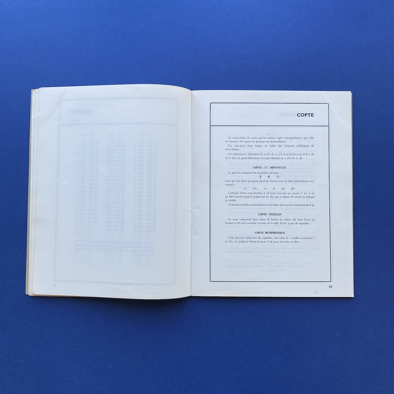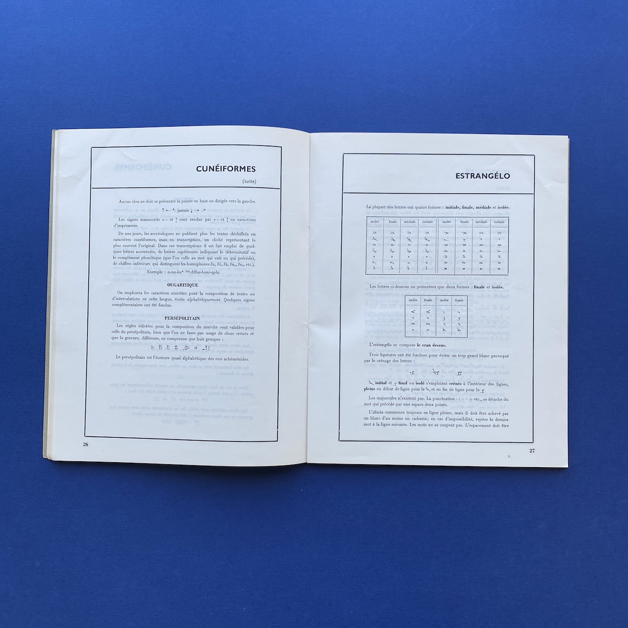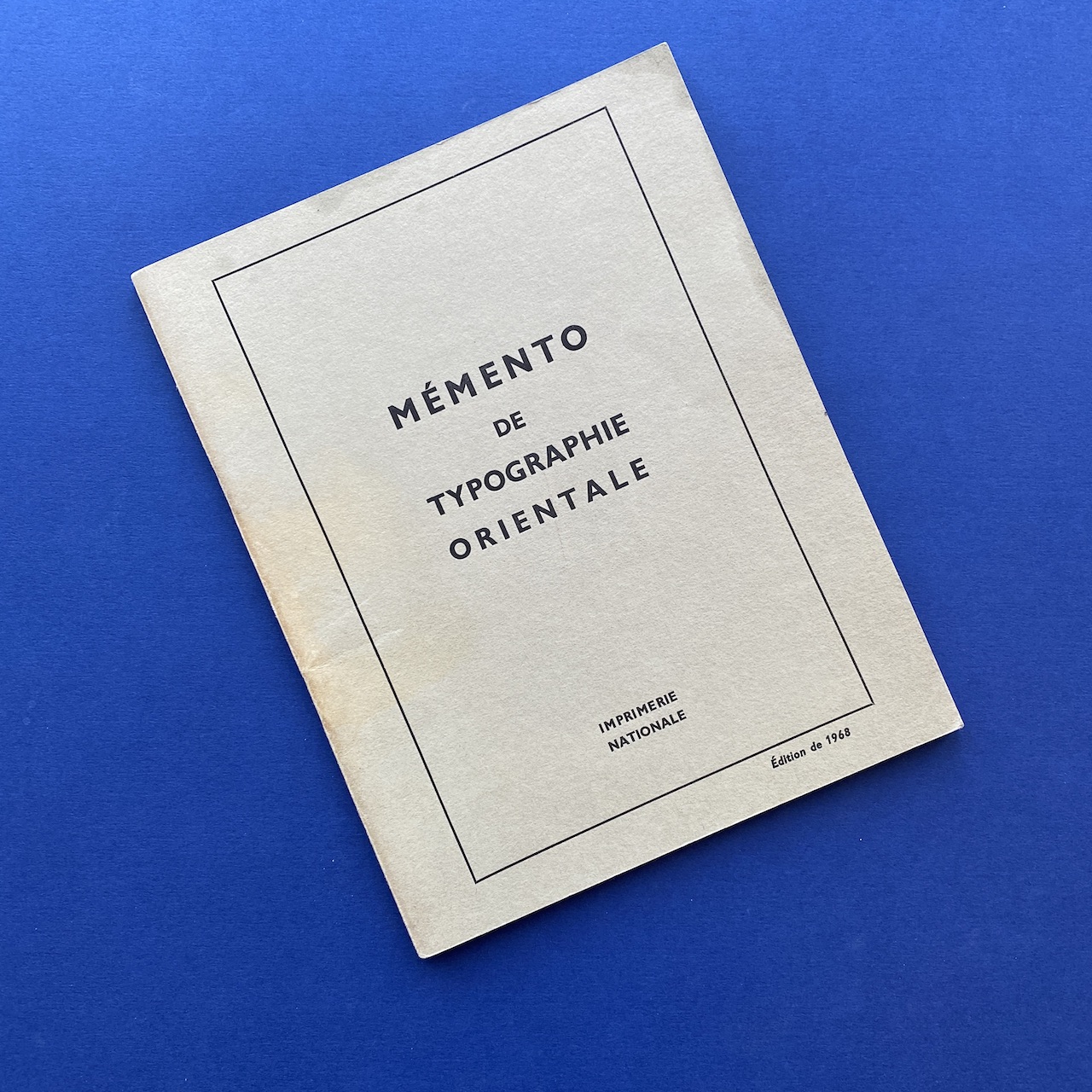 Mémento de typographie orientale, Imprimerie Nationale, 1968, 26,5 x 21 cm, Paris, 69 pp. Including: Annamite, Araméen, Berbère, Bulgare, Copte, Cunéiforme, Estrangelo, Ethiopien, Hiéroglyphes, etc. Copy in good general condition.