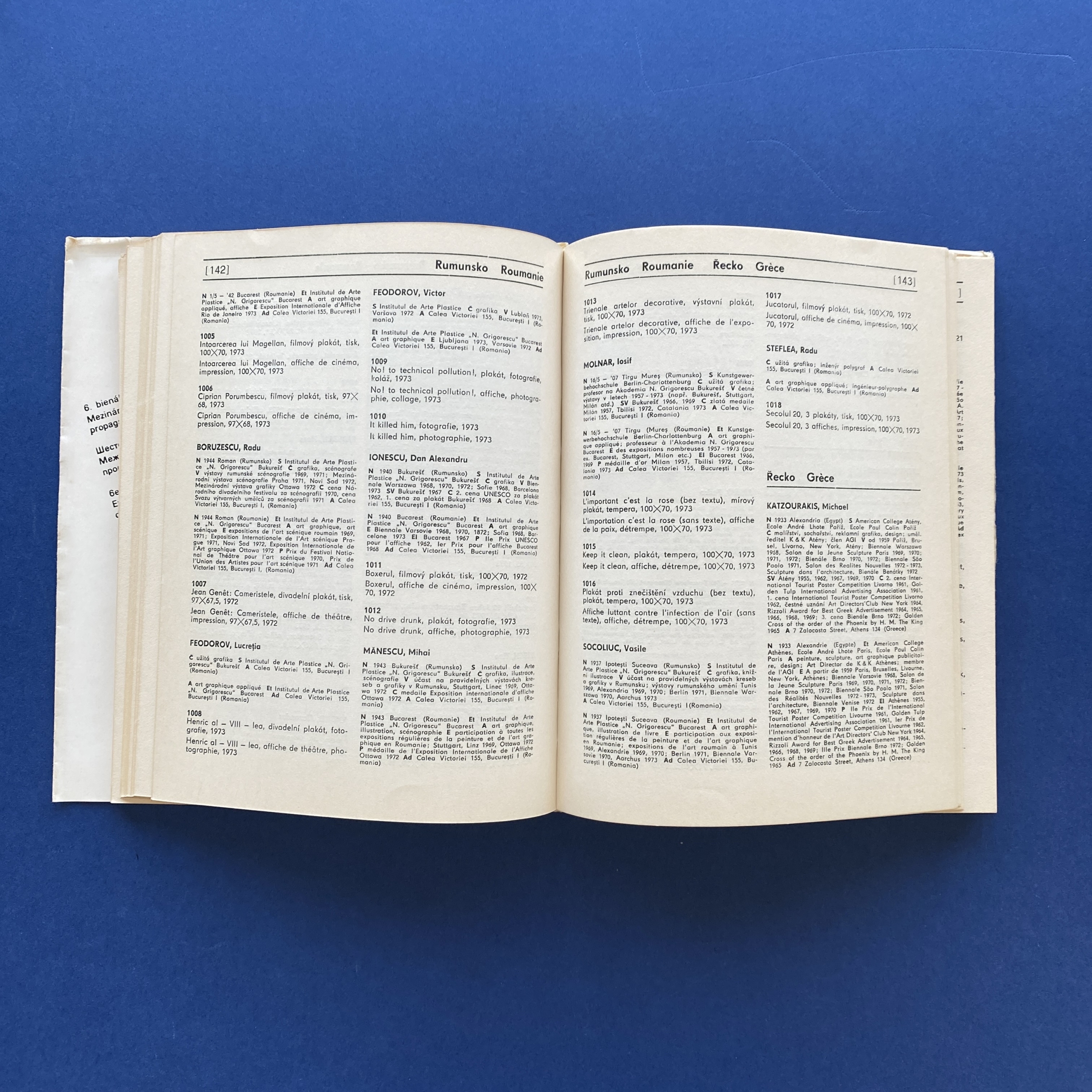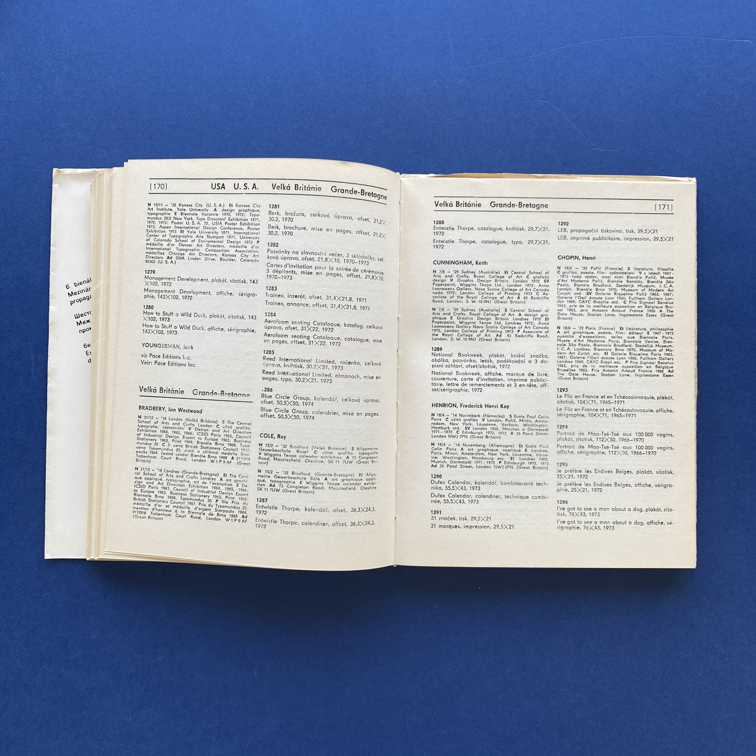 Mezinárodní výstava grafického designu a propagačních plakátu, Brno, Moravskà Galerie, 1974, 17 x 21,5, 2,5 cm, 326 pp. In Eng., Fren, Cze and Russ.