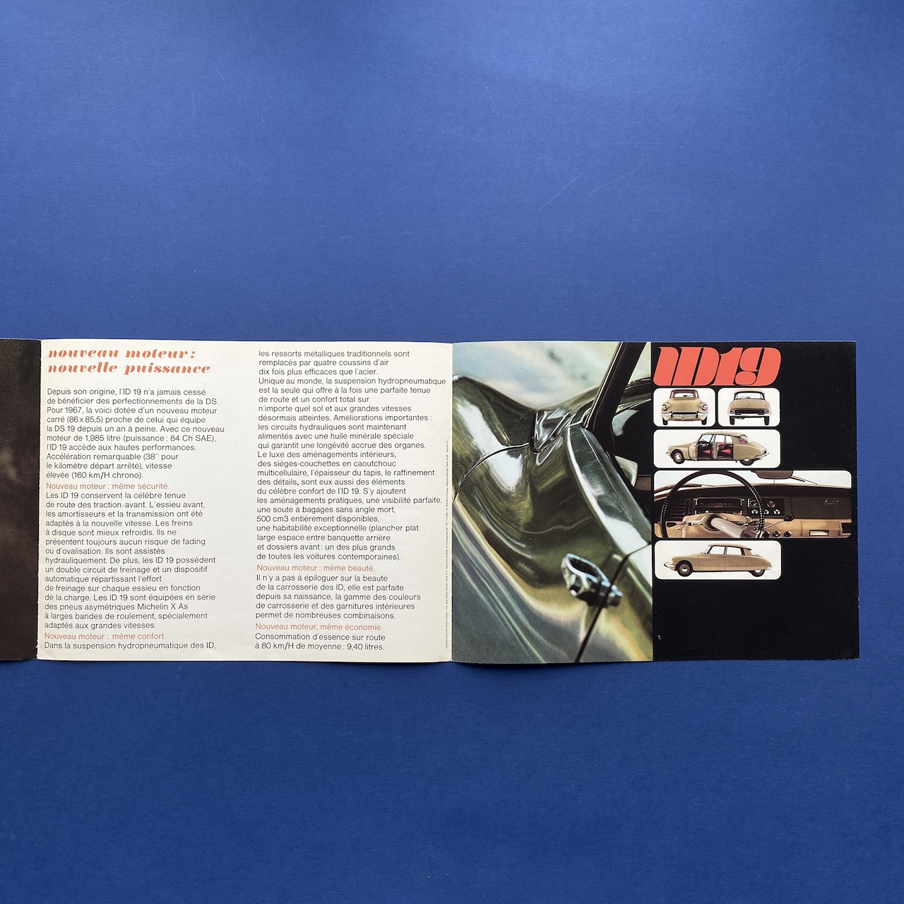 Nouveau moteur ID 19, 1967, Delpire Publicité, Paris, 27 x 21 cm closed (81 x 21 cm open). Leaflet in very good condition.