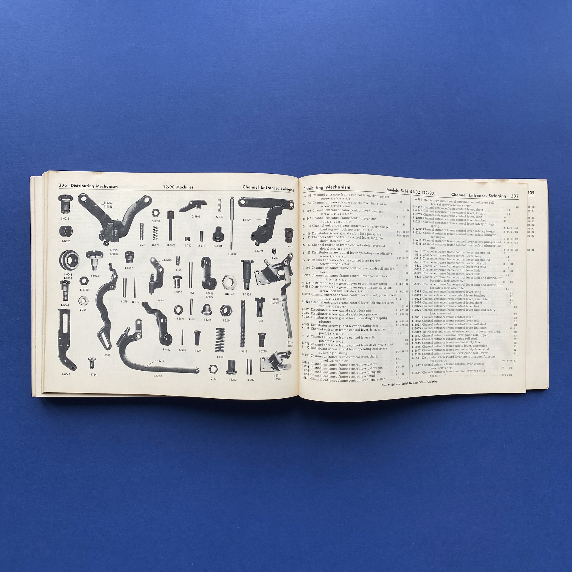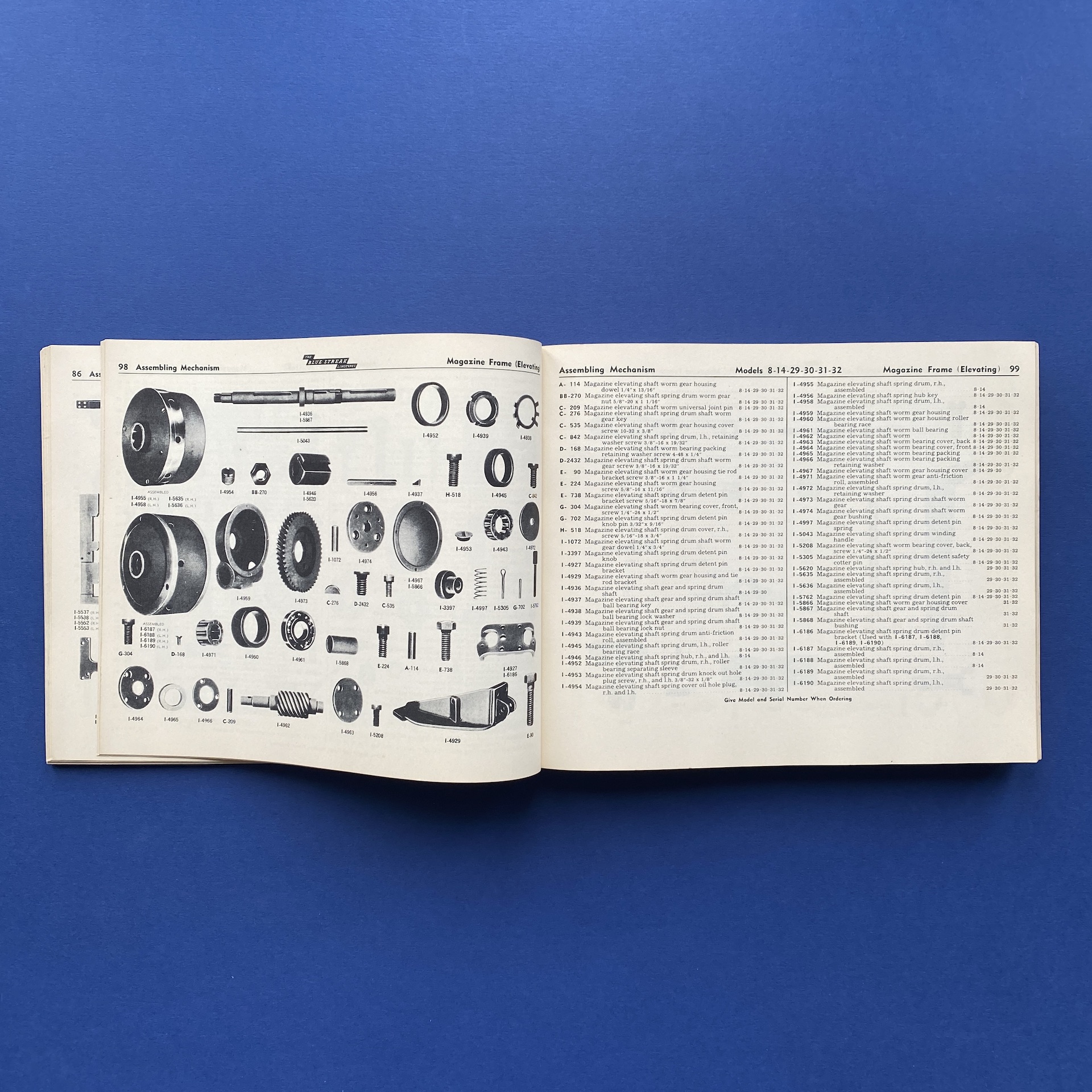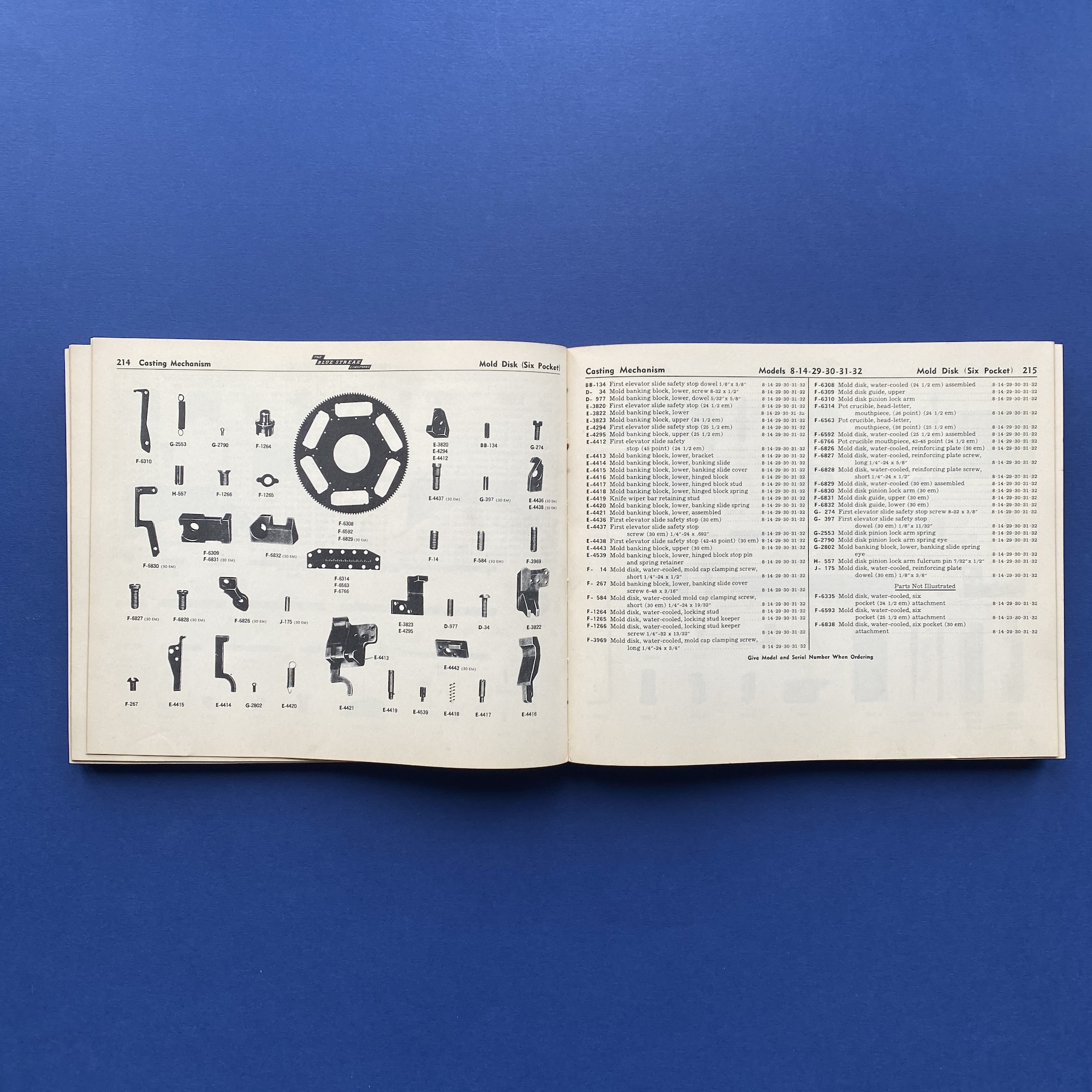 Parts Catalog for blue streak Linotypes, New York, 1940, Mergenthaler Linotype Company, 25 x 21 cm, 459 pp. Some signs of wear on the front cover. Copy in good general condition