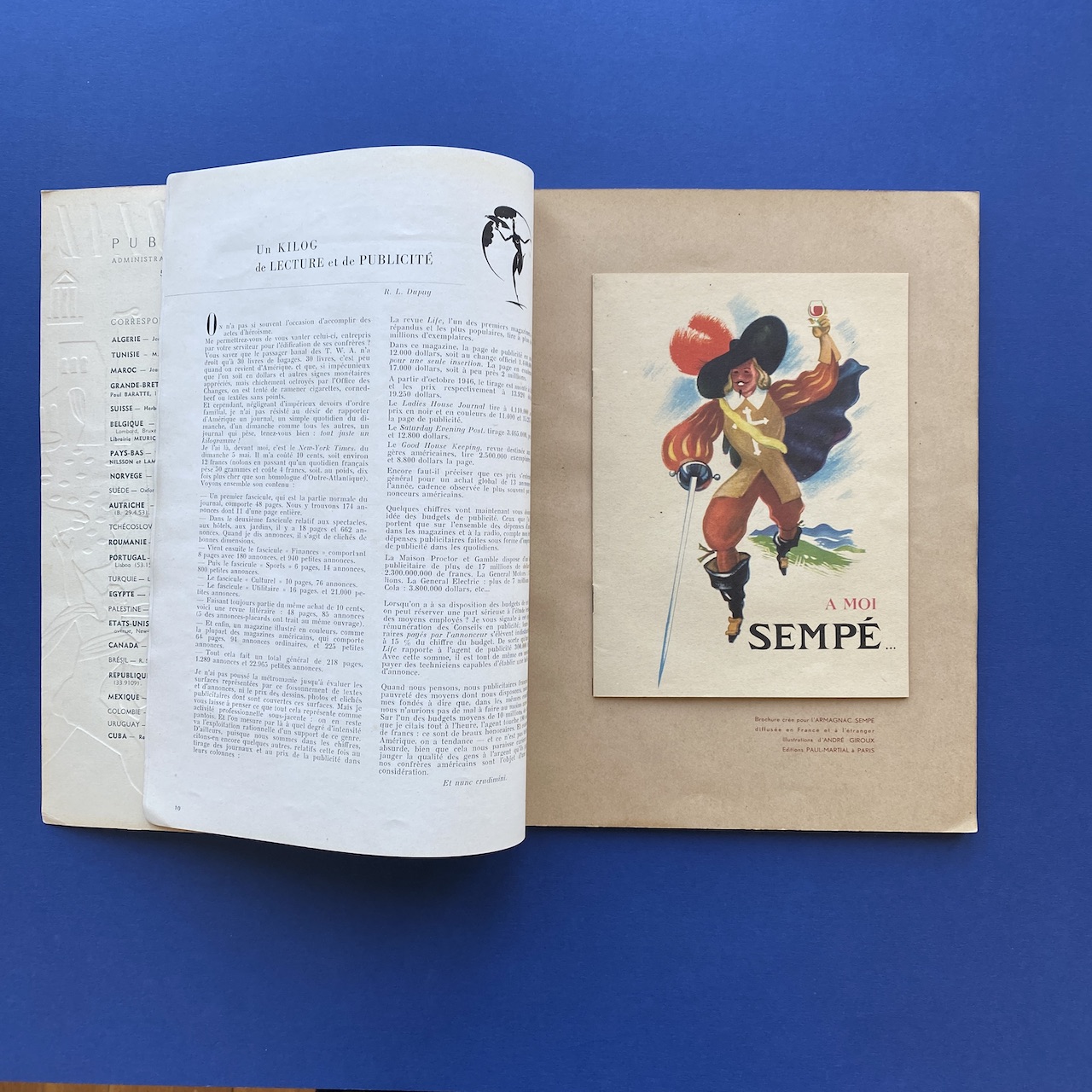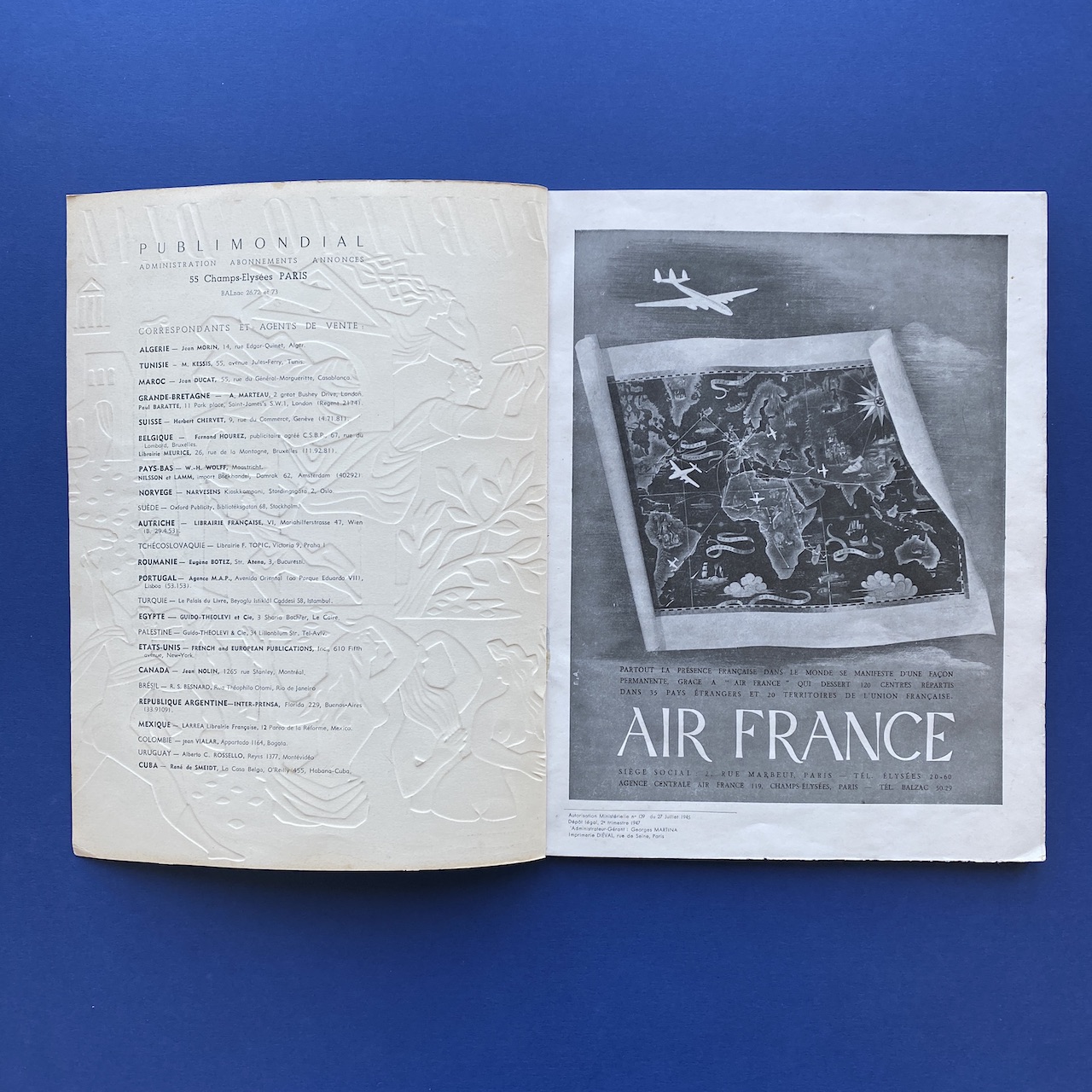 Publimondial #7, Revue internationale des arts graphiques et des techniques publicitaires, 1947, Art et Publications, Paris, 24,5 x 31,5 cm, 74 pp. Cover by Eric Poncy. Magazine in very good condition.