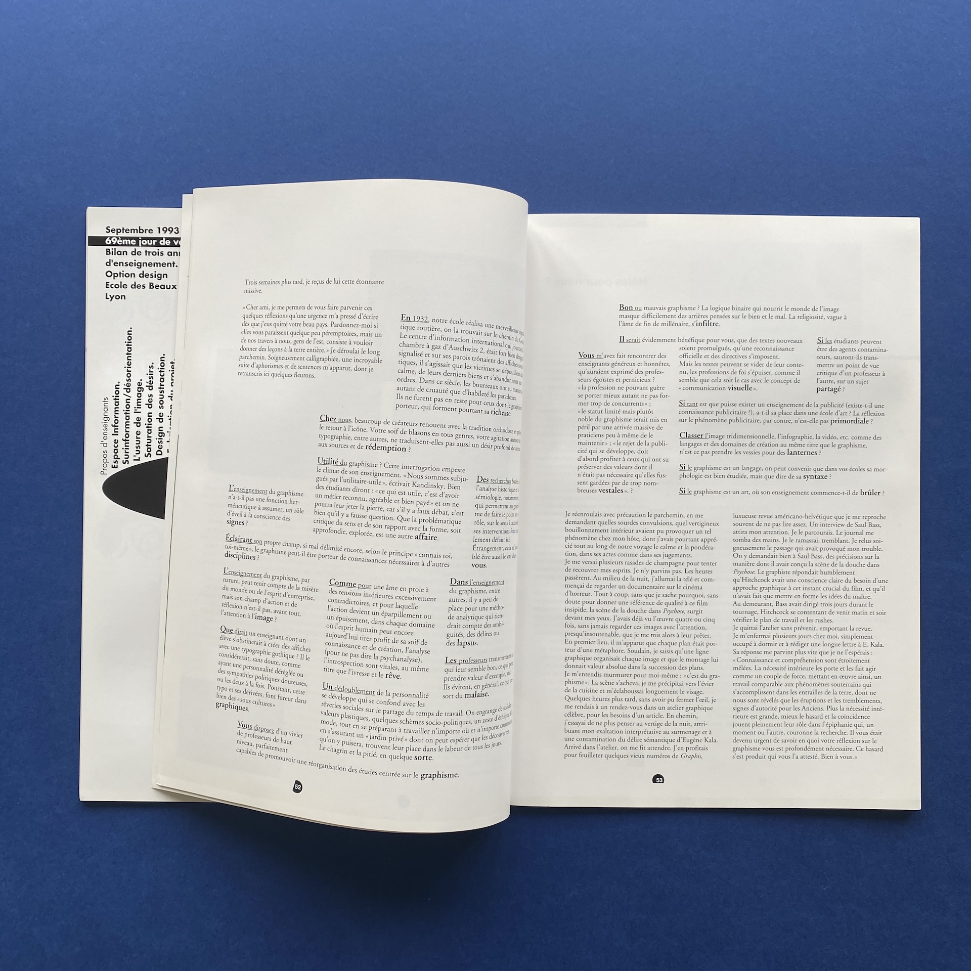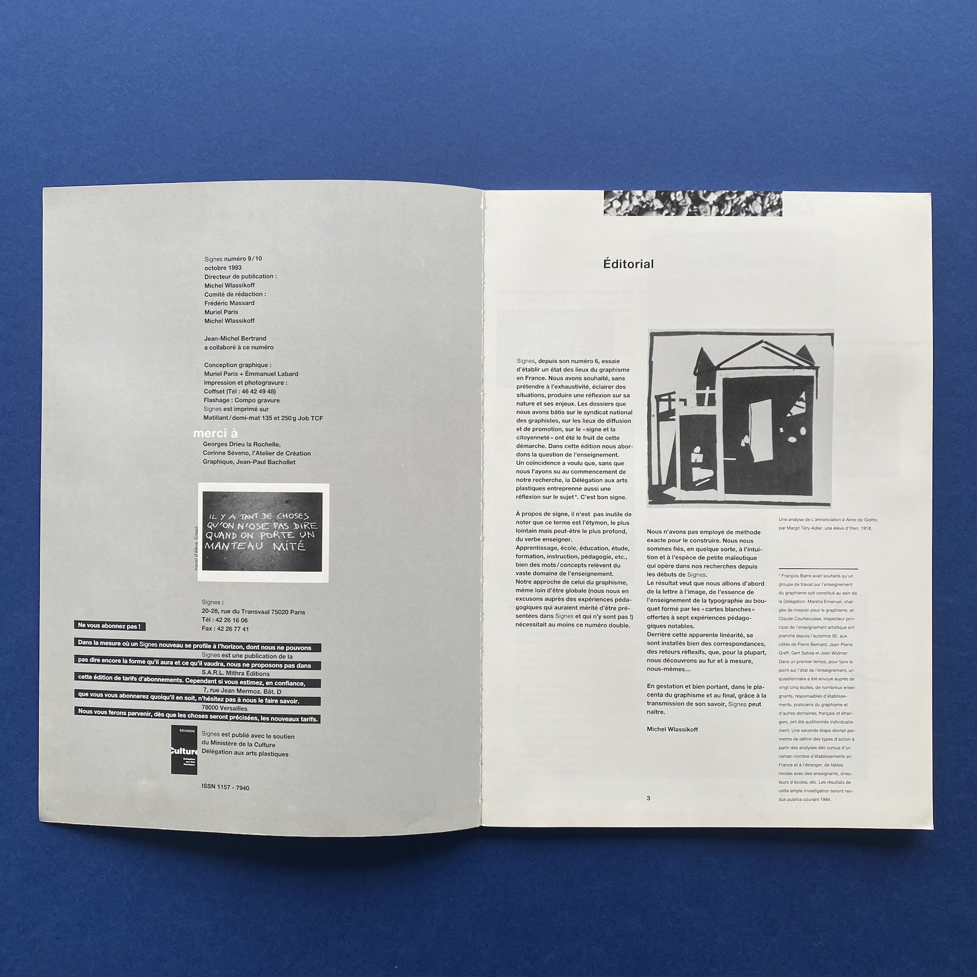 Signes n°9/10, Versailles, Mithra Editions, October 1993, 21 x 30 cm, in French. Directed by M. Wlassikoff, Muriel Paris and Frédéric Massard. Copy in very good condition.